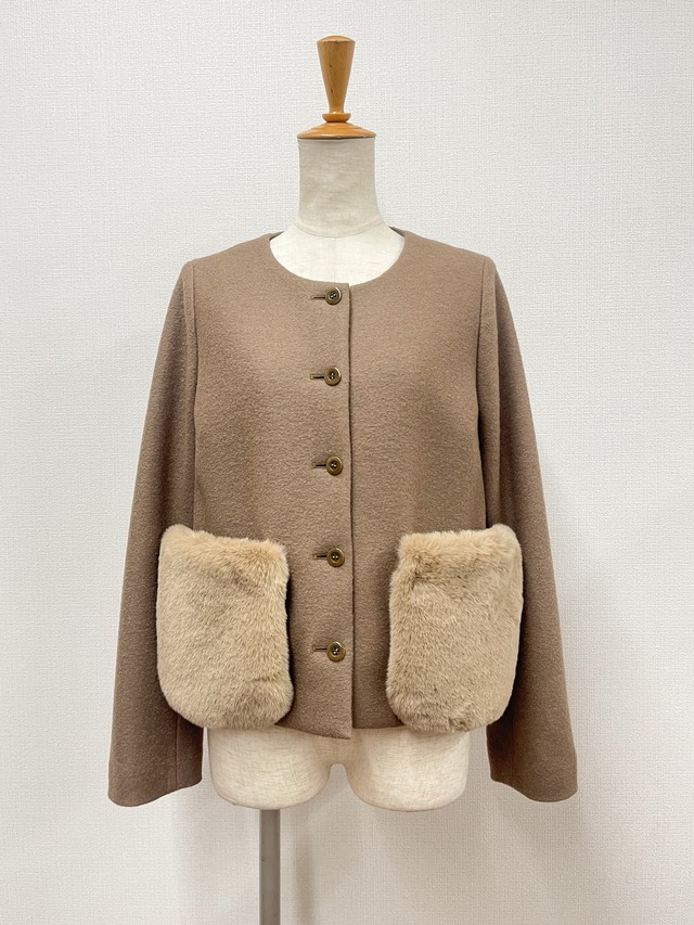 ポケットファー ウールショートコート【8253704】