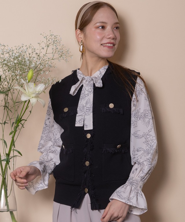 線描きフラワー ボウタイブラウス【5664004】