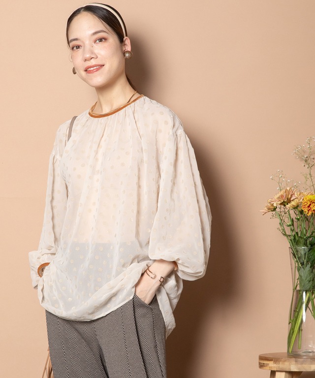 アートフラワー 袖タックブラウス【5664006】