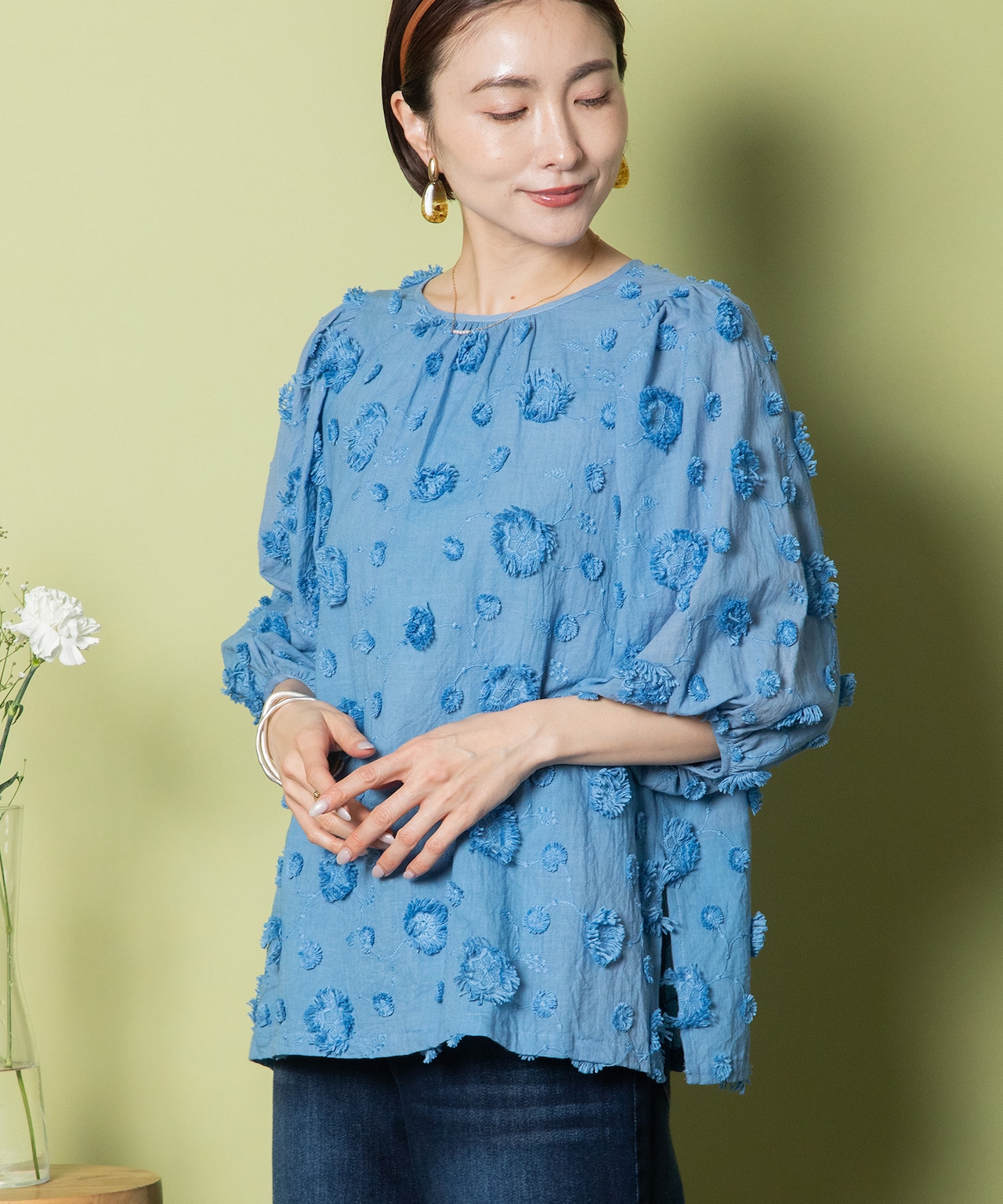 フラワー刺繍プルオーバーブラウス 【8254102】