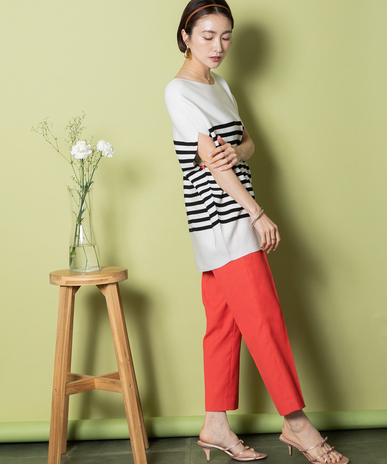 やっぱり夏はボーダー。幅広いシーズンで活躍間違いなし。デニムコーデからキレイめスカートまで幅広いボトムとコーデ頂ける万能トップス。ジャケットのインナーにもおすすめ。