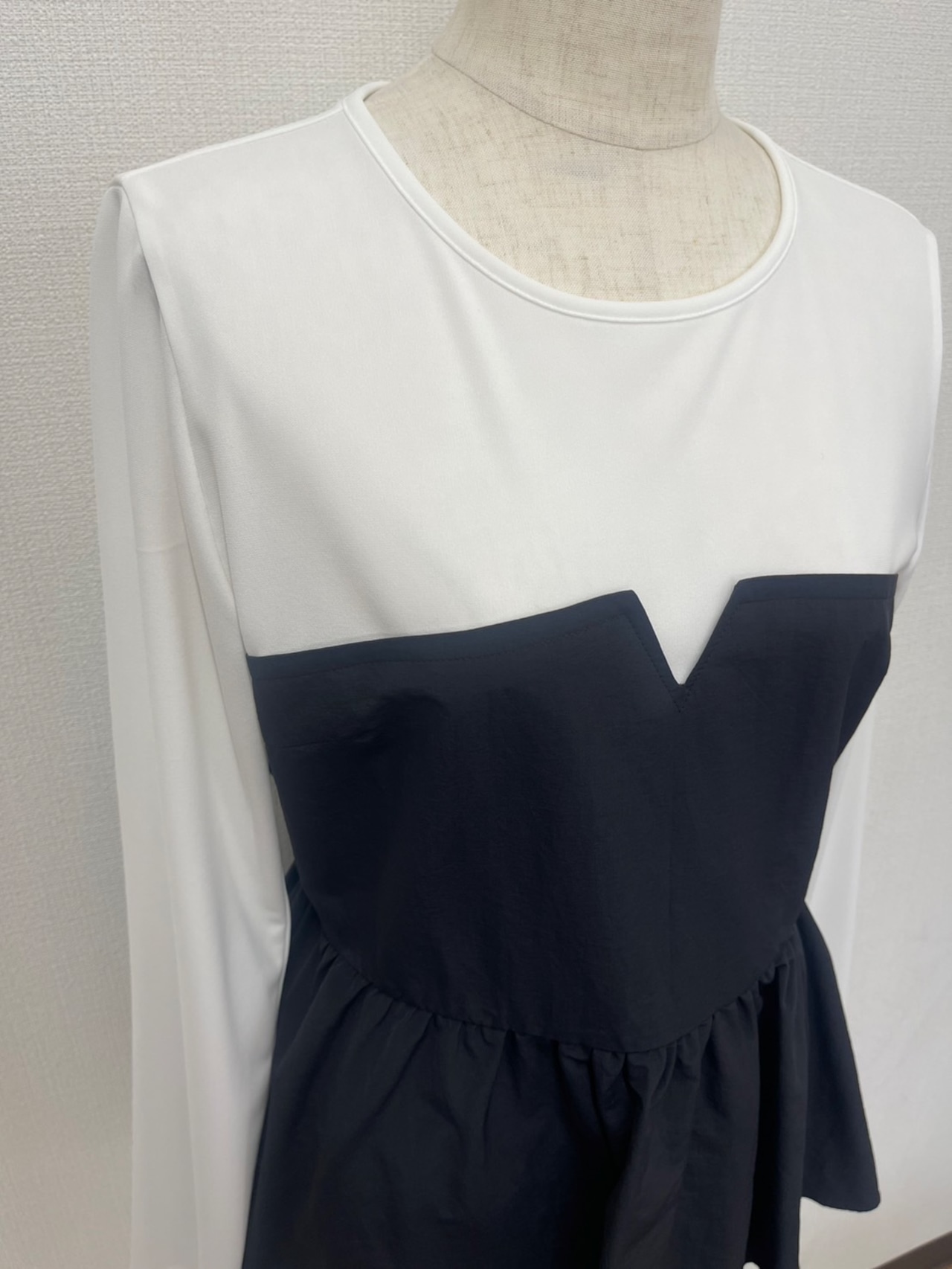 上身頃は伸縮性の高いストレッチ素材。布帛部分は少しハリのあるナイロン素材。