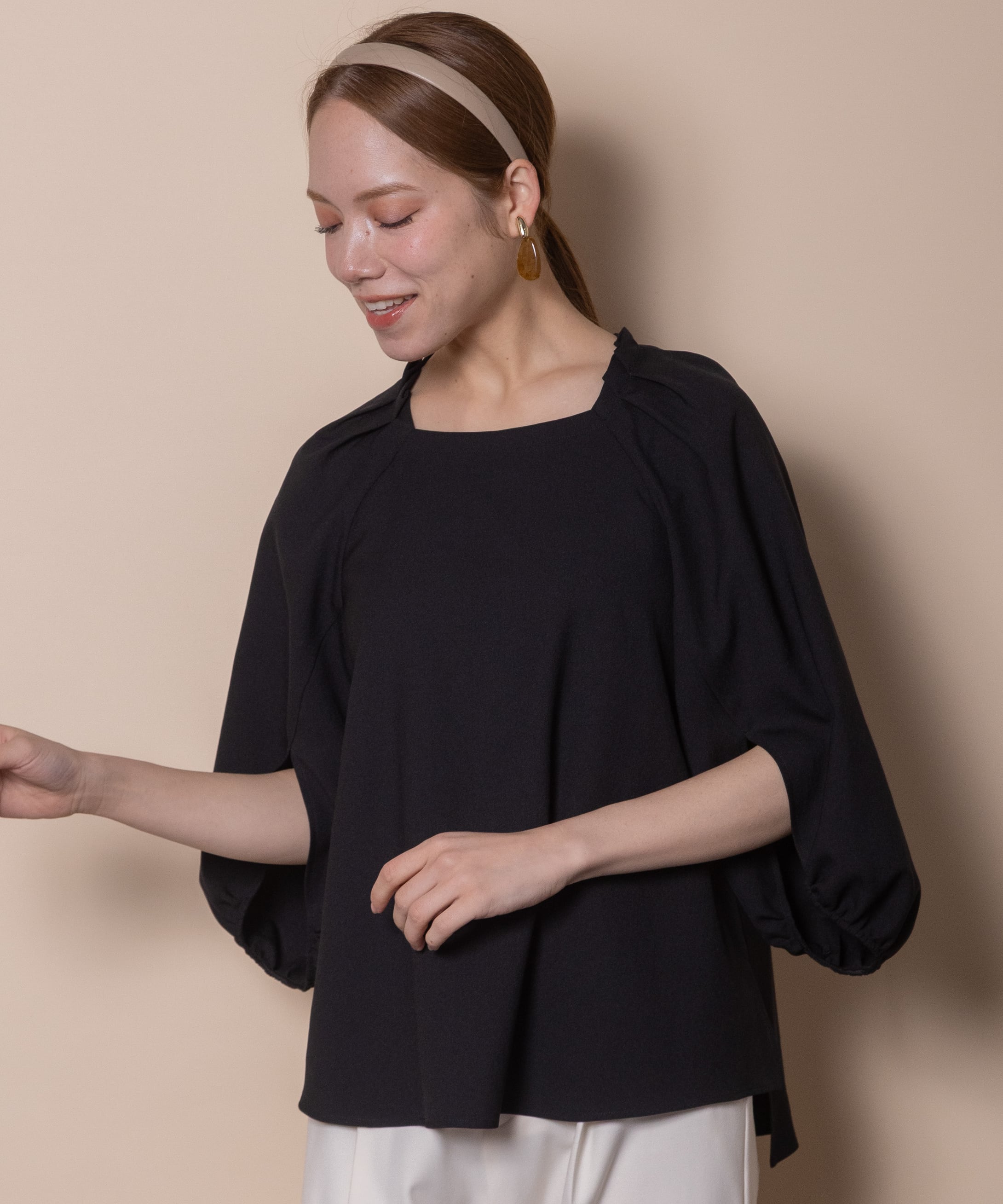 スクエアネック・プルオーバーブラウス