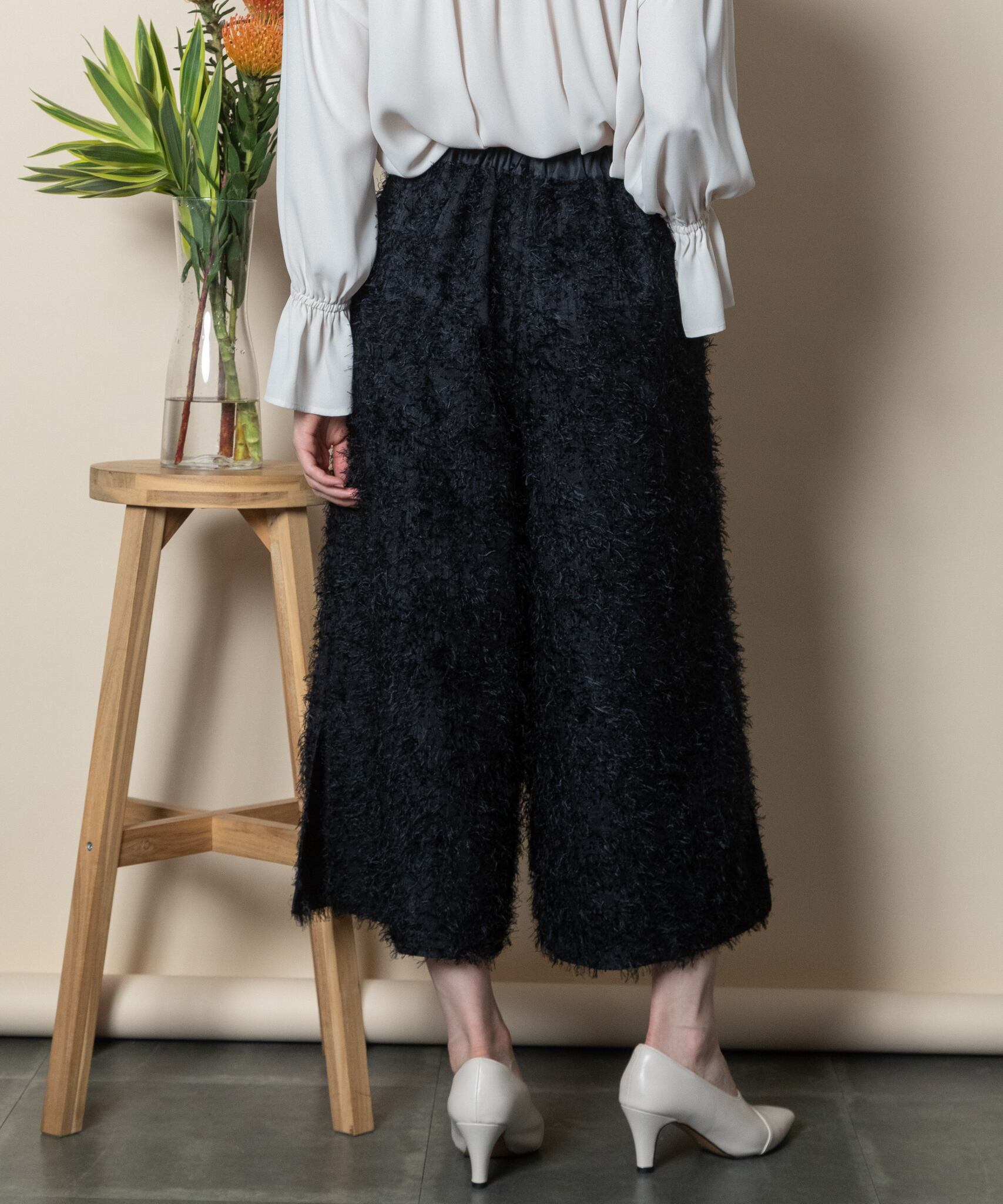 ふわふわ感が魅力のワイドパンツ。サイドスリット入りで足捌きの良いクロップド丈。こなれ感のある季節の端境期に活躍するおしゃれアイテム。
