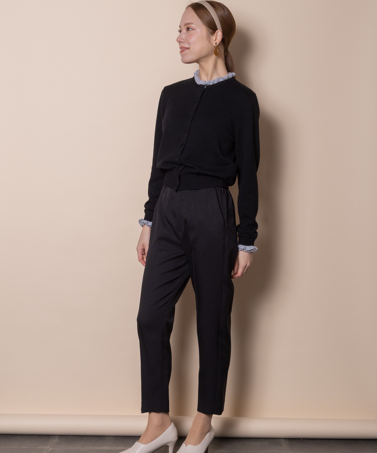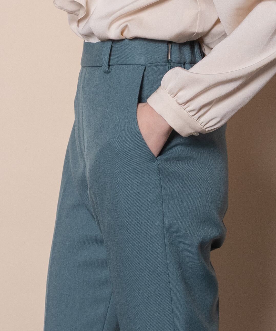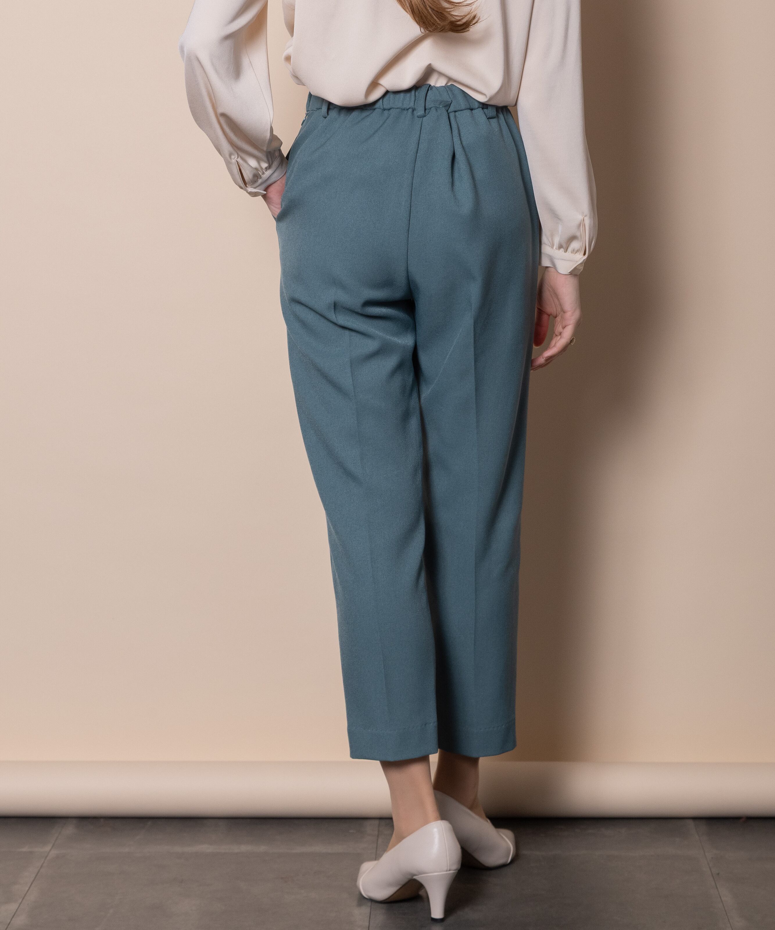 アニープラスで長らく愛されるベストセラー”ハンサムパンツ”。仕立ての良い美しいシルエットのクロップド丈。ウエスト部分が安心の内側がゴムベルト仕様。