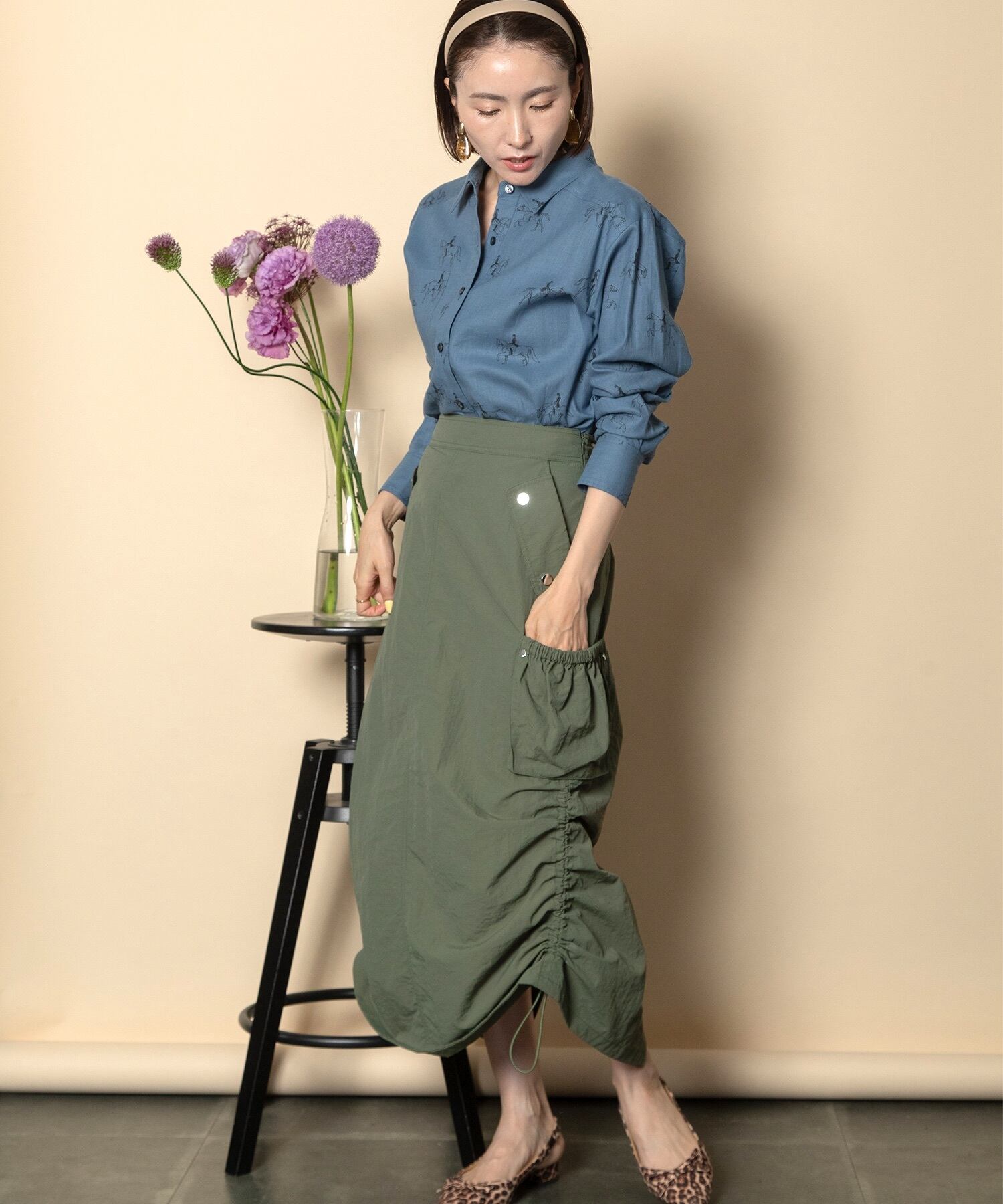 同素材のスカートセットアップもおすすめ。オールシーズンご着用頂けます。