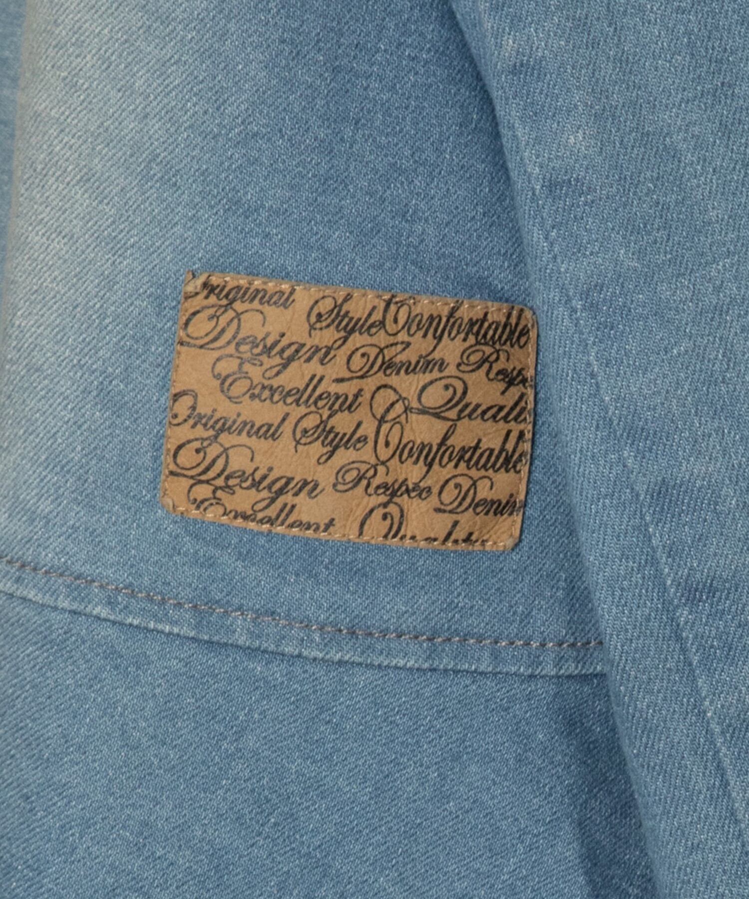 三種類のインディゴカラーのくるみボタンをランダムに並べたクラフト感あるデニムジャケット。ネックは断ち切り、肩がクッと入った立体的なショルダー、立体裁断と主役になるこだわりアイテム。