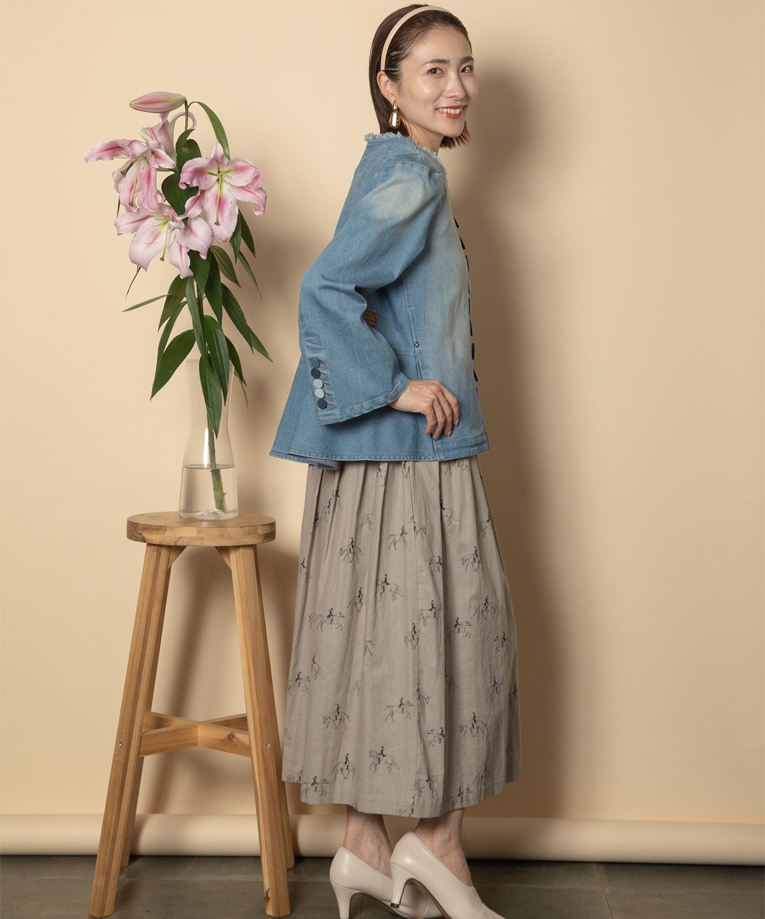 ショート丈でパンツにもスカートにも合わせやすいアイテム。どんなスタイルにもデイリーに羽織れるデニムジャケット。
