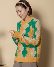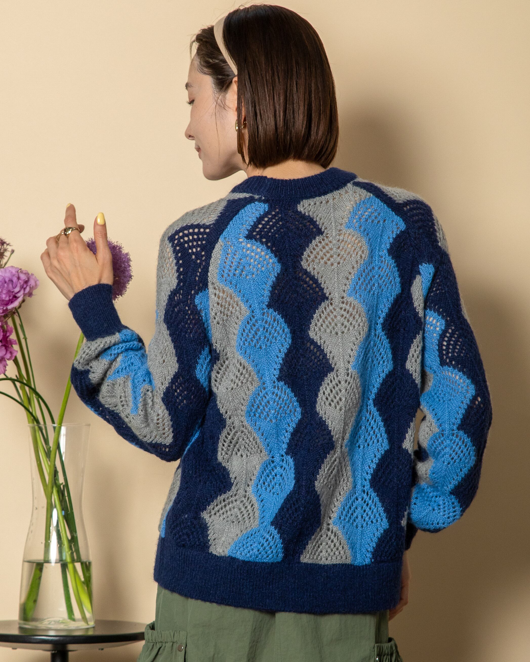 アルパカモヘアのヘアリー感とノスタルジックカラーが魅力のウェーブ柄ニット。