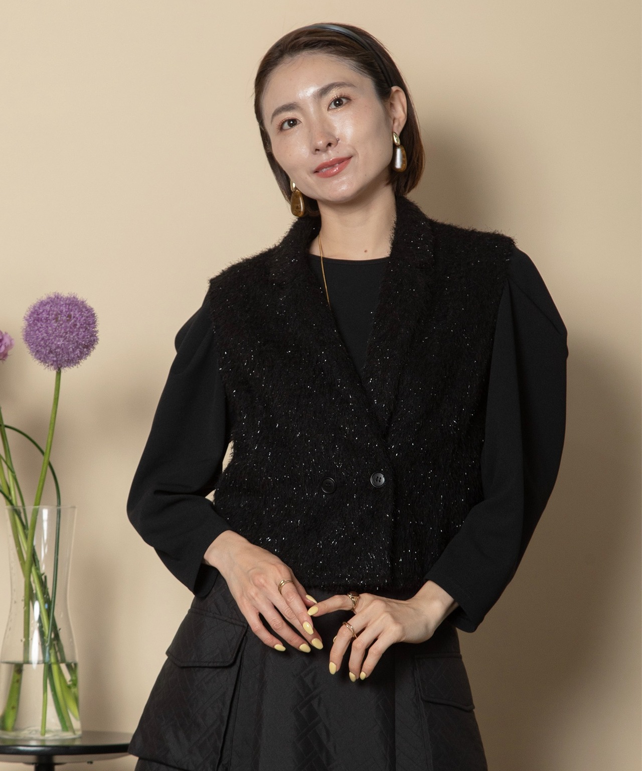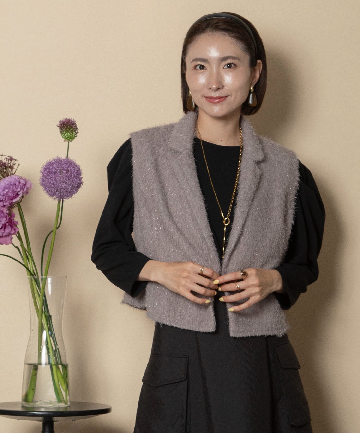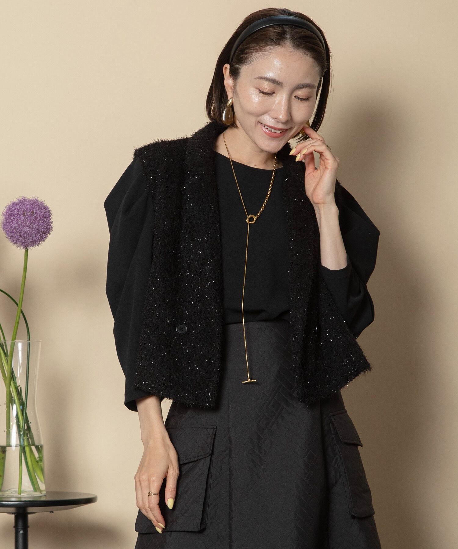 季節の端境期に活躍するおしゃれなプラスワンアイテム。トレンドのショート丈テーラードジレ。シアーなアイテムと相性の良い素材感です。