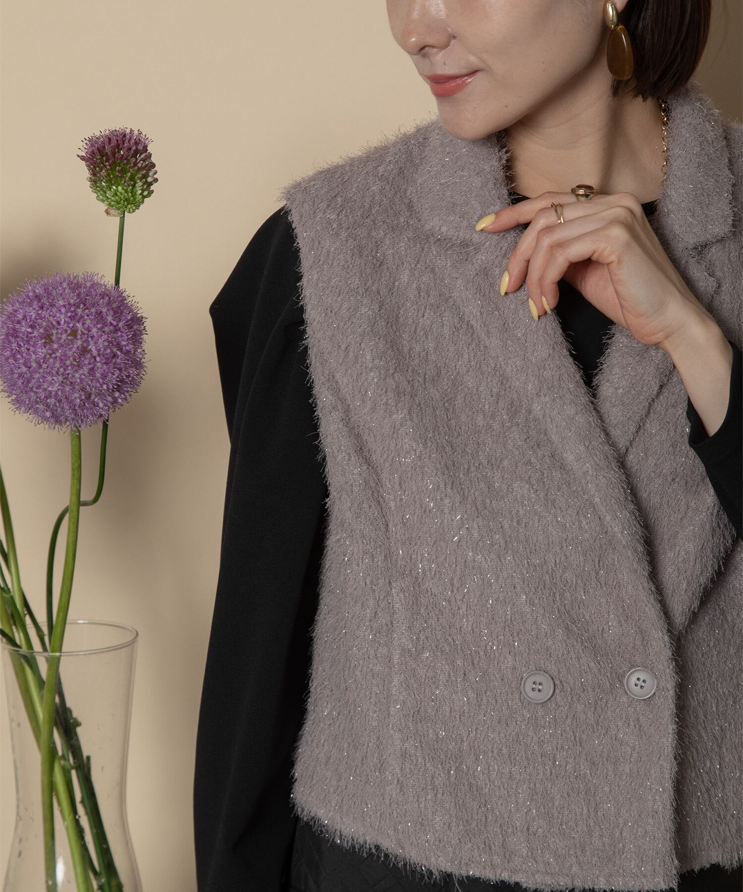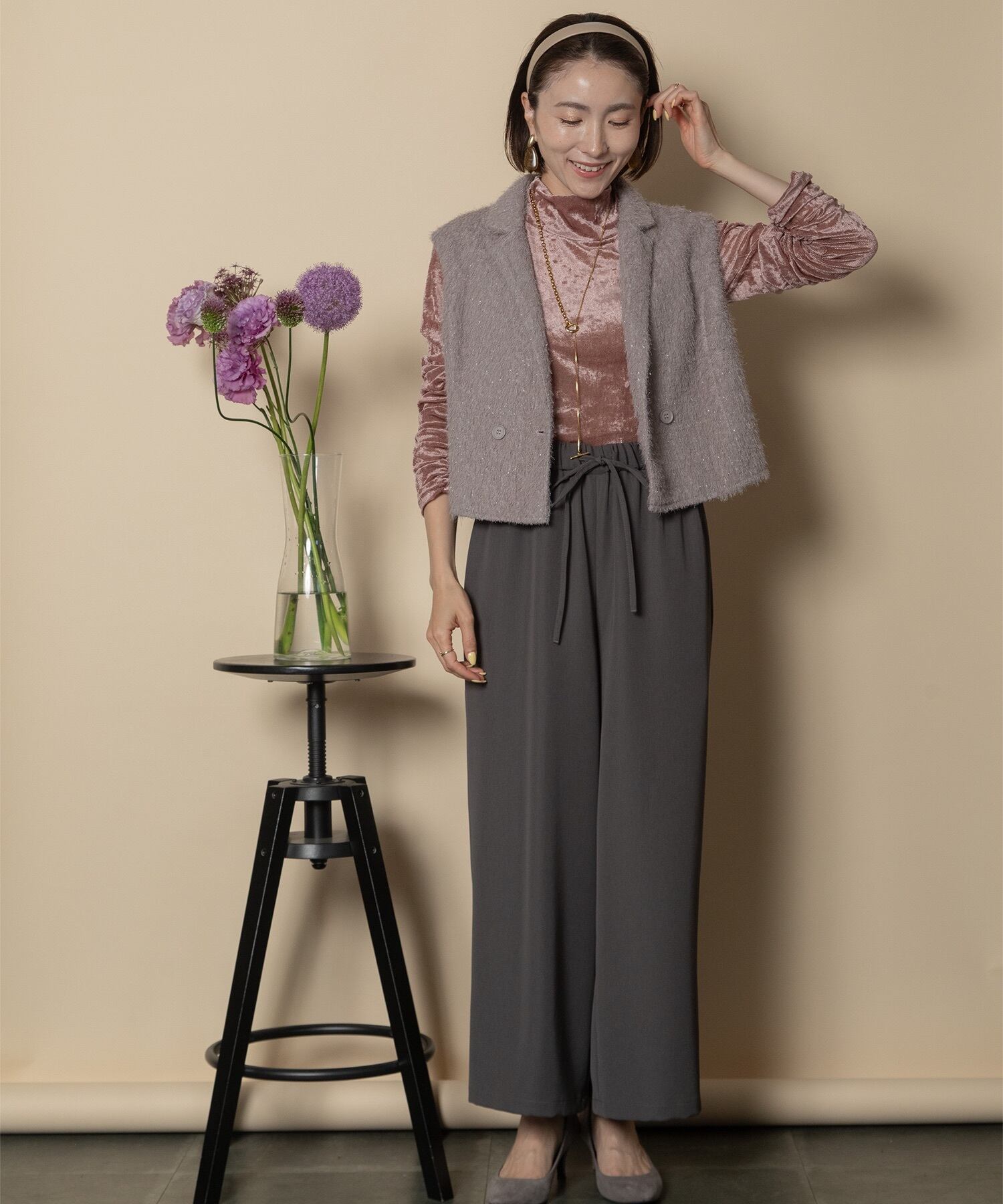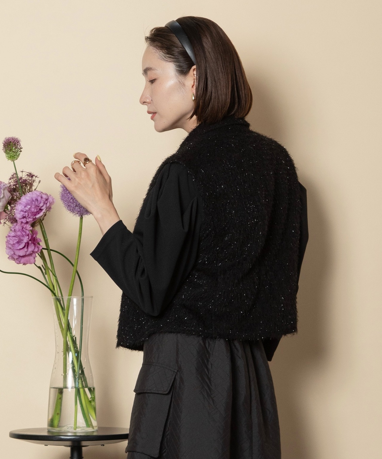 季節の端境期に活躍するおしゃれなプラスワンアイテム。トレンドのショート丈テーラードジレ。シアーなアイテムと相性の良い素材感です。
