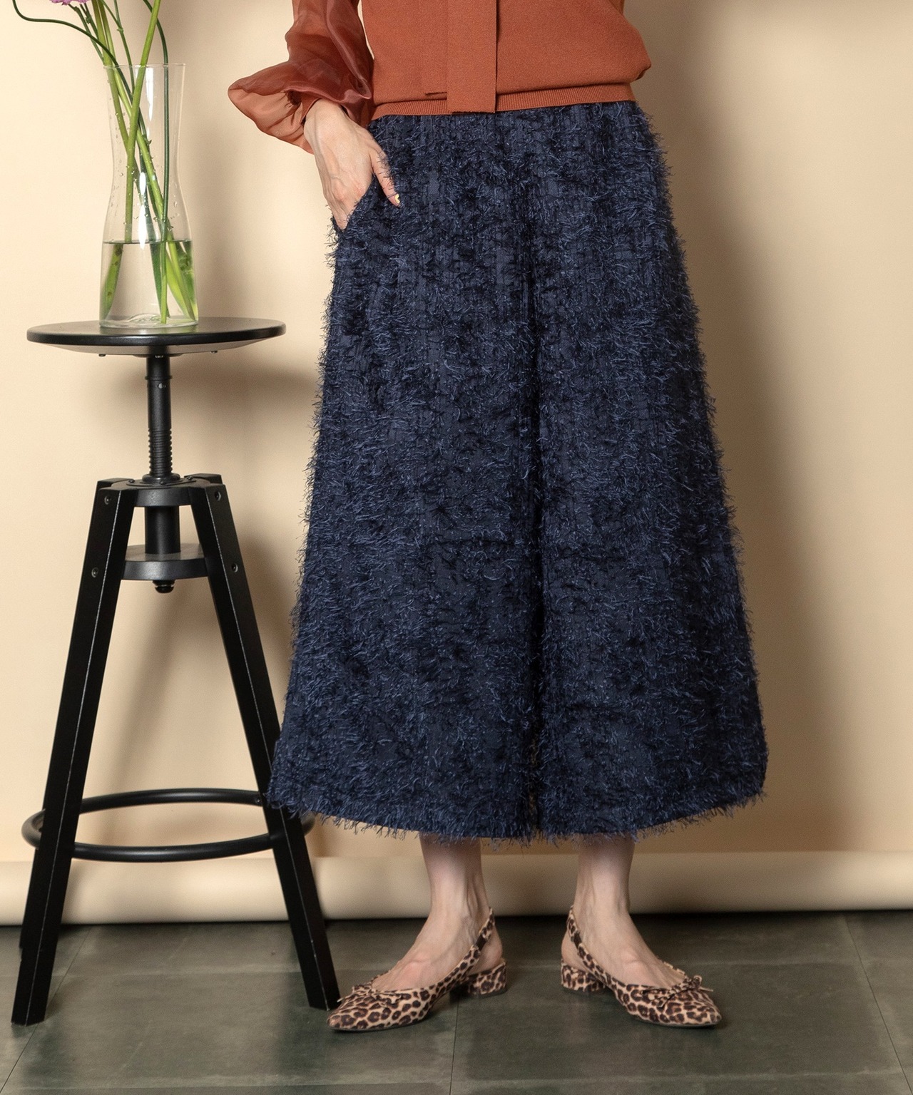 ふわふわ感が魅力のワイドパンツ。サイドスリット入りで足捌きの良いクロップド丈。こなれ感のある季節の端境期に活躍するおしゃれアイテム。