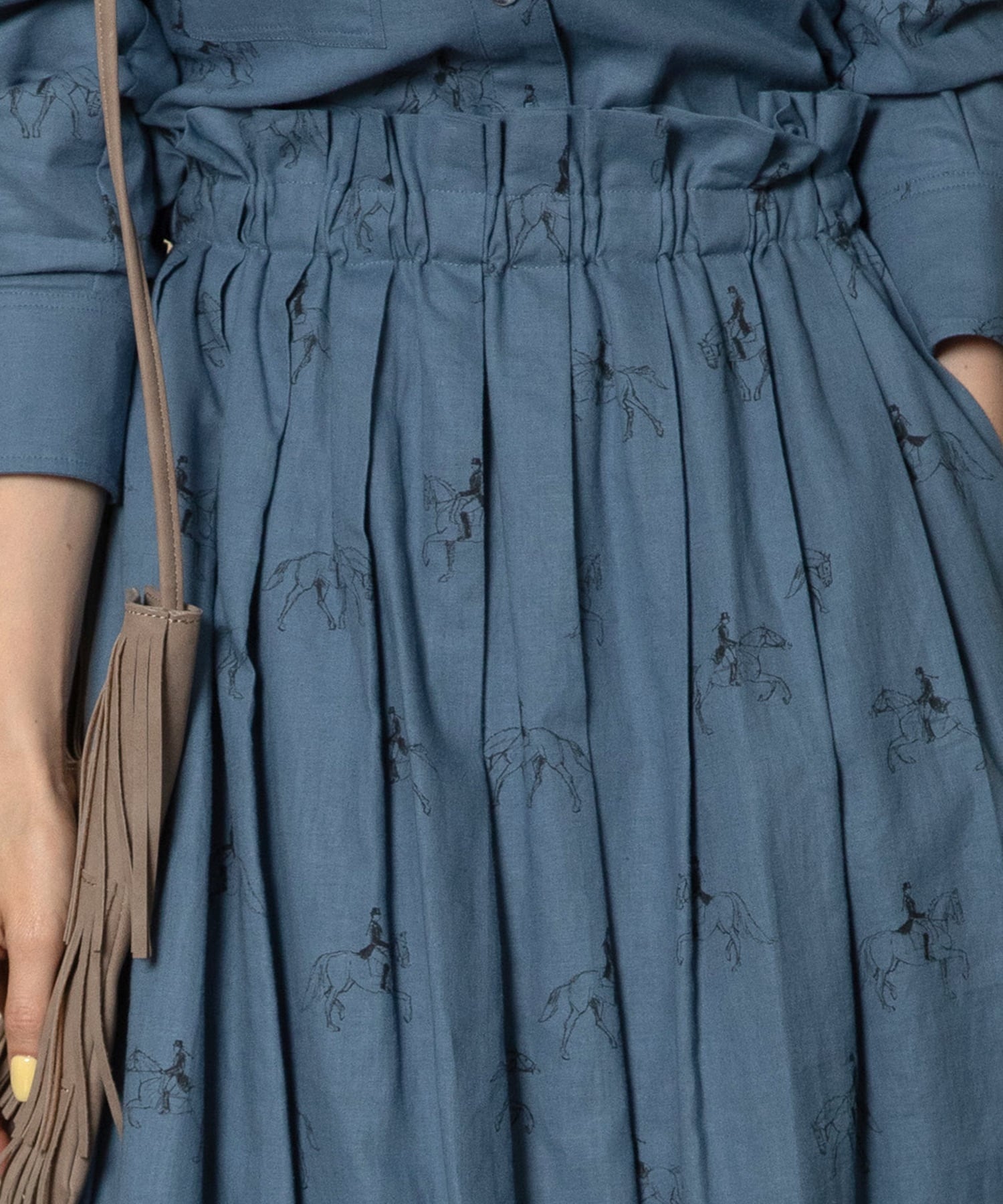 リネンコットン100%先染め馬術プリントが施された馬柄を使用。