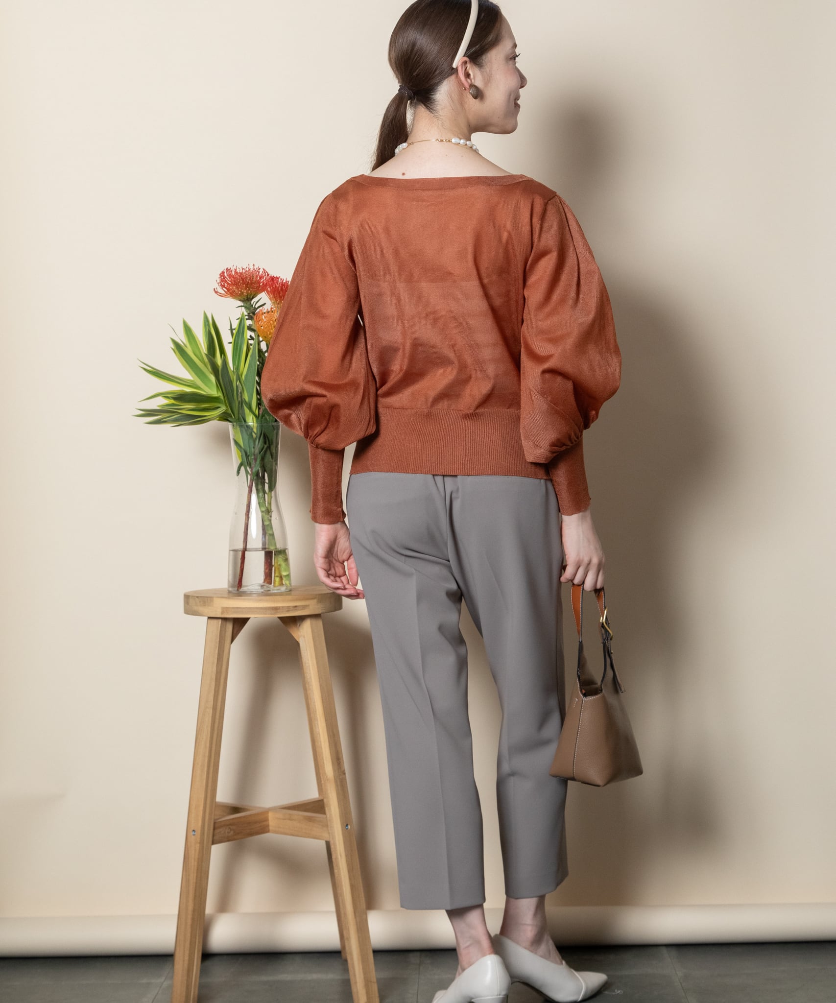 パフスリーブシアーニット