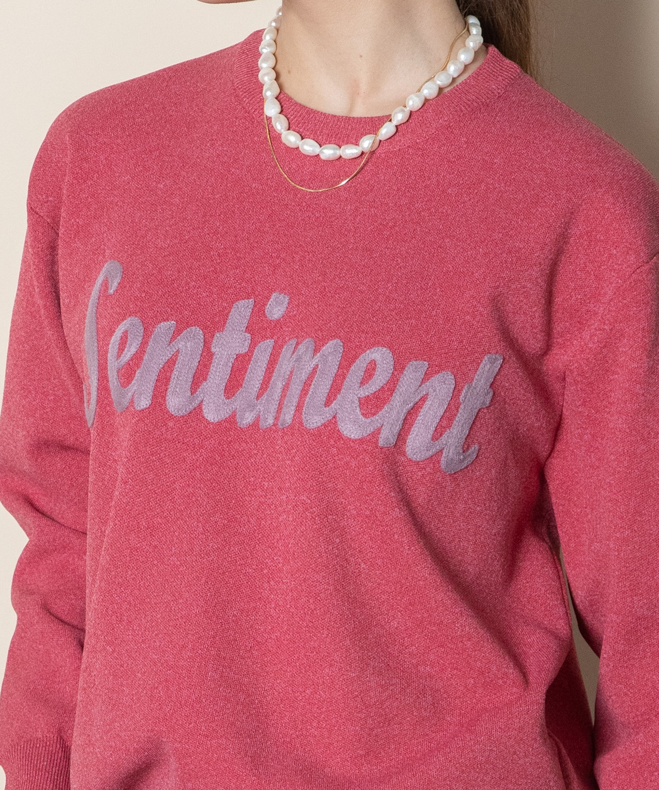 Sentiment -繊細な- ロゴテキスト刺繍リラックスニット
