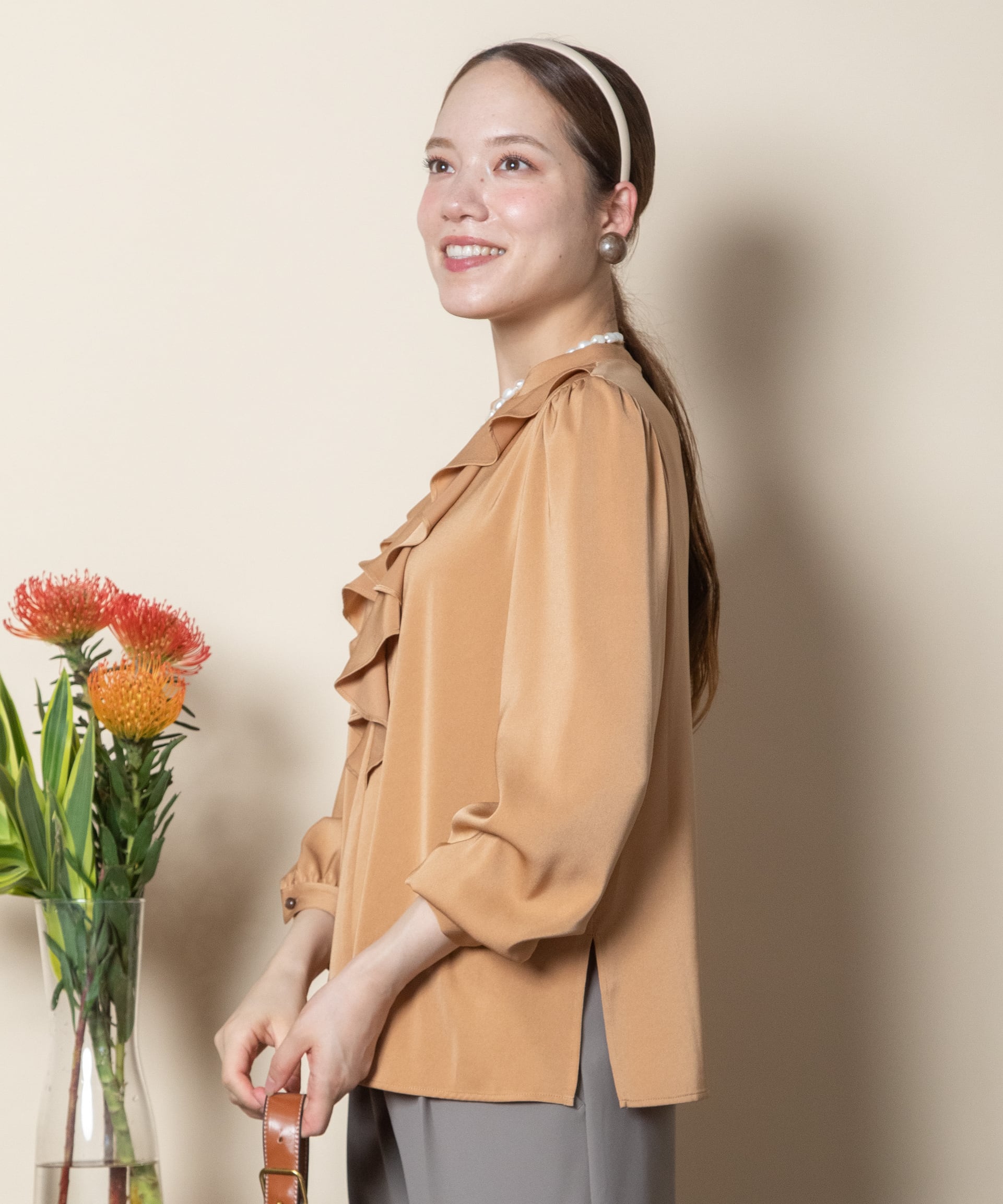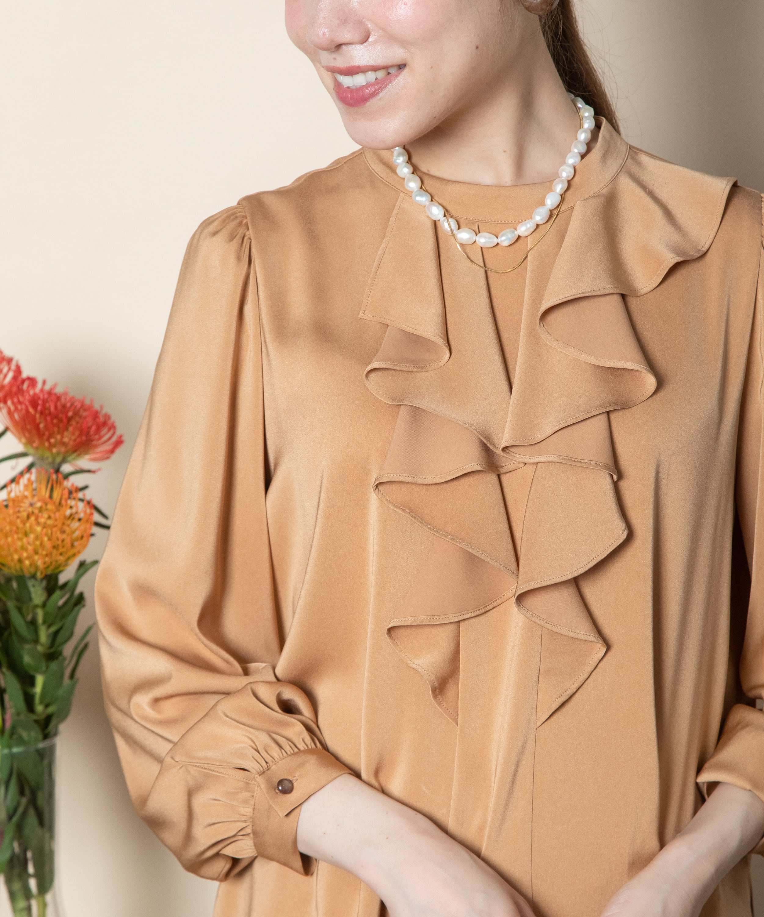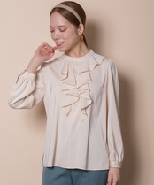 ラッフルフリルが魅力サテンブラウス