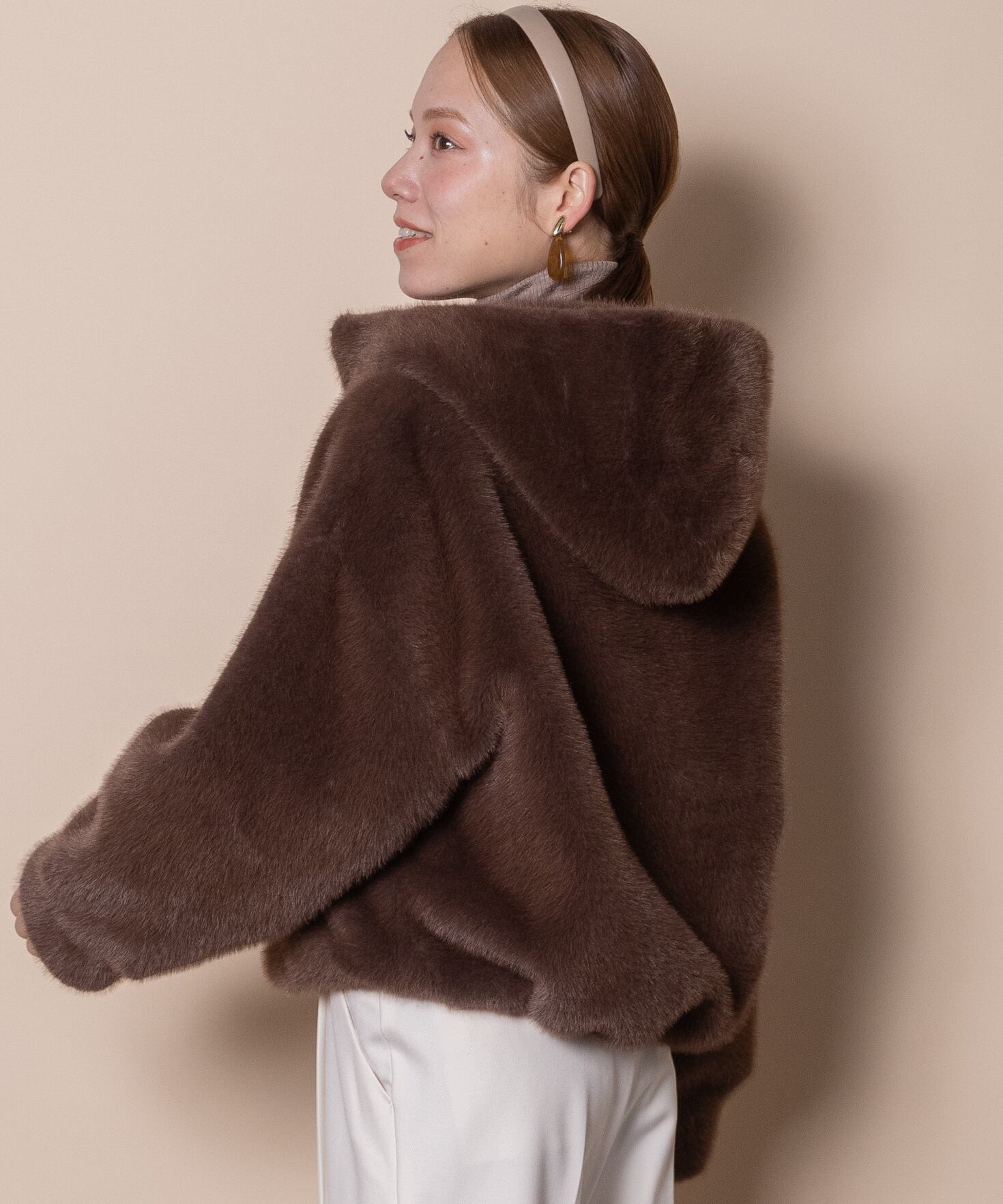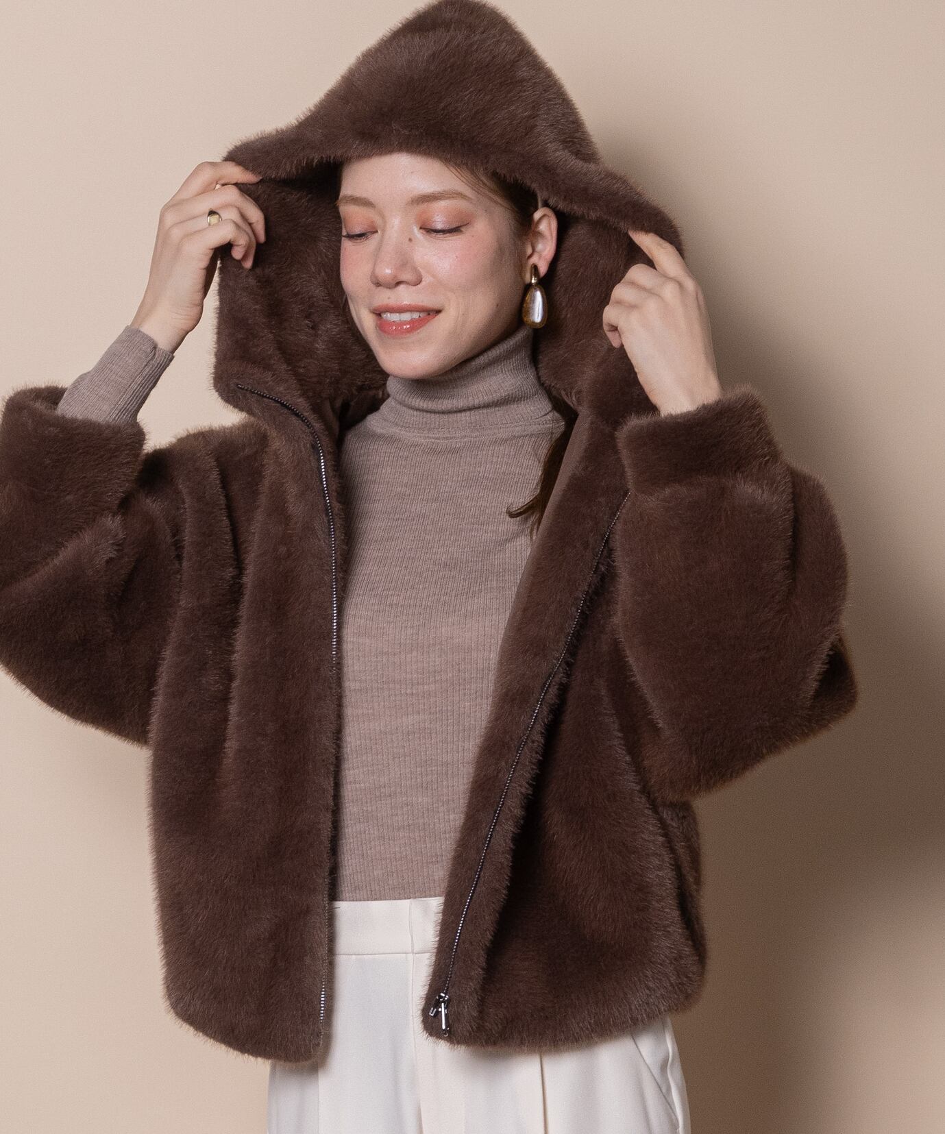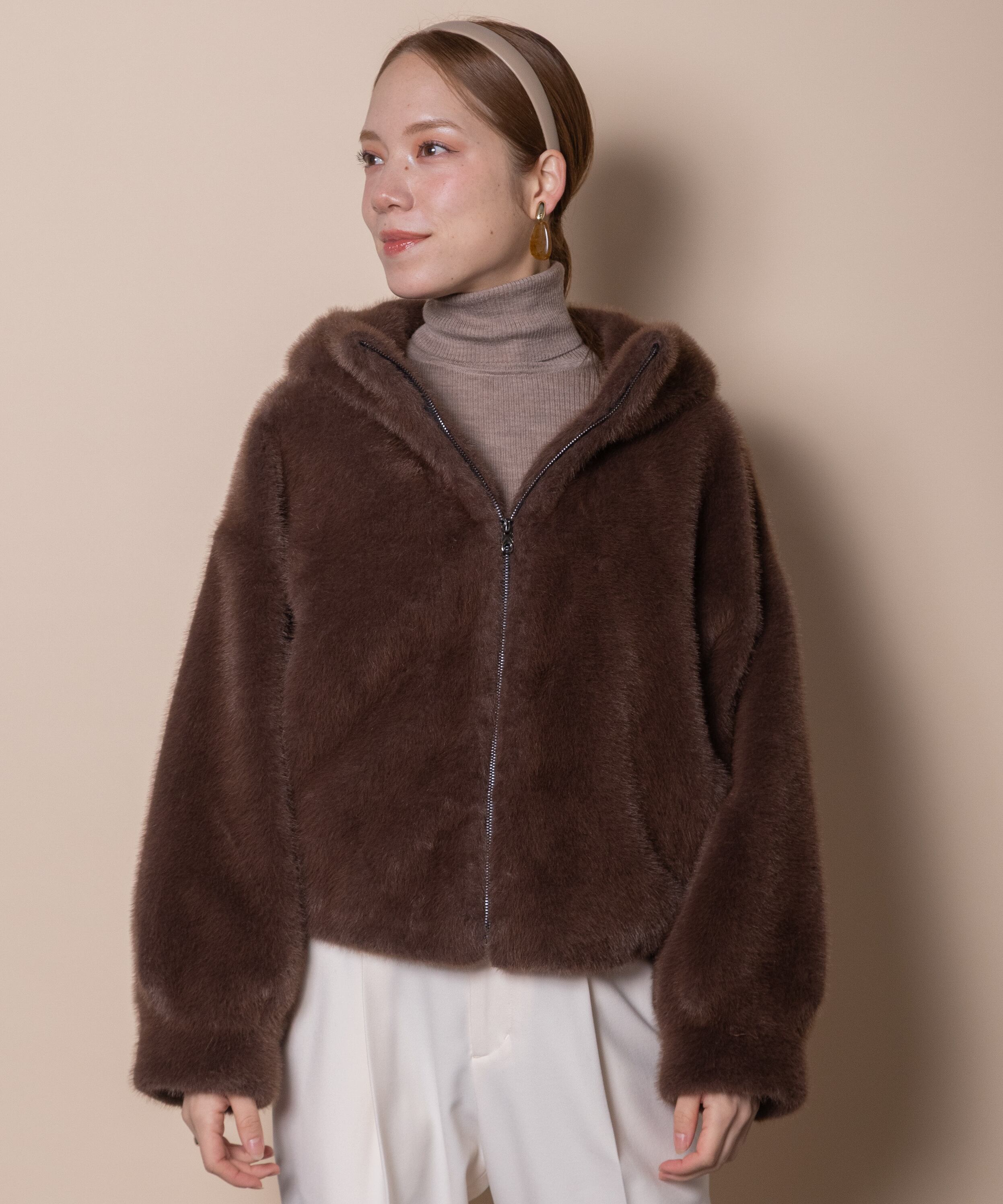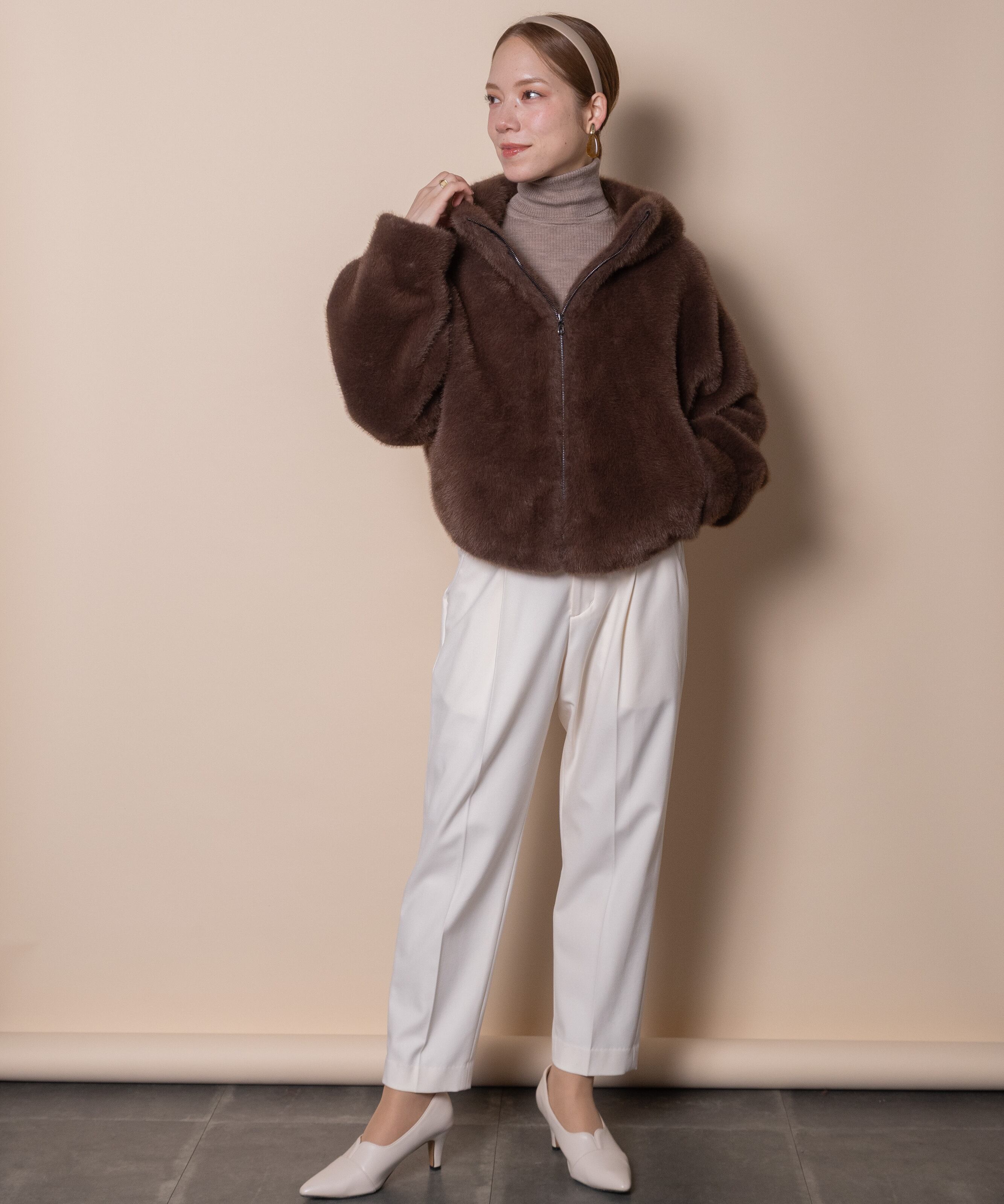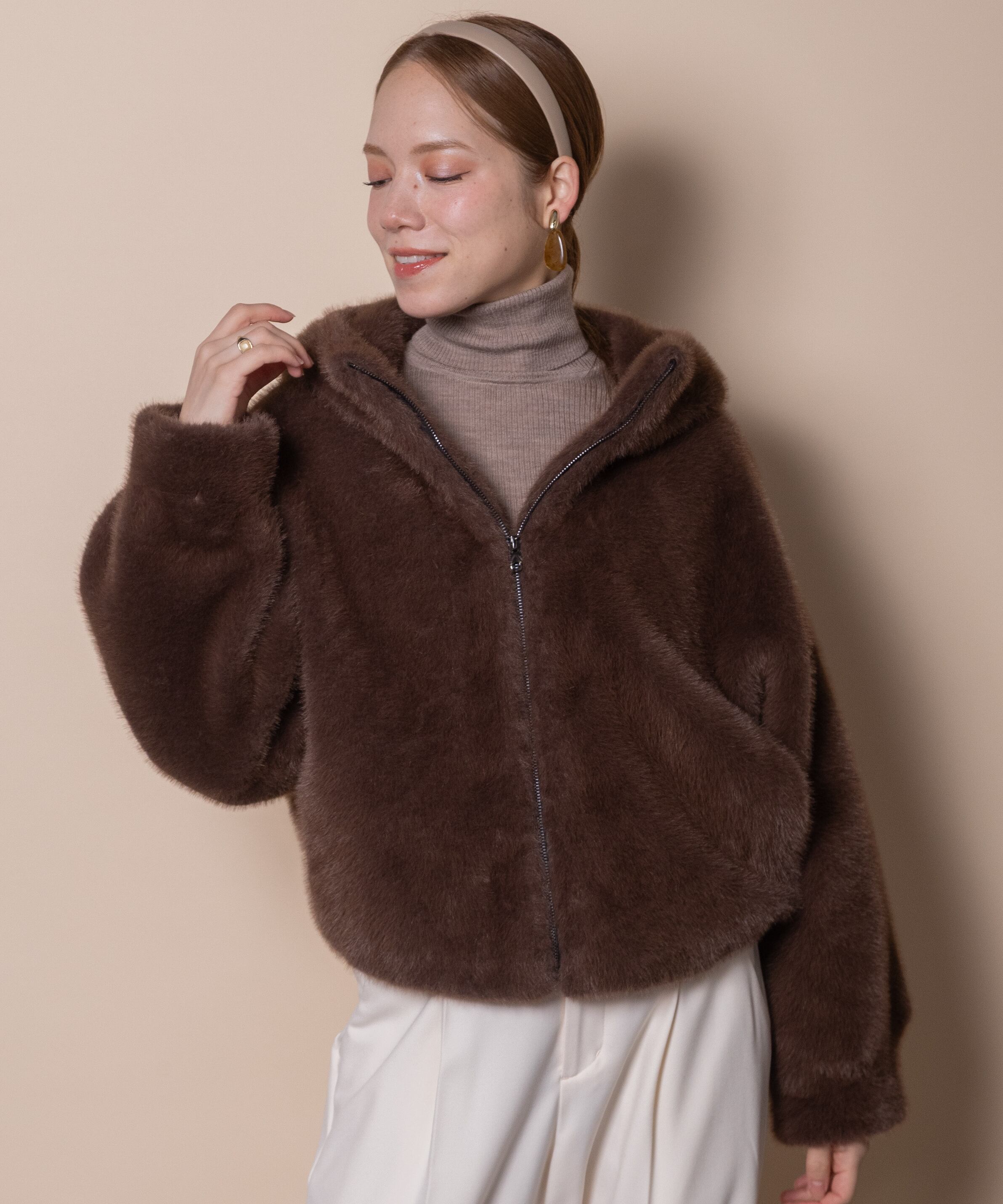 人気の高いオトナ可愛いファーアイテム。今シーズンはトレンドのショート丈。首元まで暖かなスタンドフードタイプのブルソン。ふんわりシルエットで気軽に羽織れば旬なスタイルが完成する優秀アイテム。