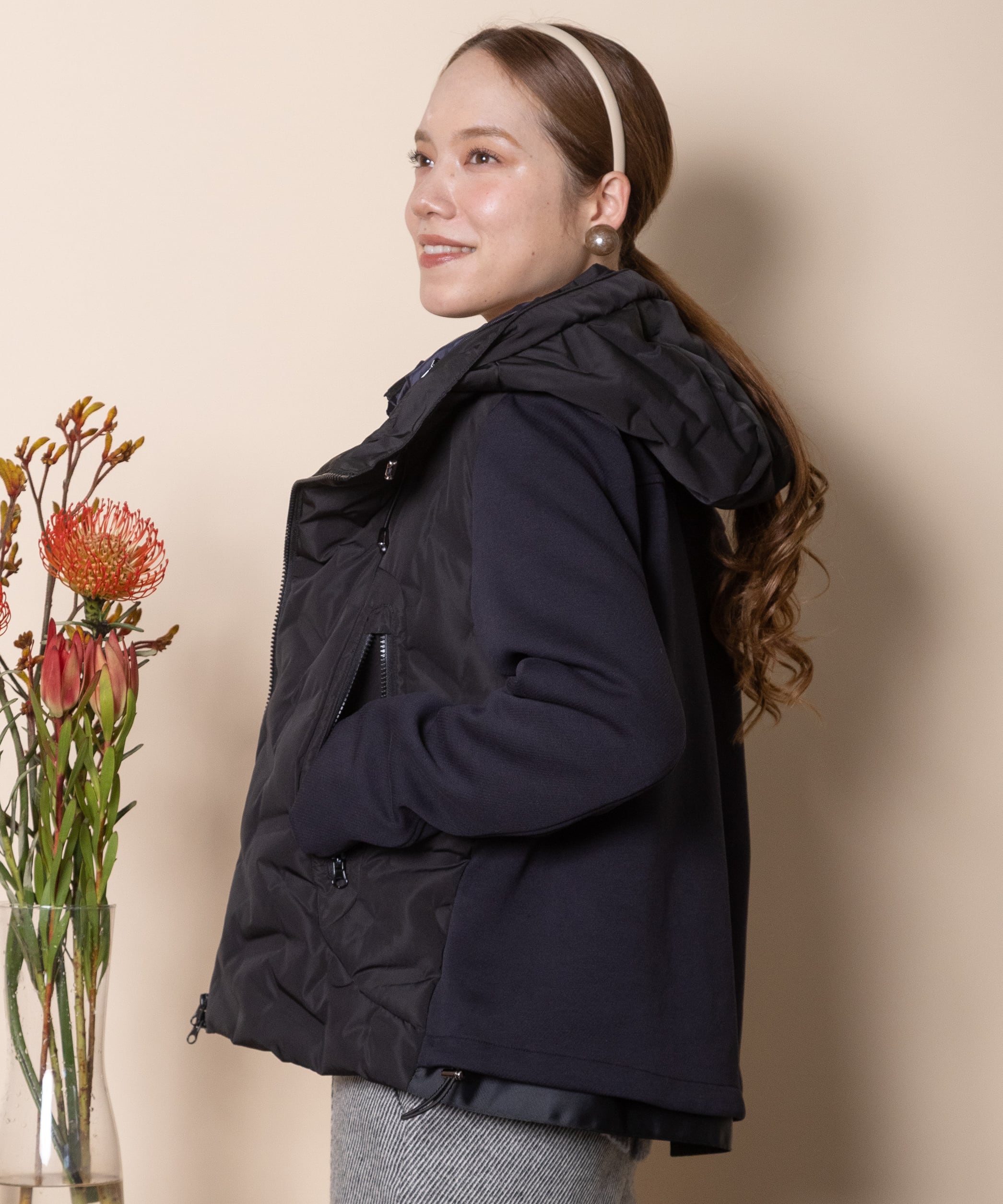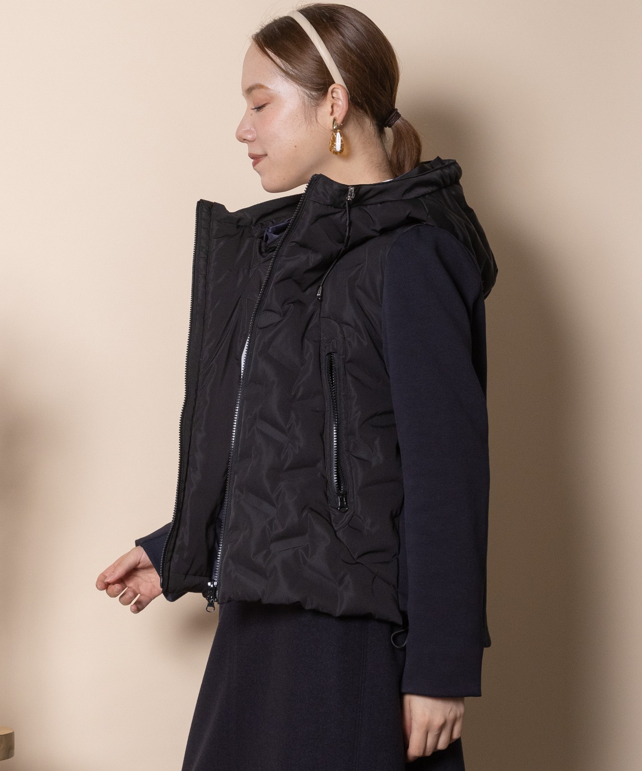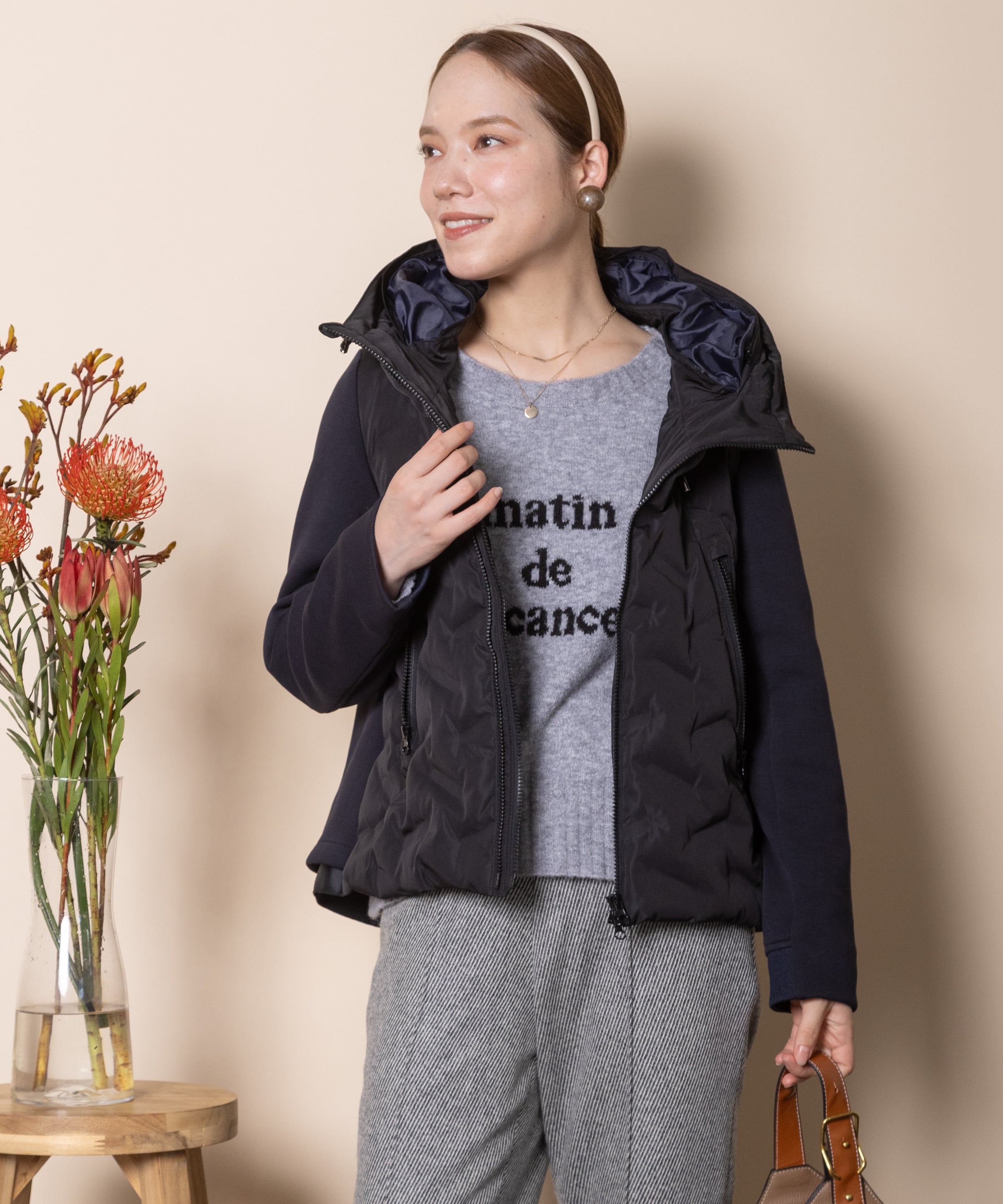 ・前身頃はキルトダウン、後身頃はダンボールニットのドッキングデザイン
