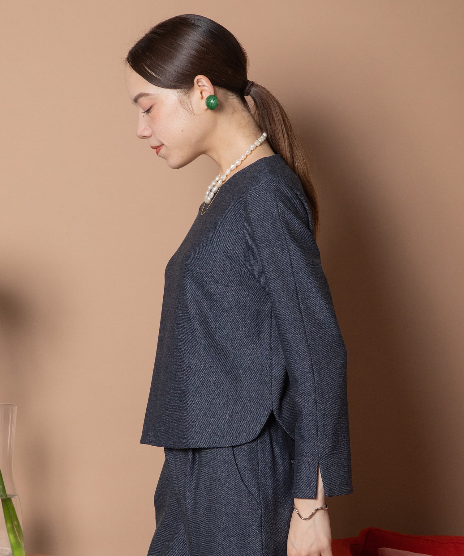 オフィスコーデ・お仕事シーンに大活躍間違いなし。同素材のプルオーバーとセットアップスタイルがおすすめ。