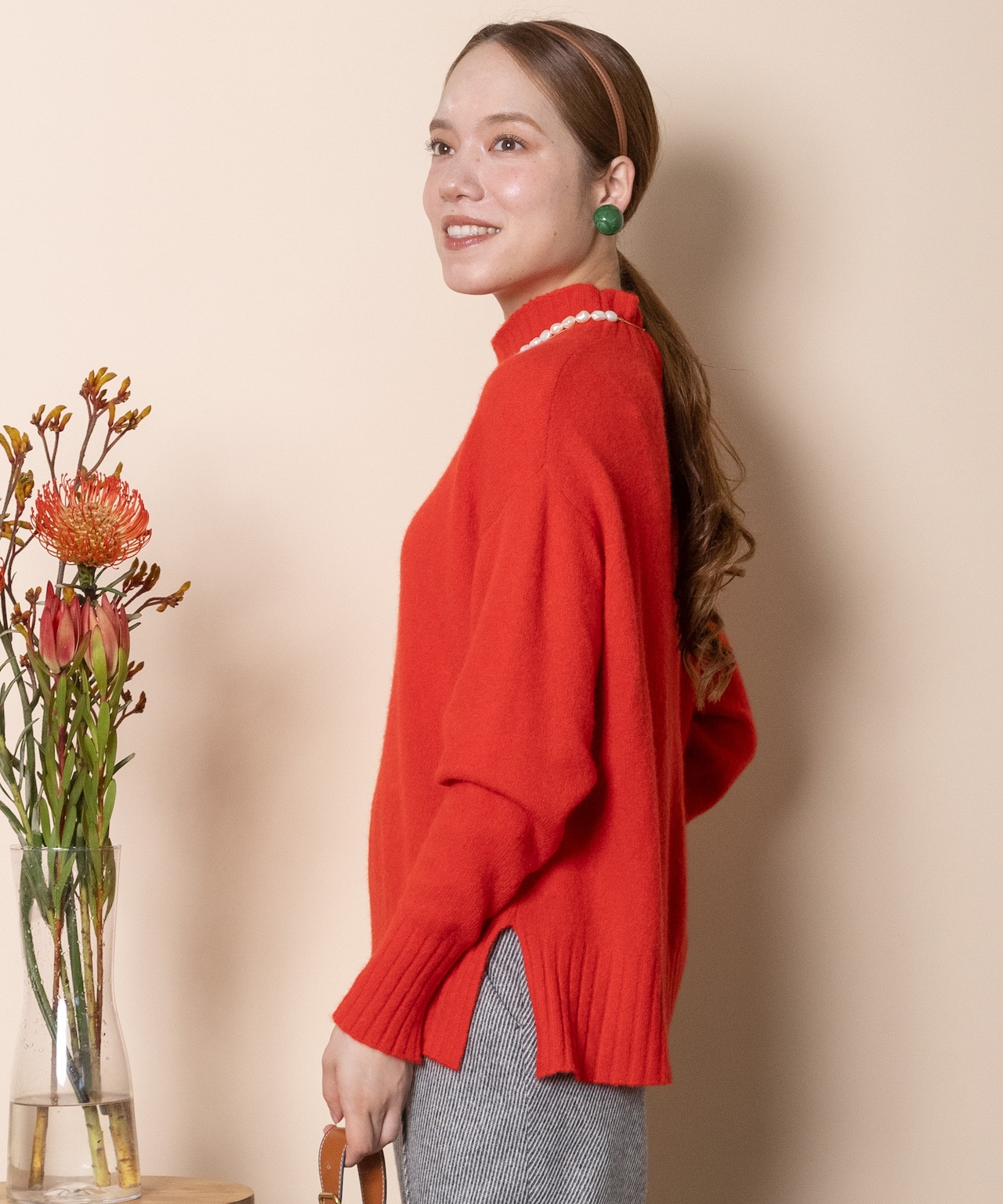 フォックスやヤクのような軽くて暖かなラクーンウールのハイネックニット。着丈は長めリラックスシルエットで着心地もソフトでデイリーに大活躍間違いなし。シンプルなハイネックに袖口と裾にスリットデザインがポイント。発色の良いカラーニットです。