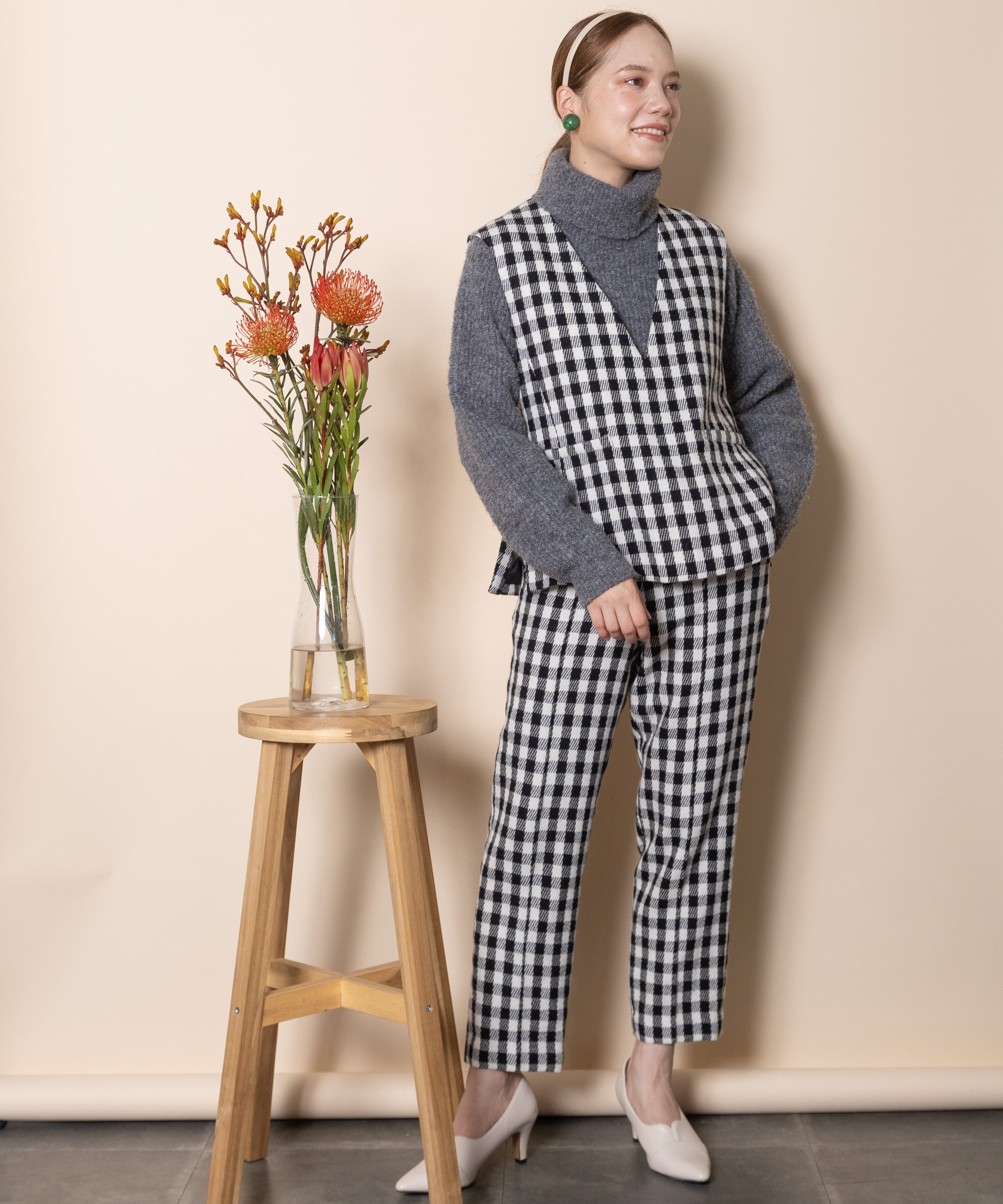 セットアップ派におすすめの上質なアンゴラウールのプルオーバー。同素材のテーパードパンツとあわせれば、クラシカルなセットアップスタイルが完成。ヘリンボーン、ギンガムチェック、ブロックチェックの三柄展開。フロントにポケット、バックはジップ開閉仕様。