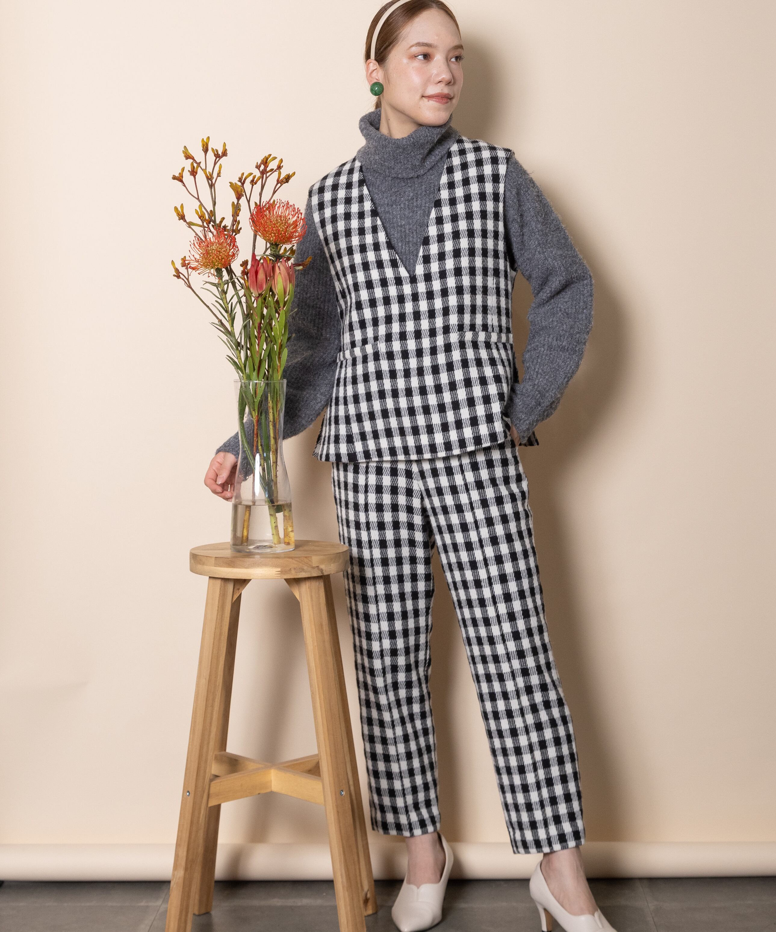 ヘリンボーン、ギンガムチェック、ブロックチェックの三柄展開