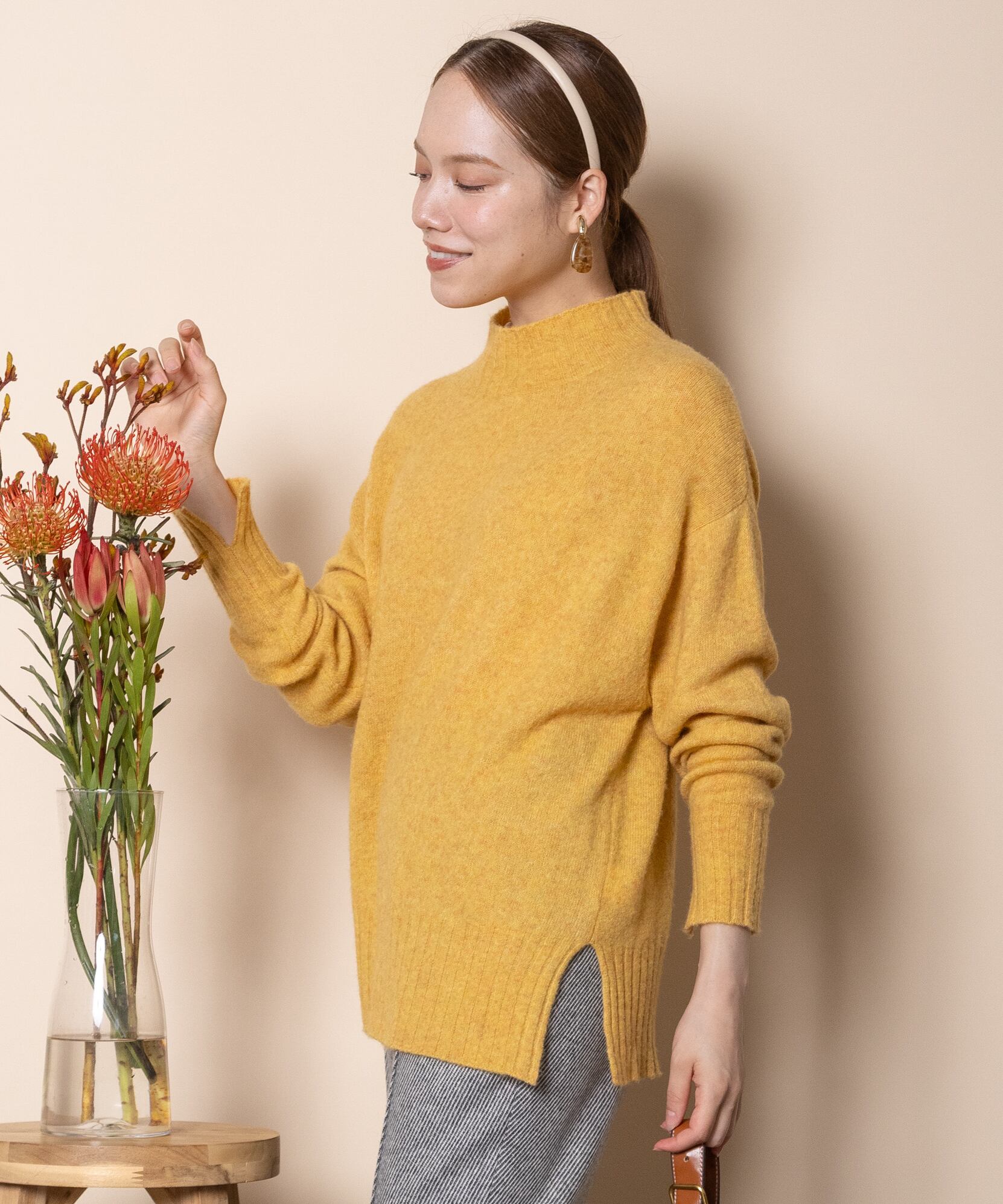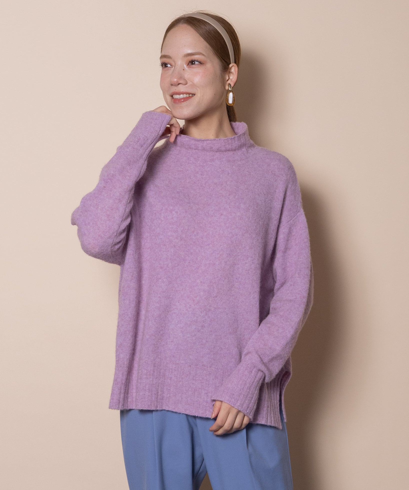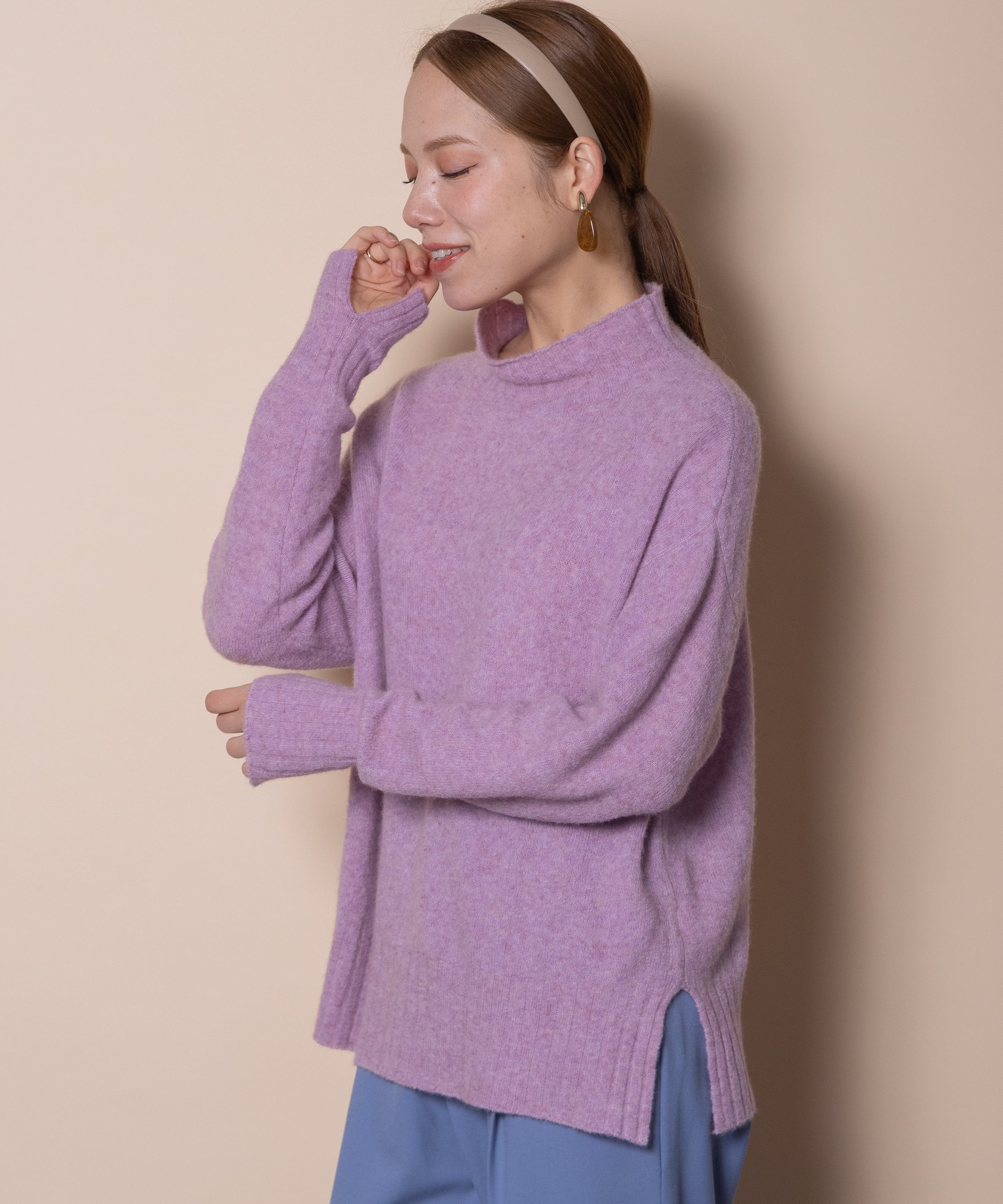 上質で暖かラクーンウールのハイネックニット