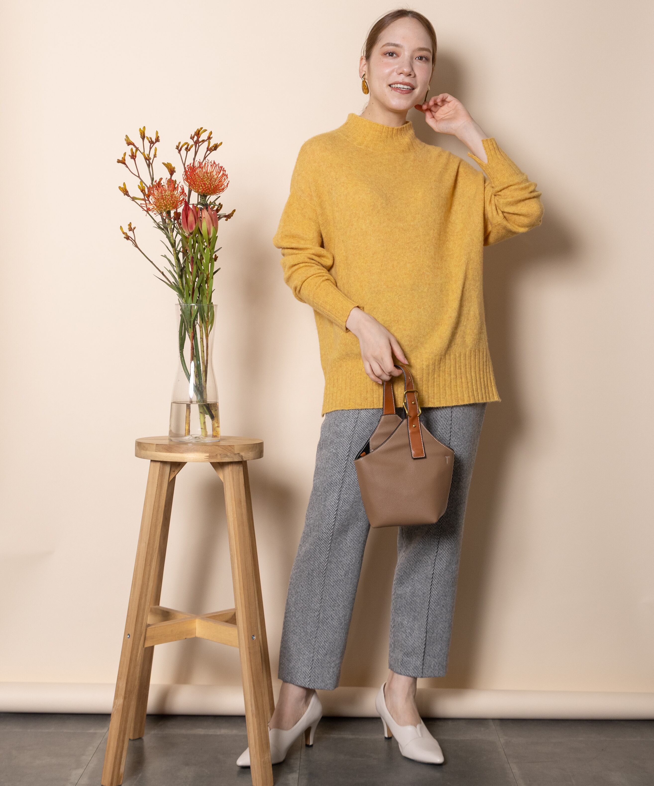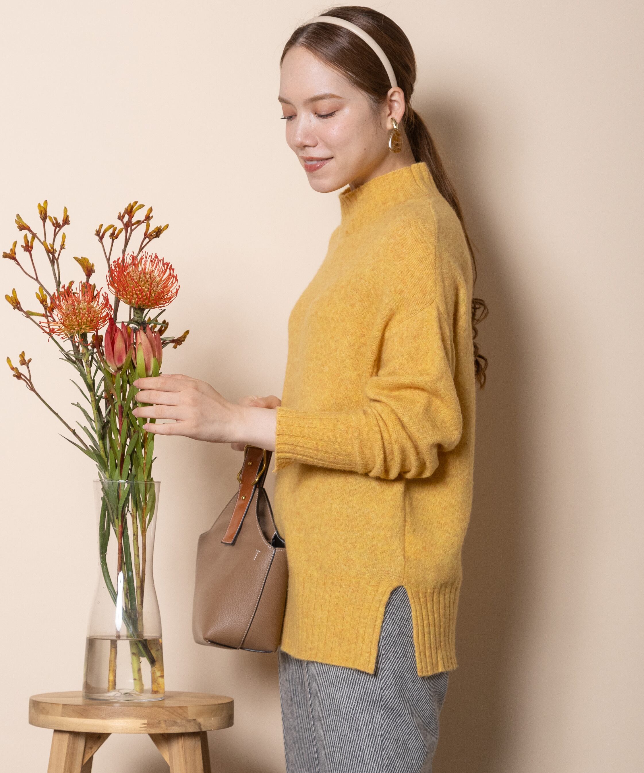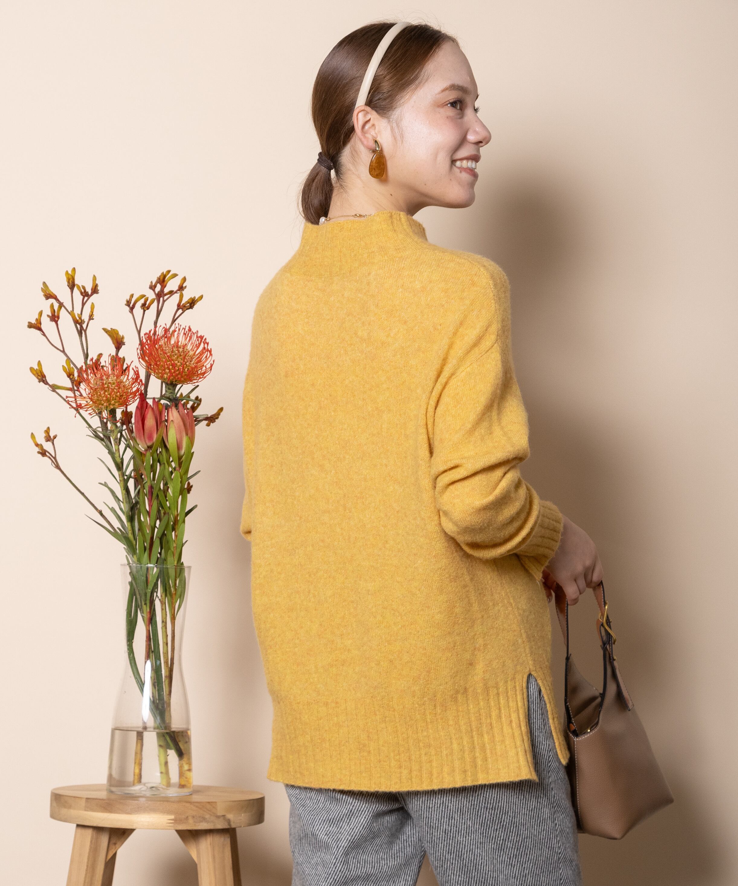 上質で暖かラクーンウールのハイネックニット