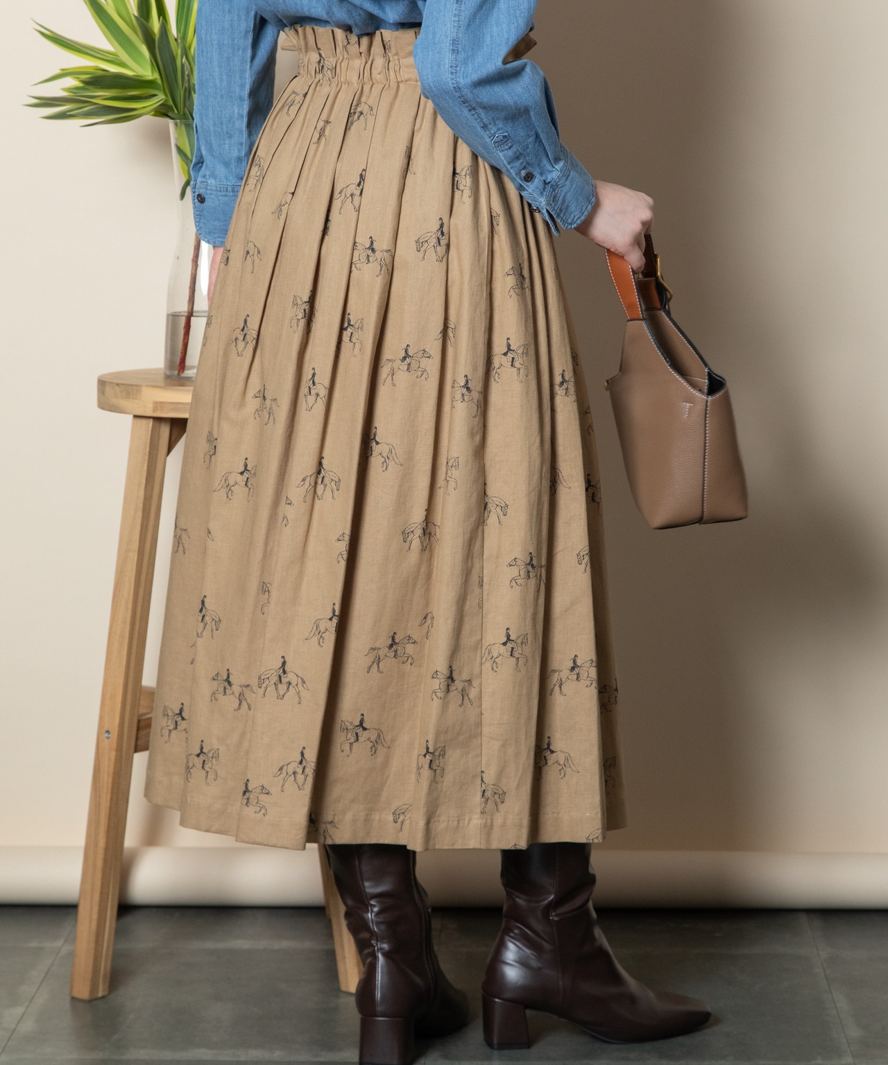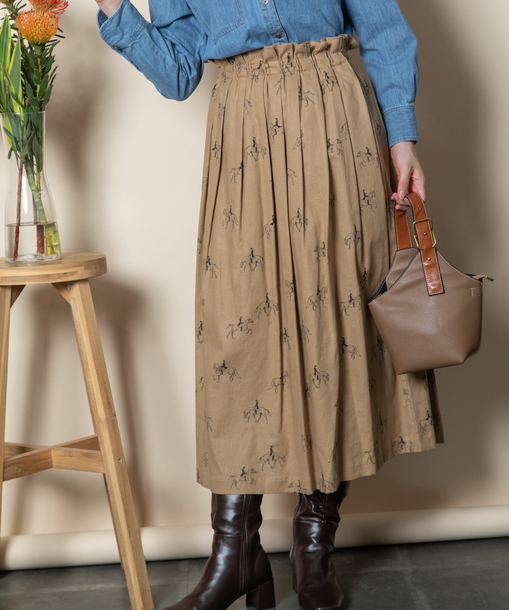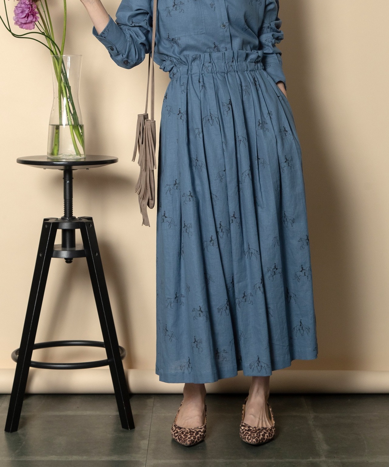 リネンコットン100%先染め馬術プリントが施された馬柄を使用。