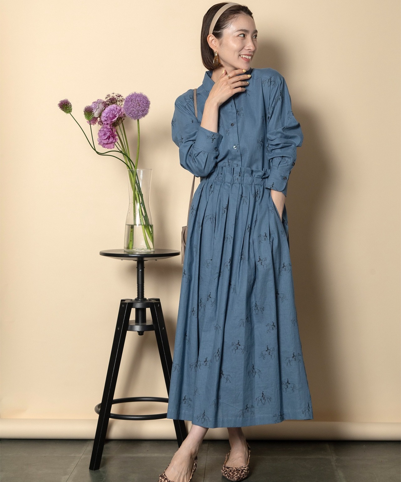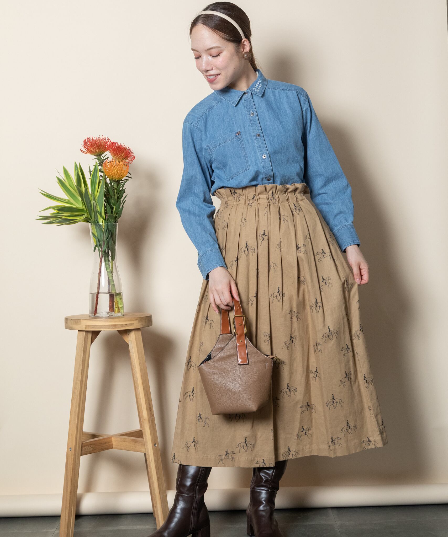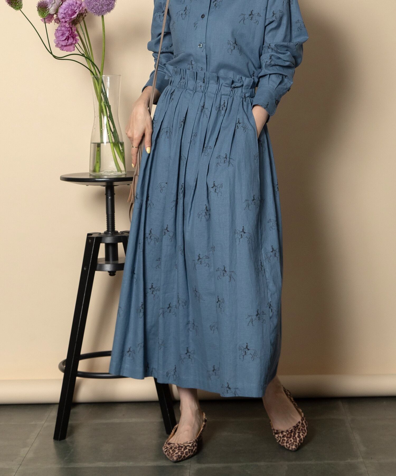 リネンコットン100%先染め馬術プリントが施された馬柄を使用。