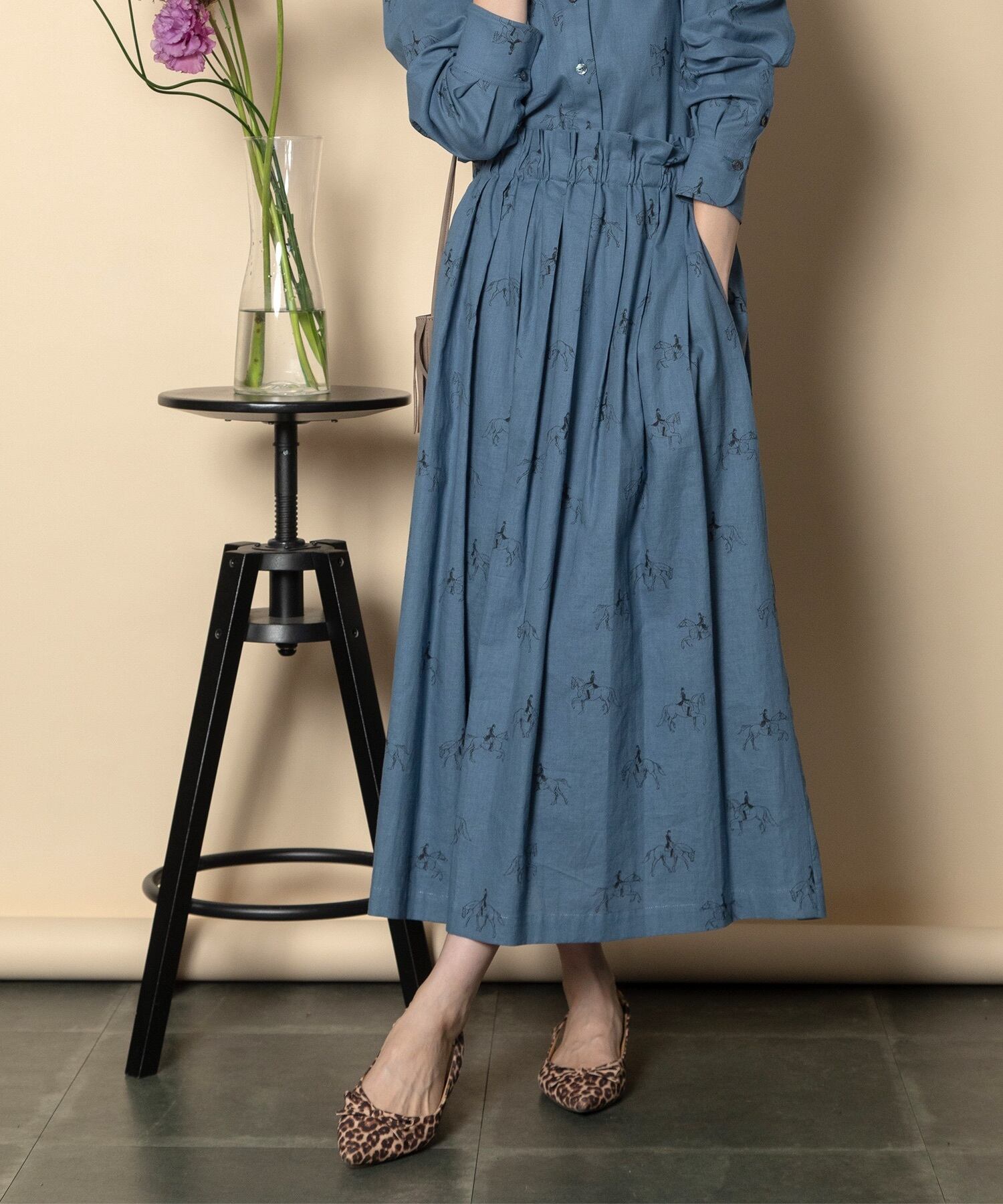 形はベーシックなふんわり広がるタックギャザーのロングスカート。