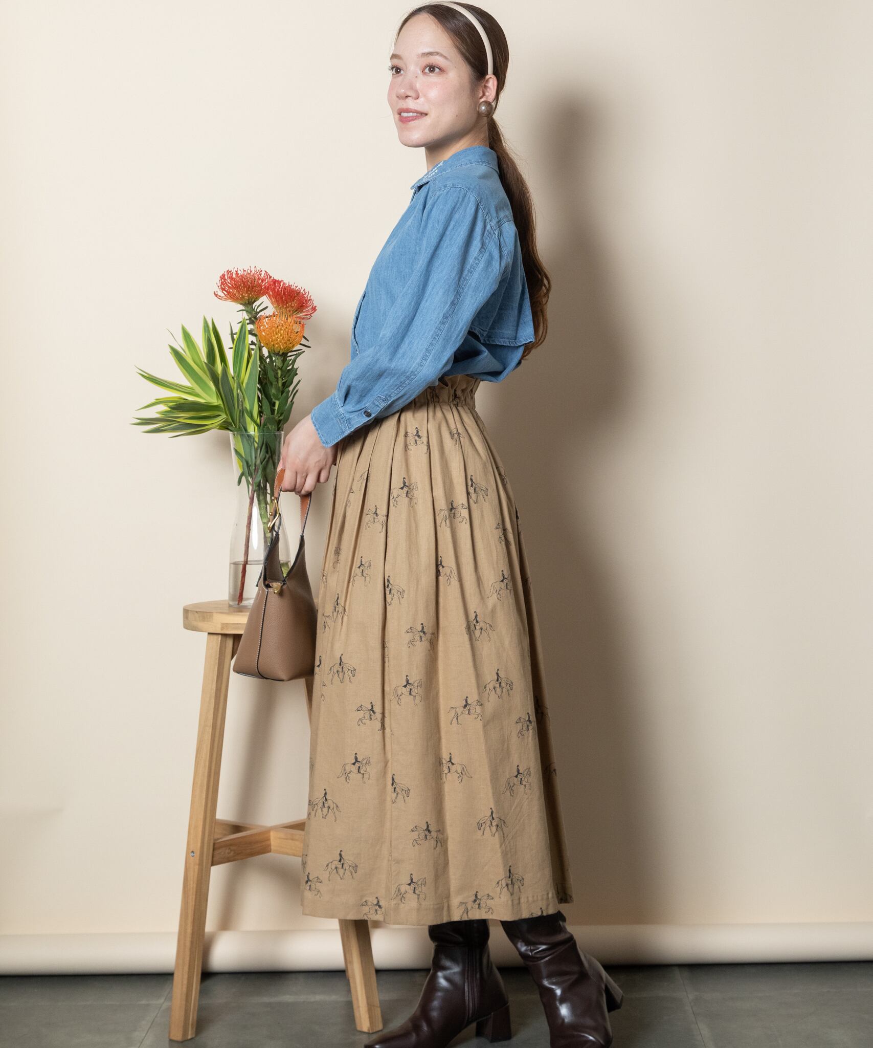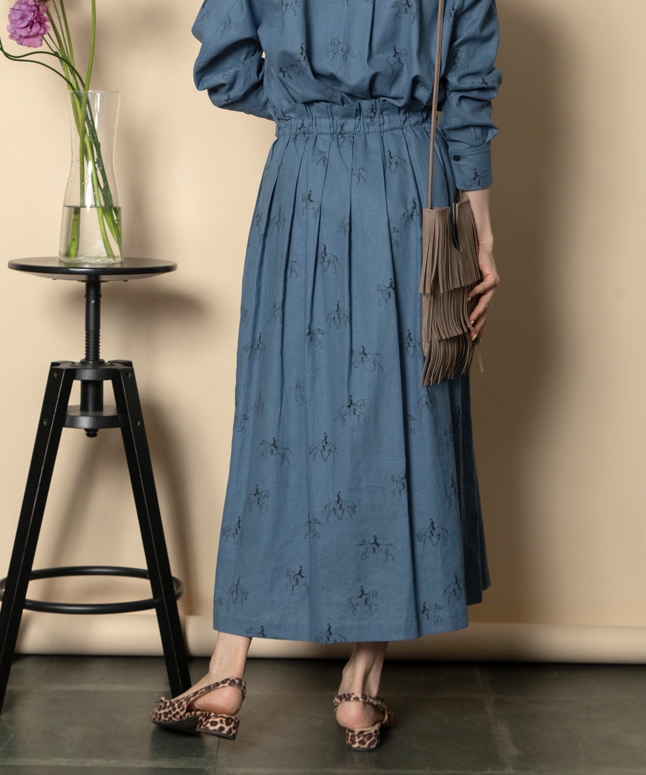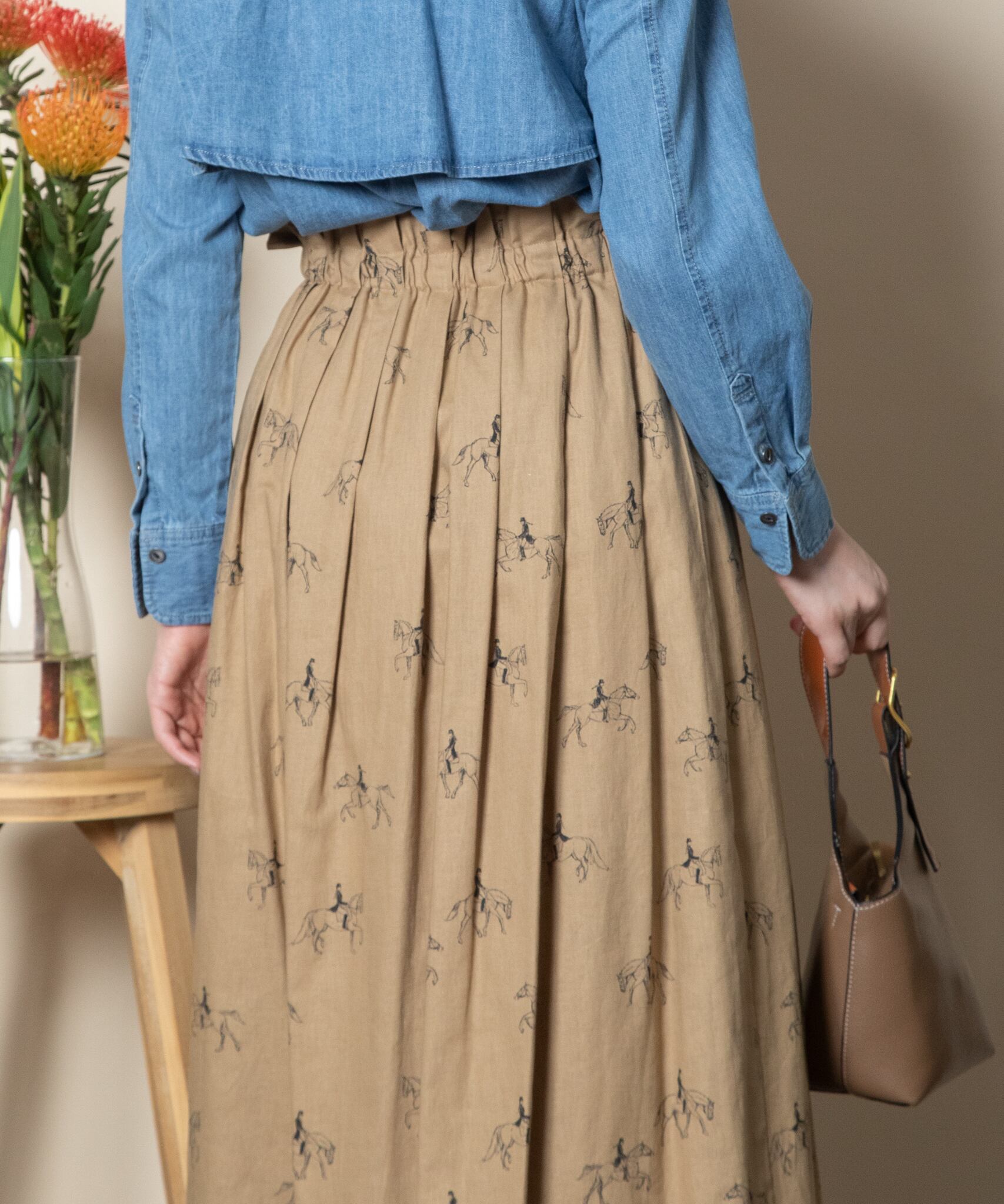リネンコットン100%先染め馬術プリントが施された馬柄を使用。
