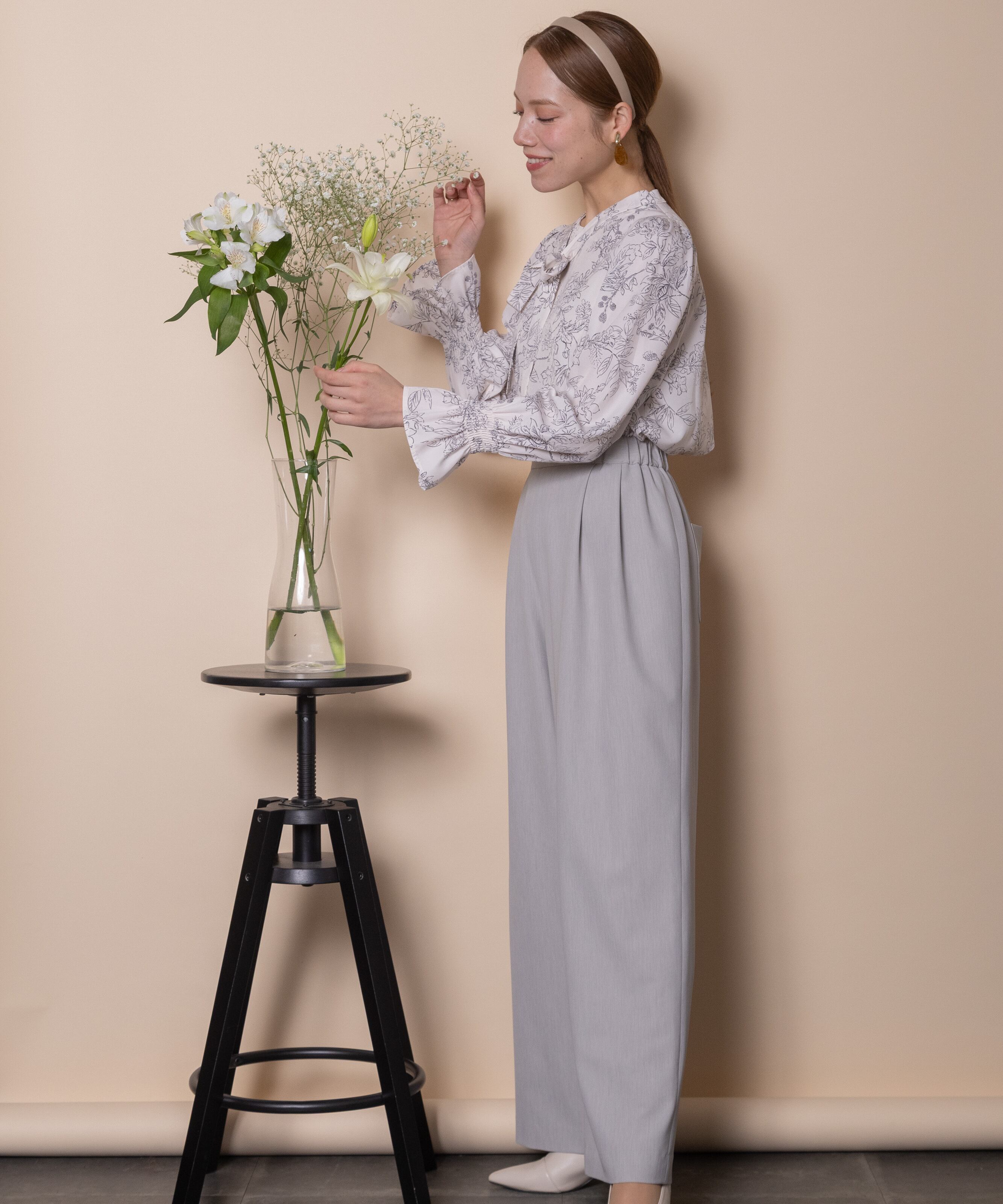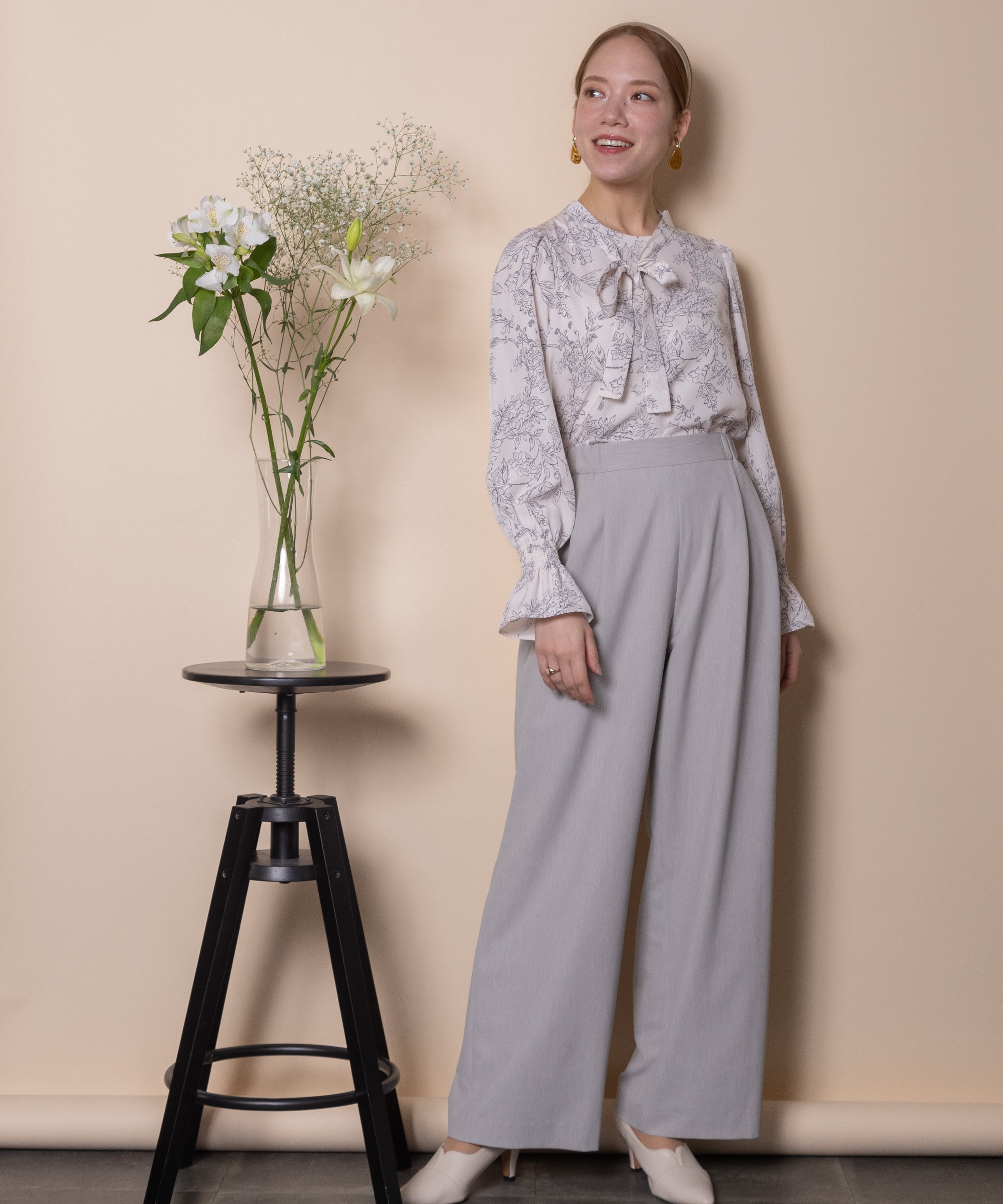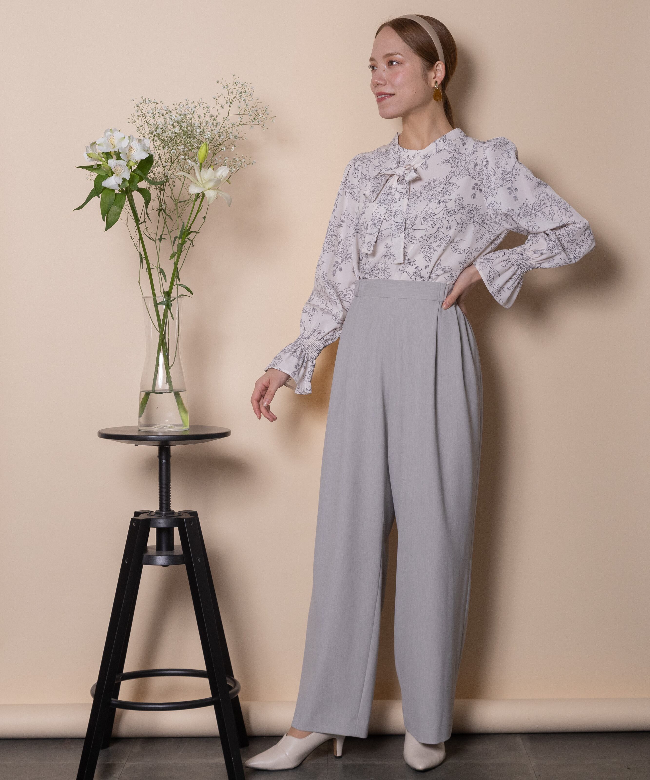 セレモニーシーンやオフィスシーンなどきちんとしたシーンで大活躍するセットアイテム。インには綺麗めのブラウスがおすすめ。