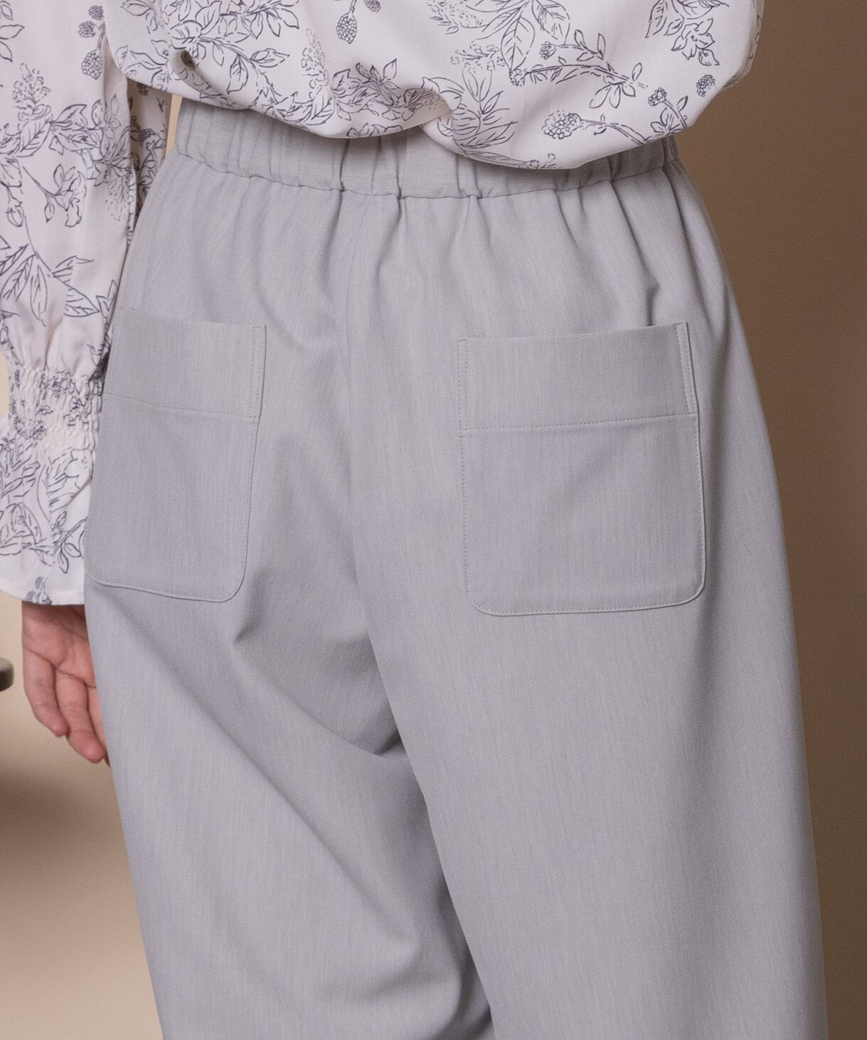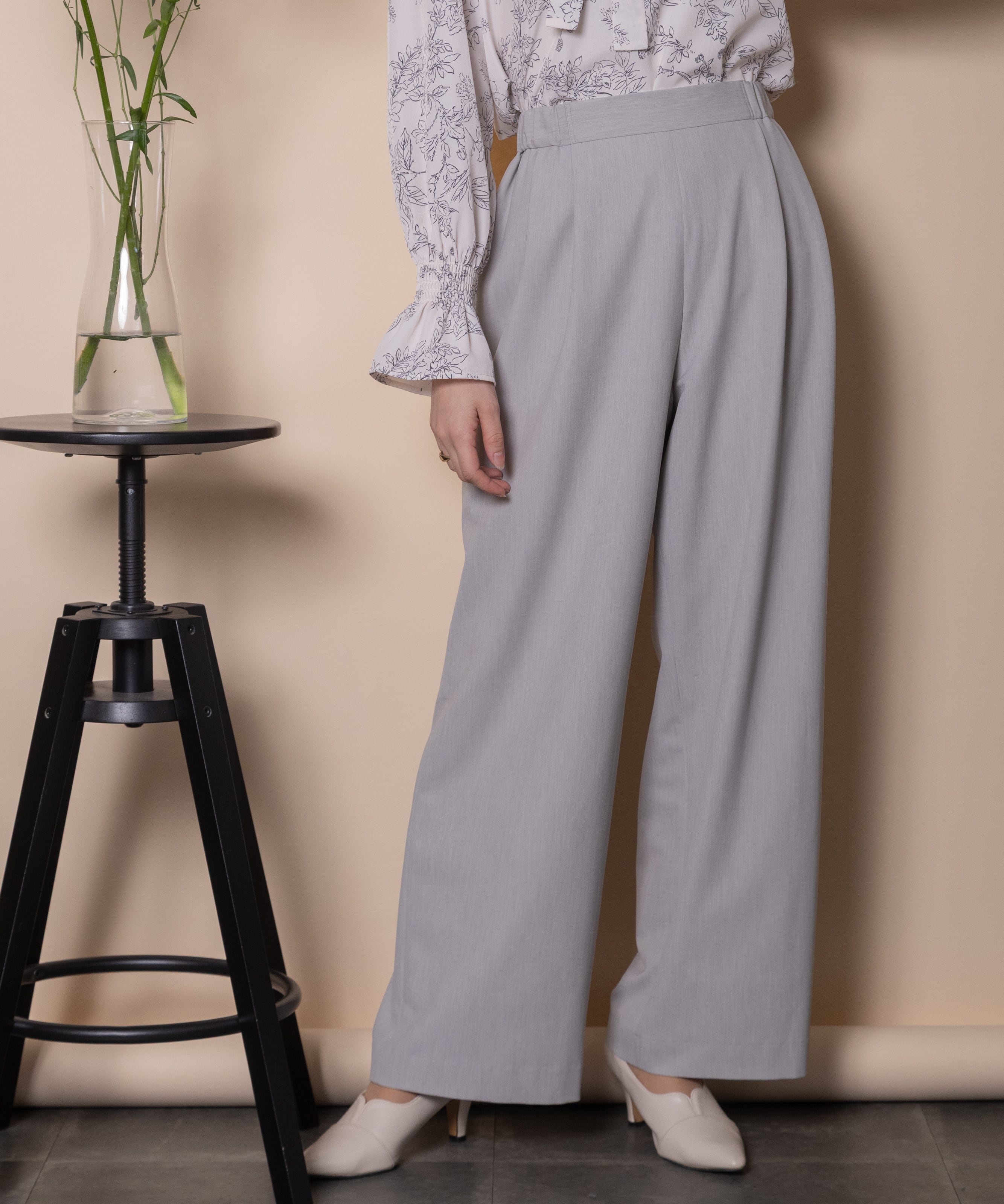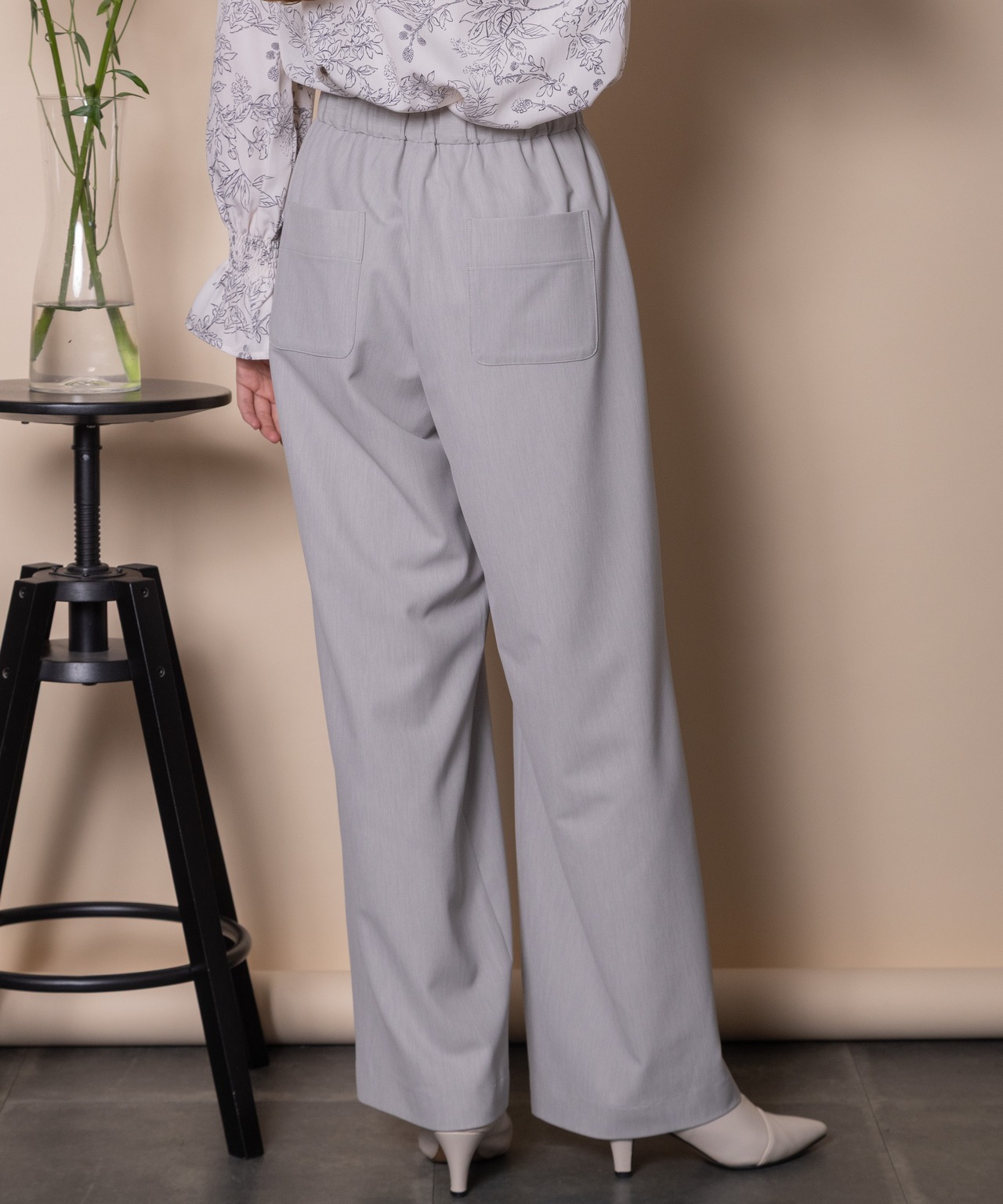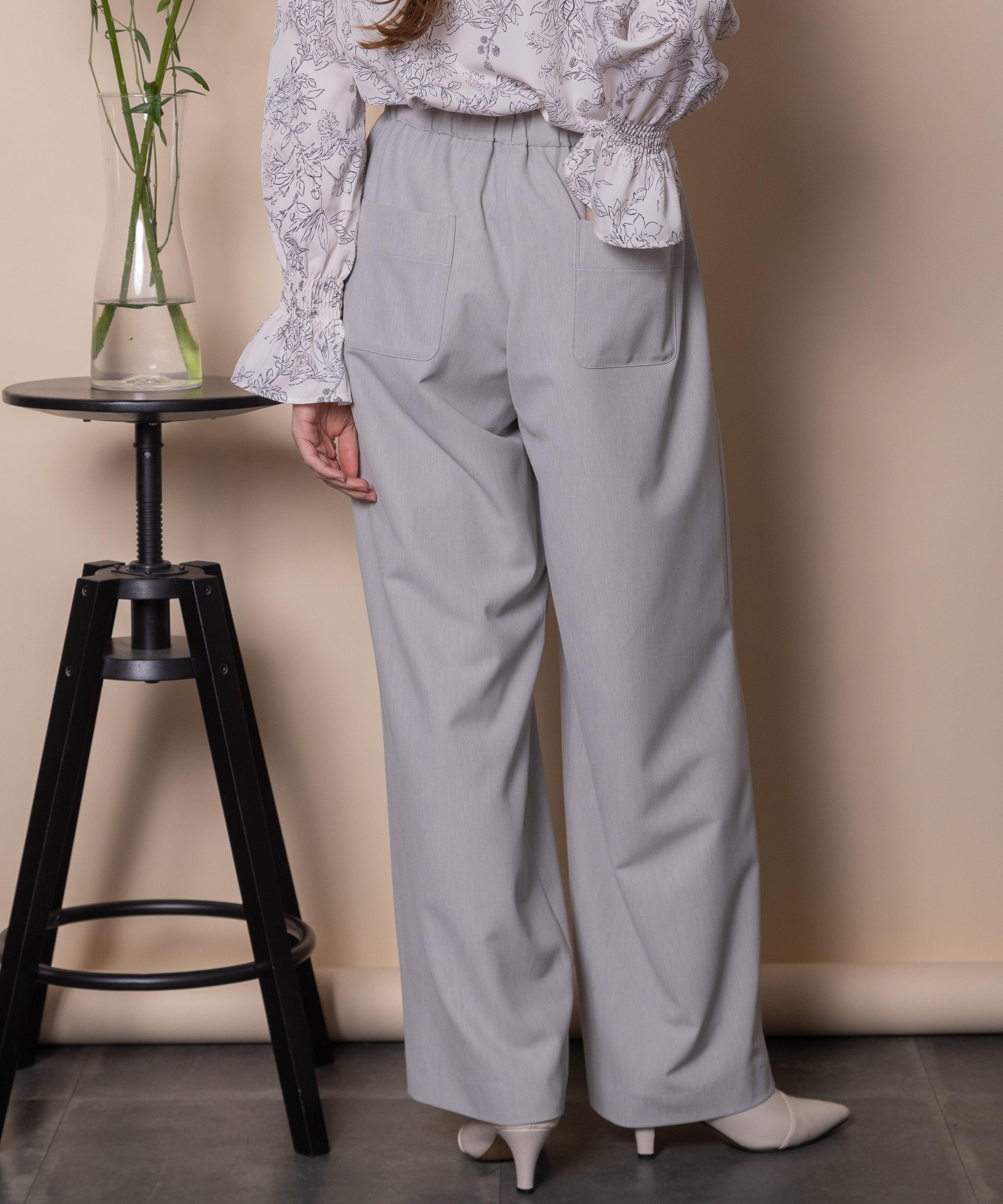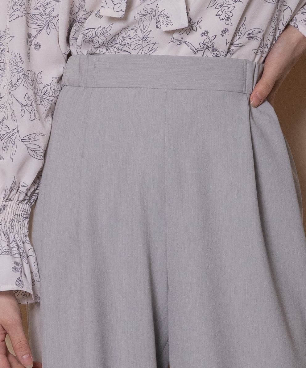 キレイめボトムの定番ワイドイージーパンツ。一枚あると重宝するキレイめのワイドイージーパンツ。ウエストはバックゴム仕様でリラックス感のあるワイドフレアシルエット。マニッシュにクールに決まります。