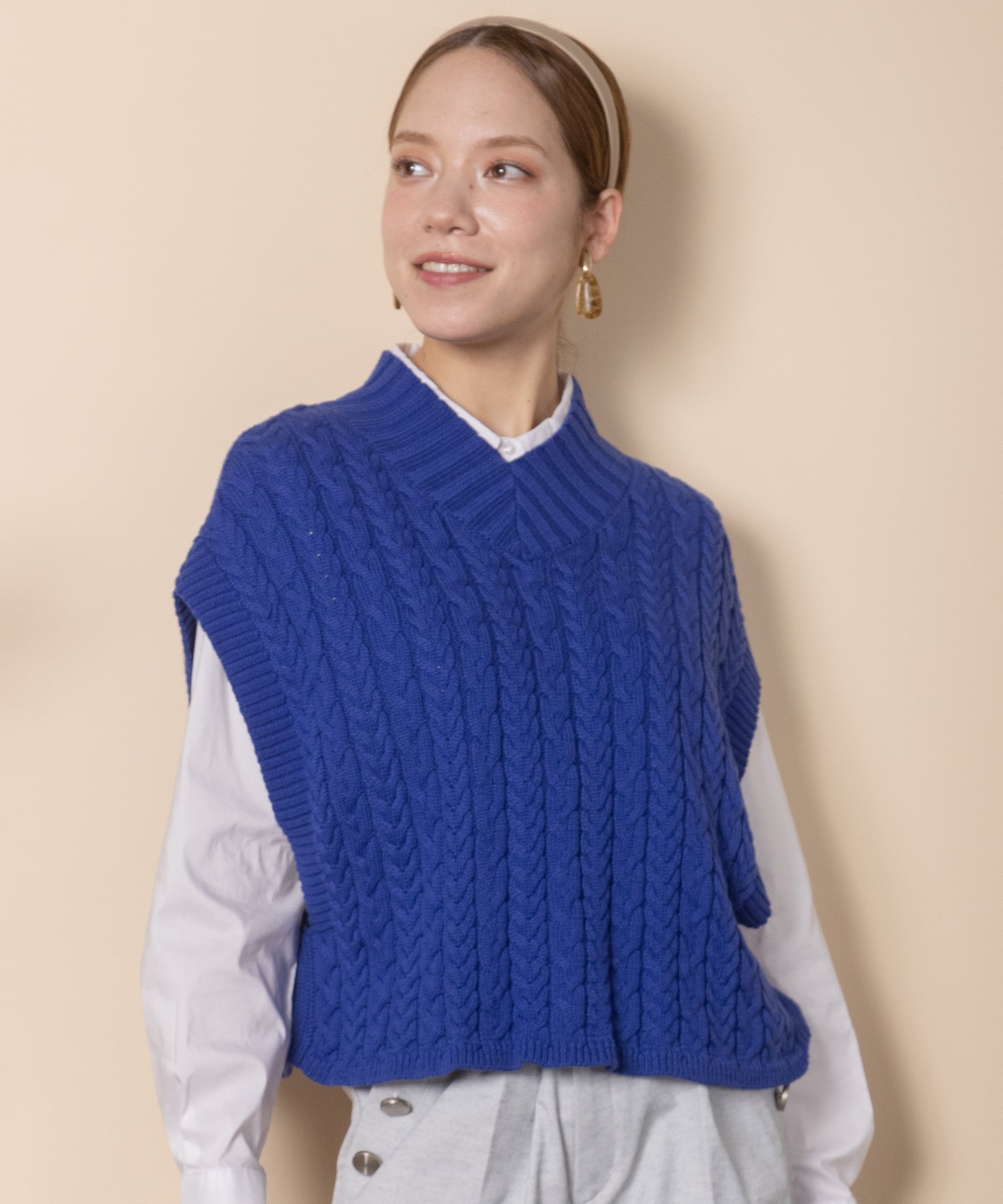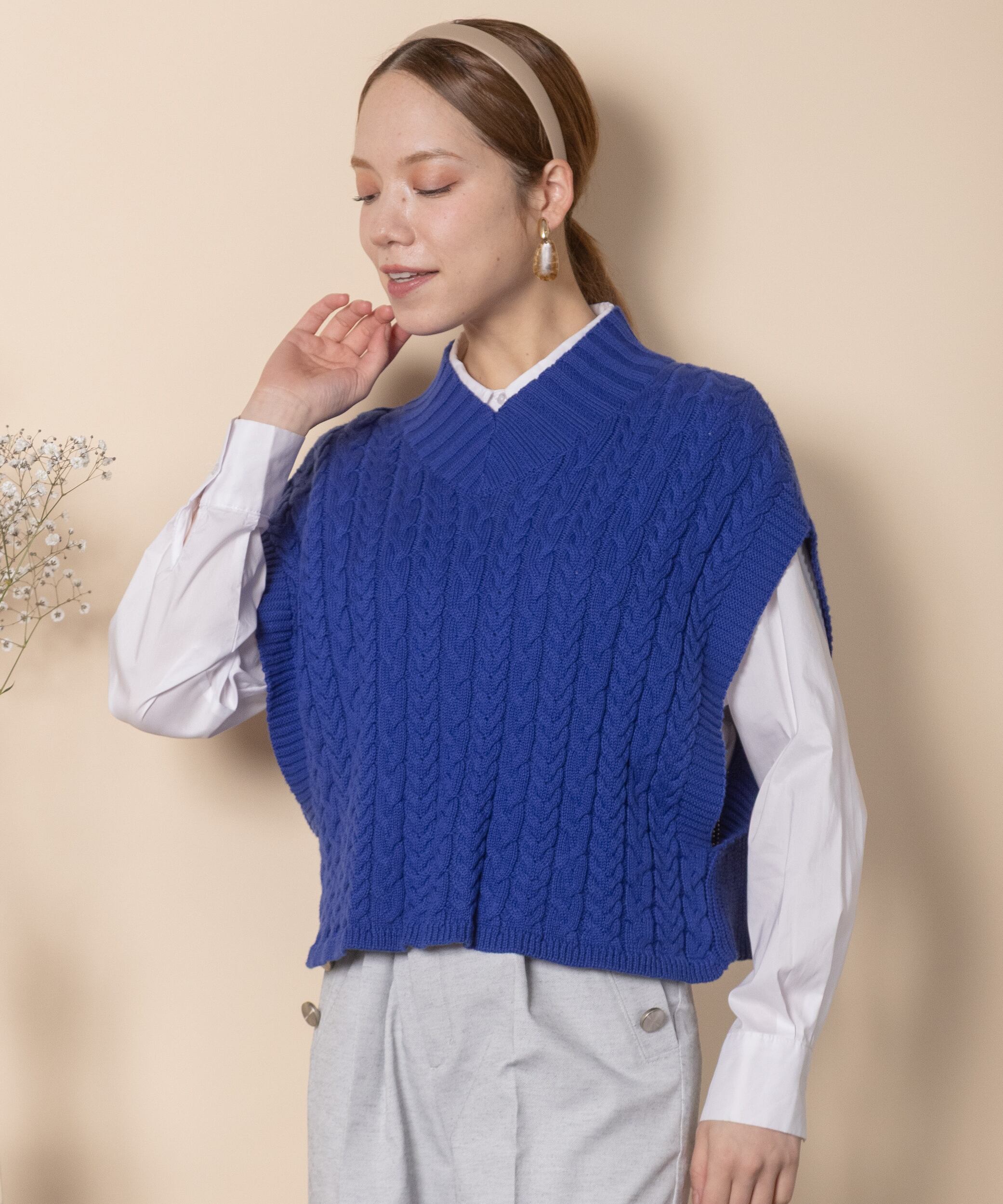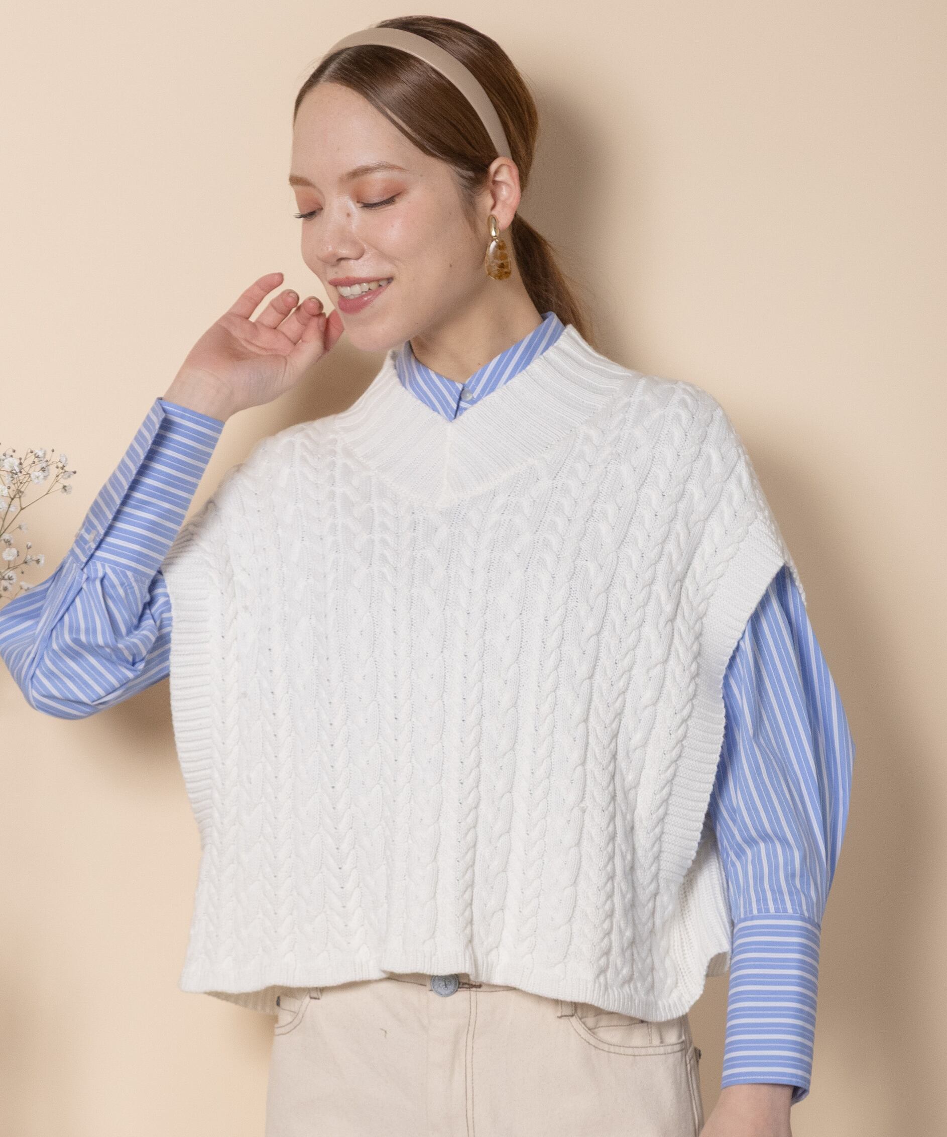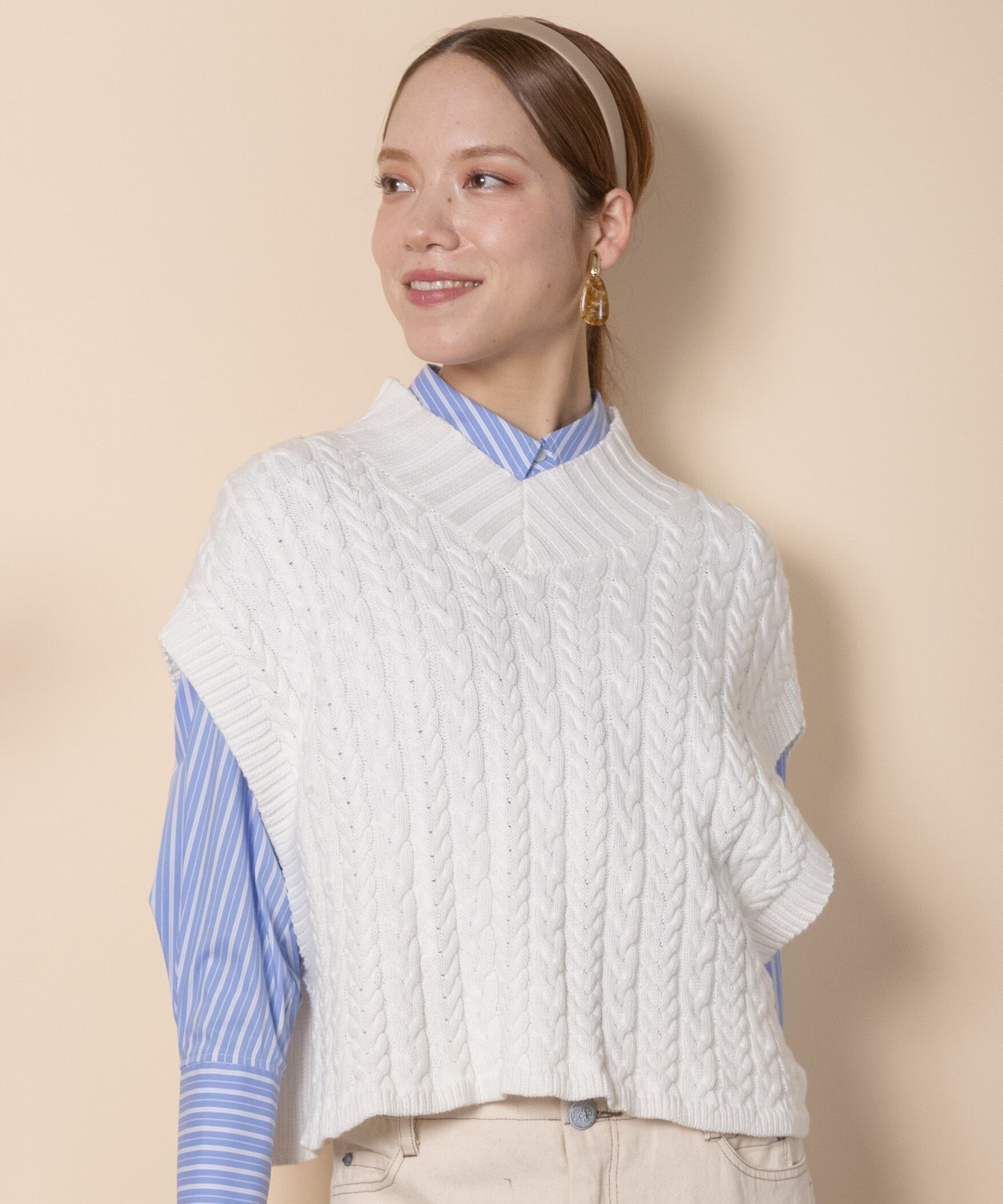ケーブルニットベスト