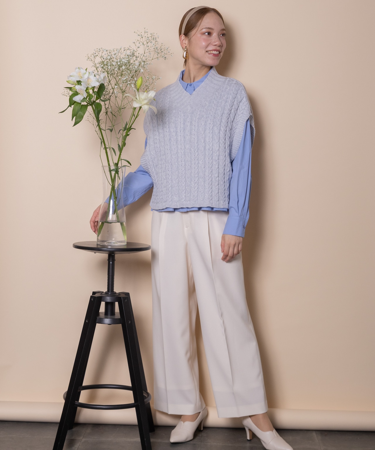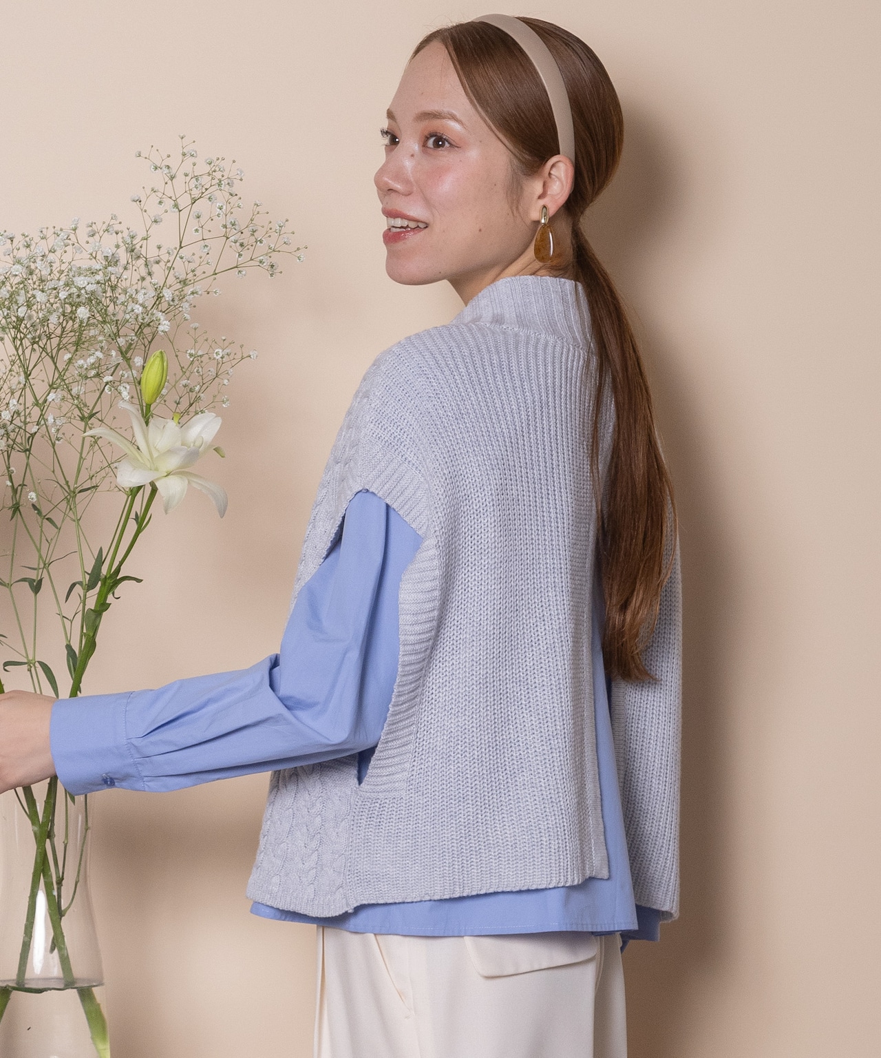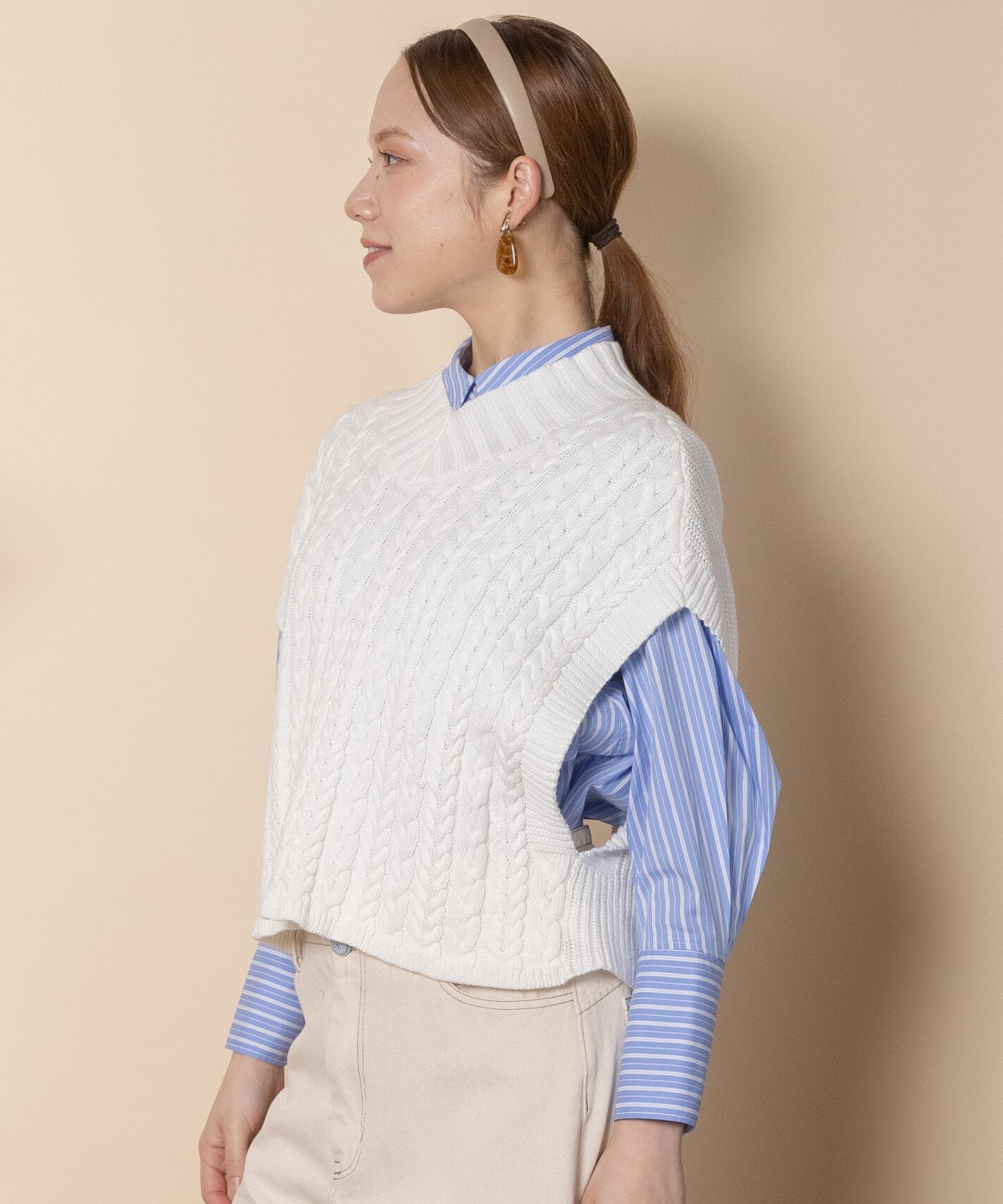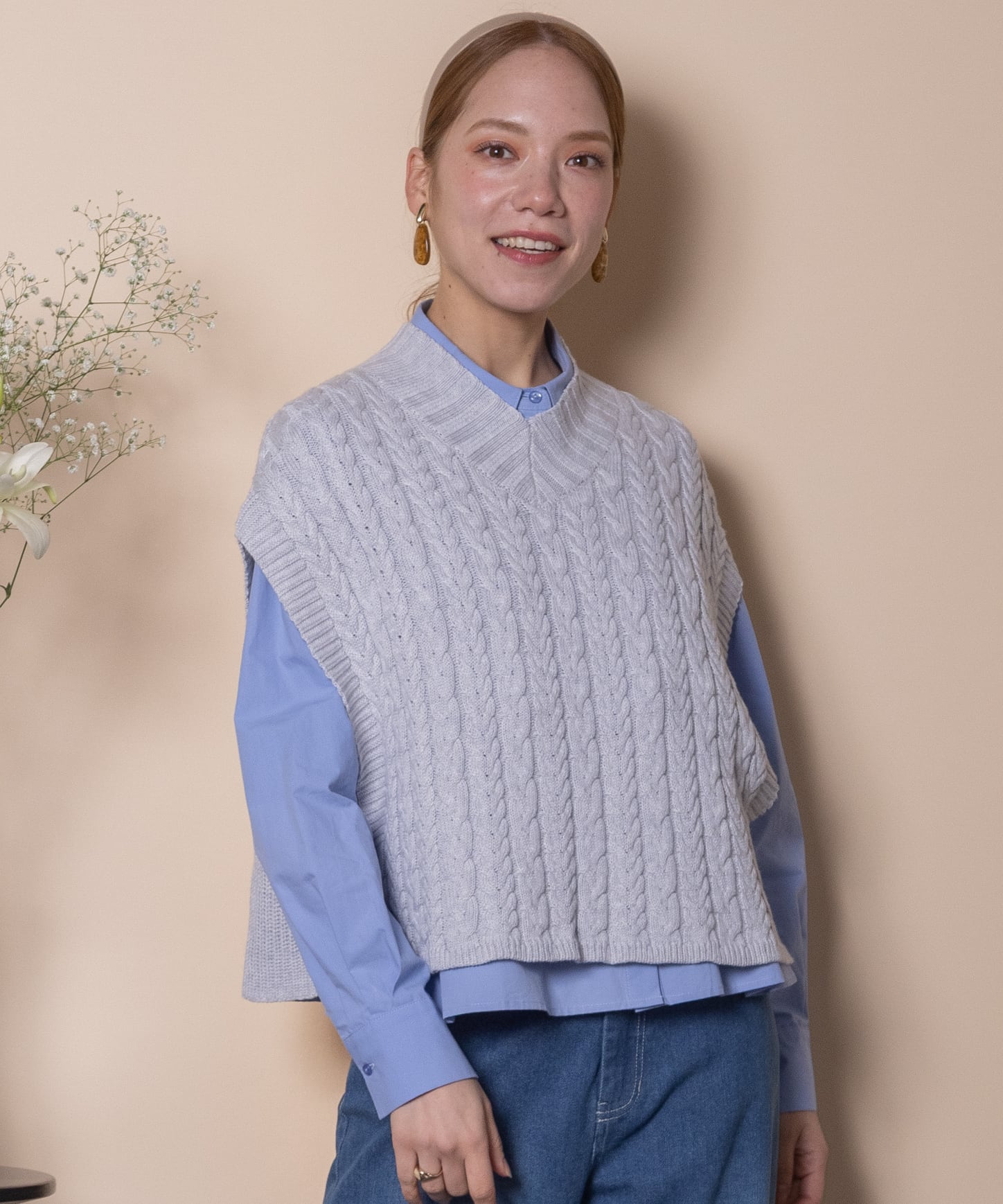 ケーブルニットベスト