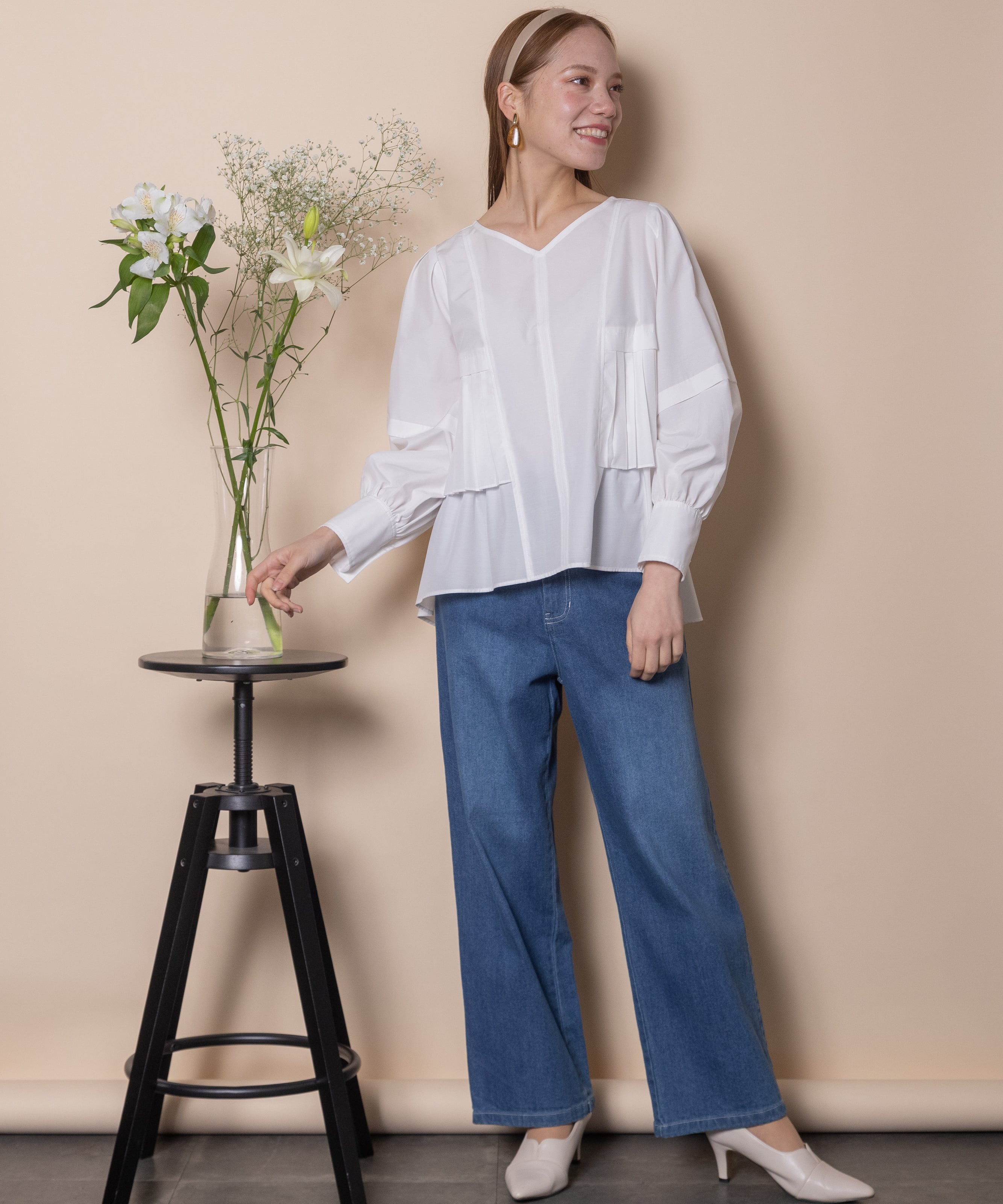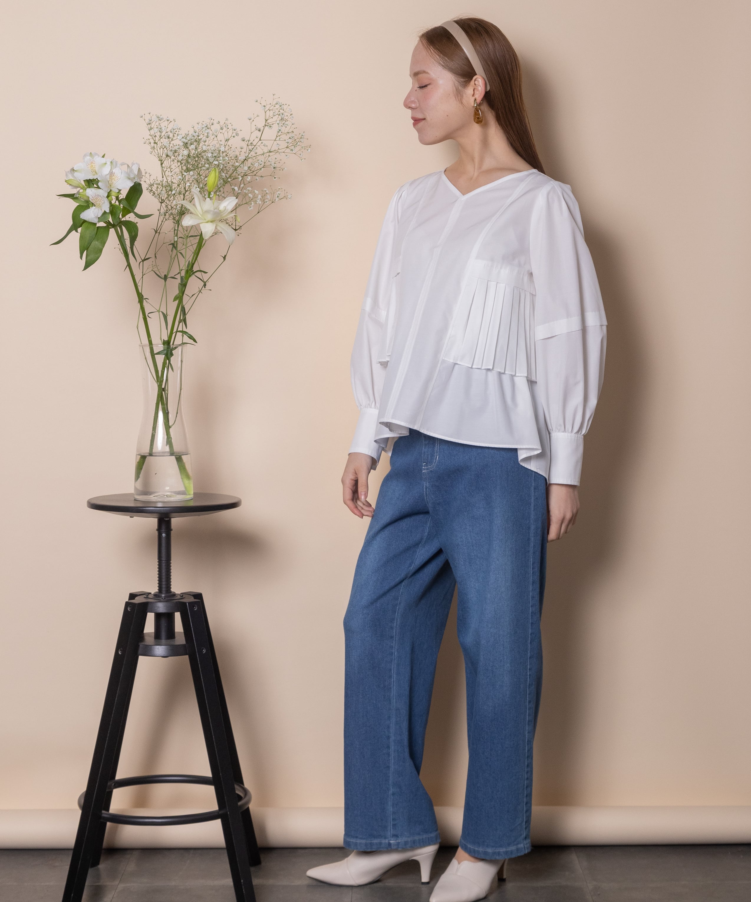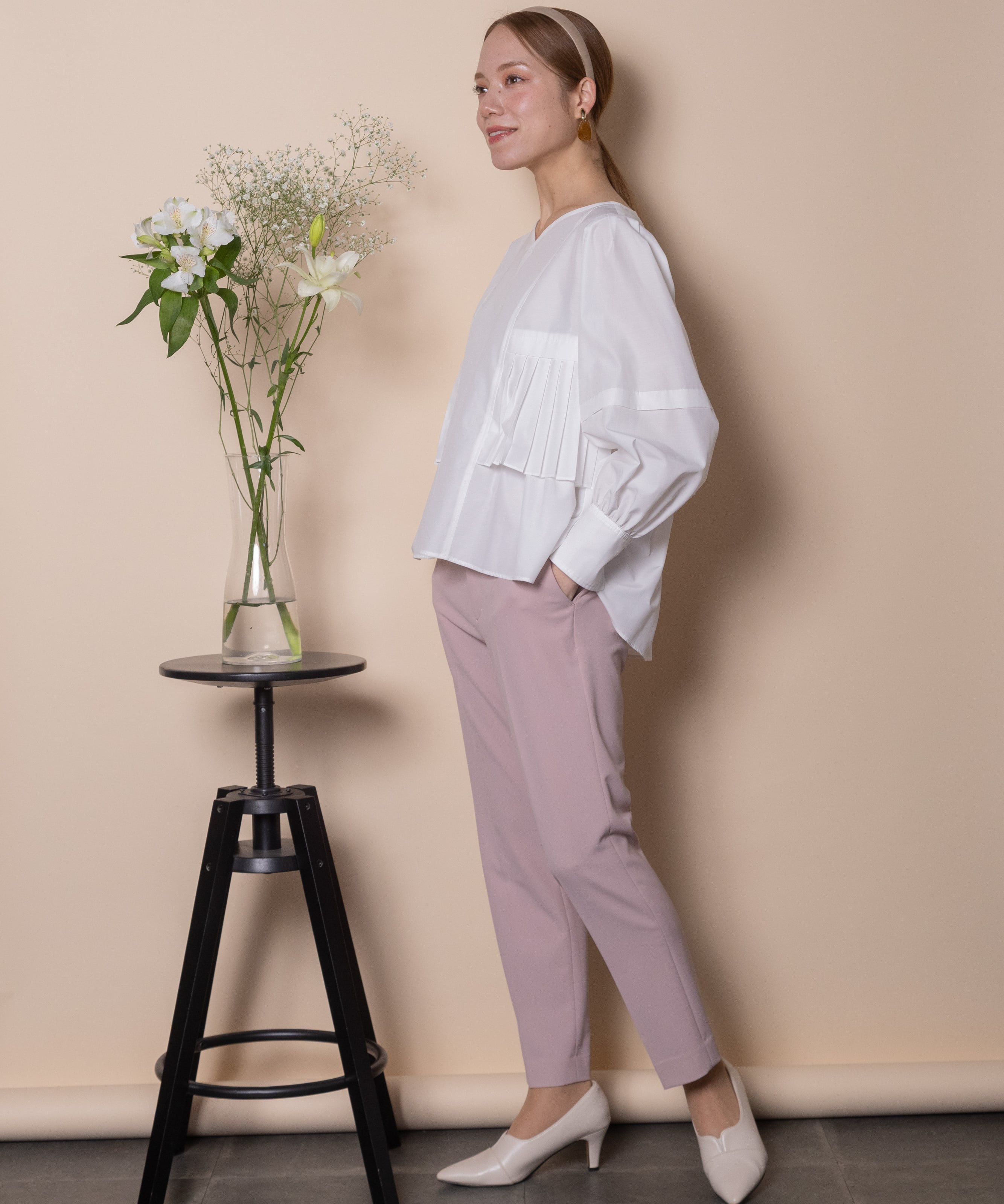 オフィスシーンからカジュアルシーンまで幅広くご着用頂けます。綺麗めパンツやスカートからデニムまで幅広くコーデ頂けるアイテム。