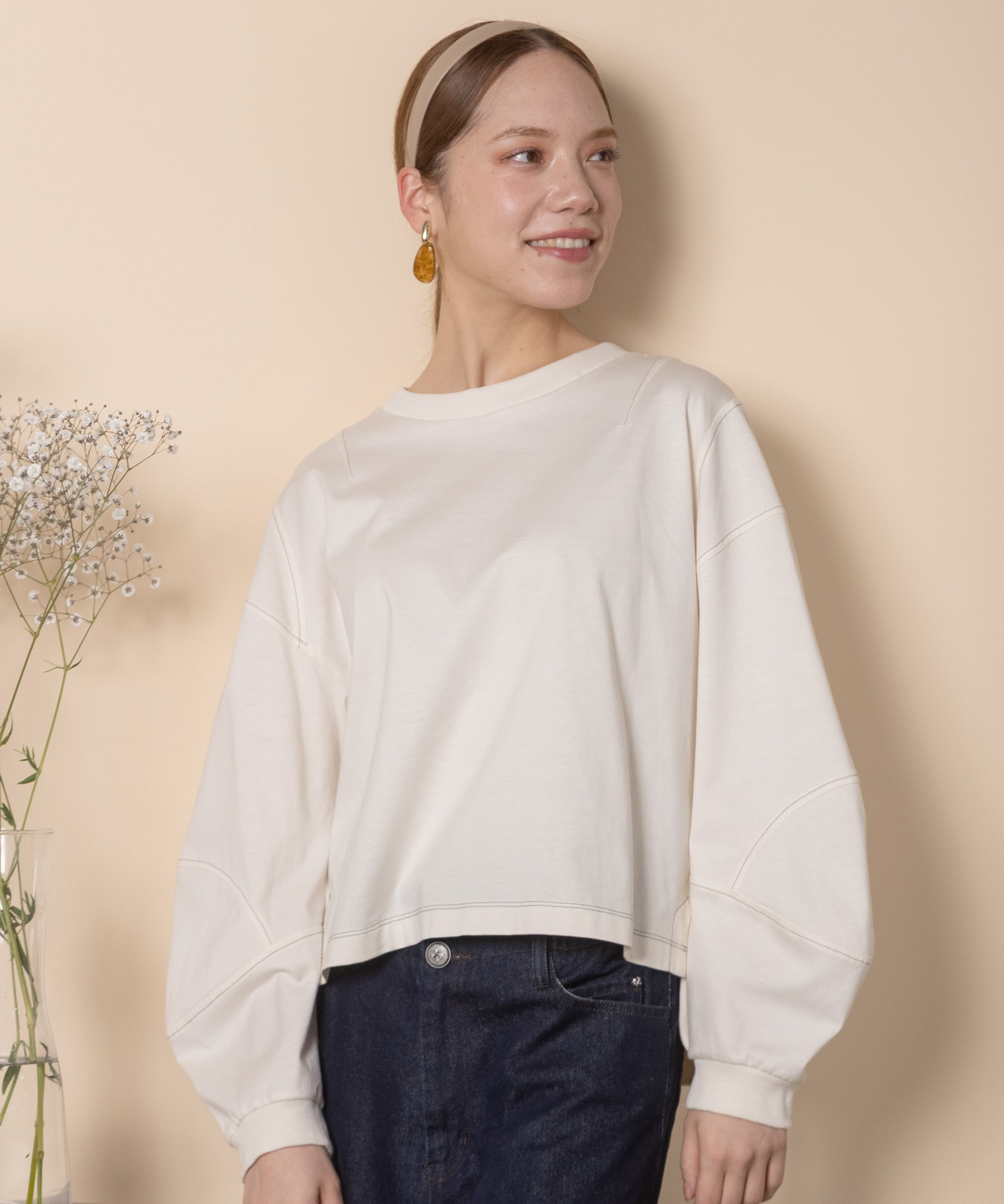 立体袖 ステッチデザインカットソー【8260002】