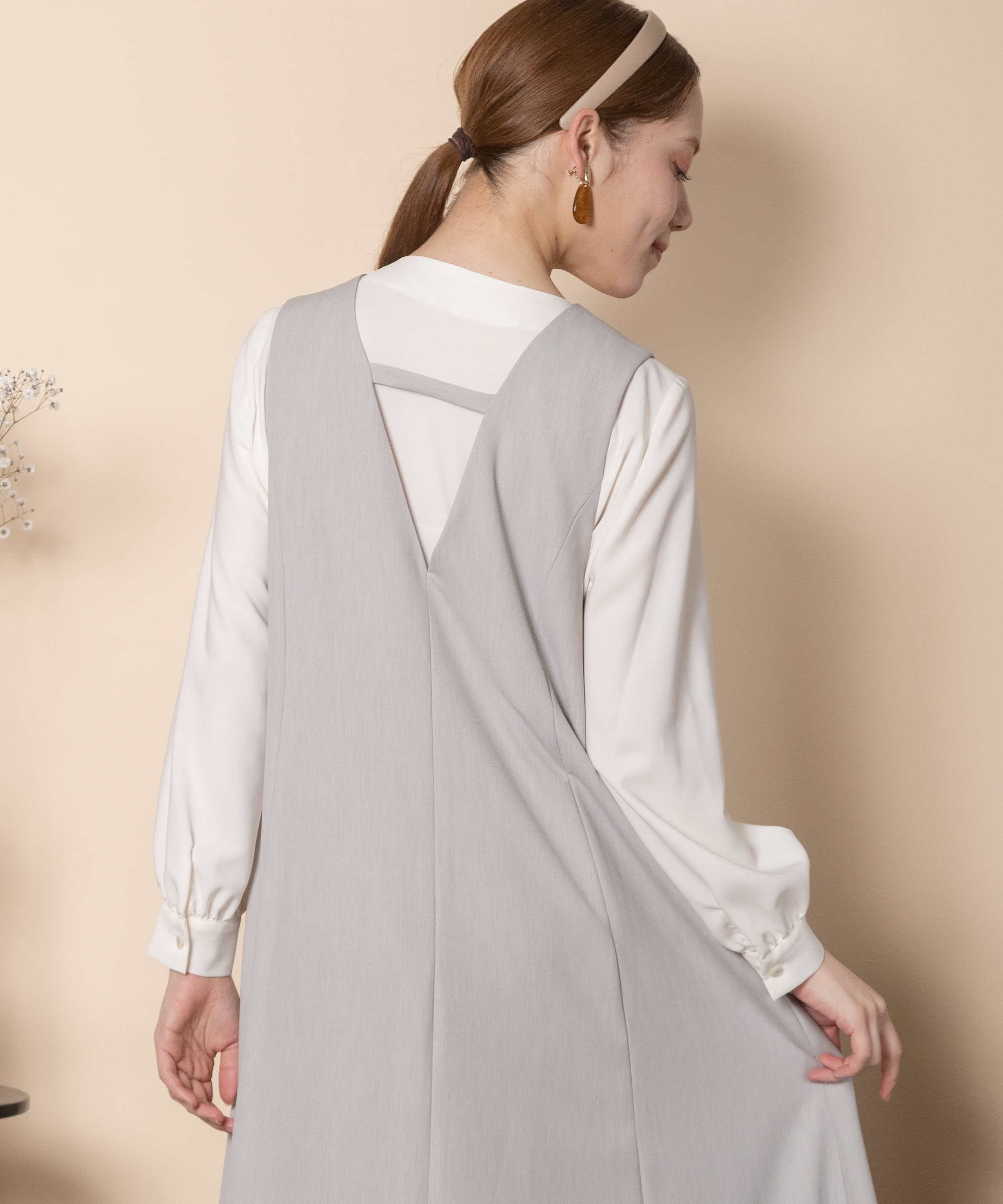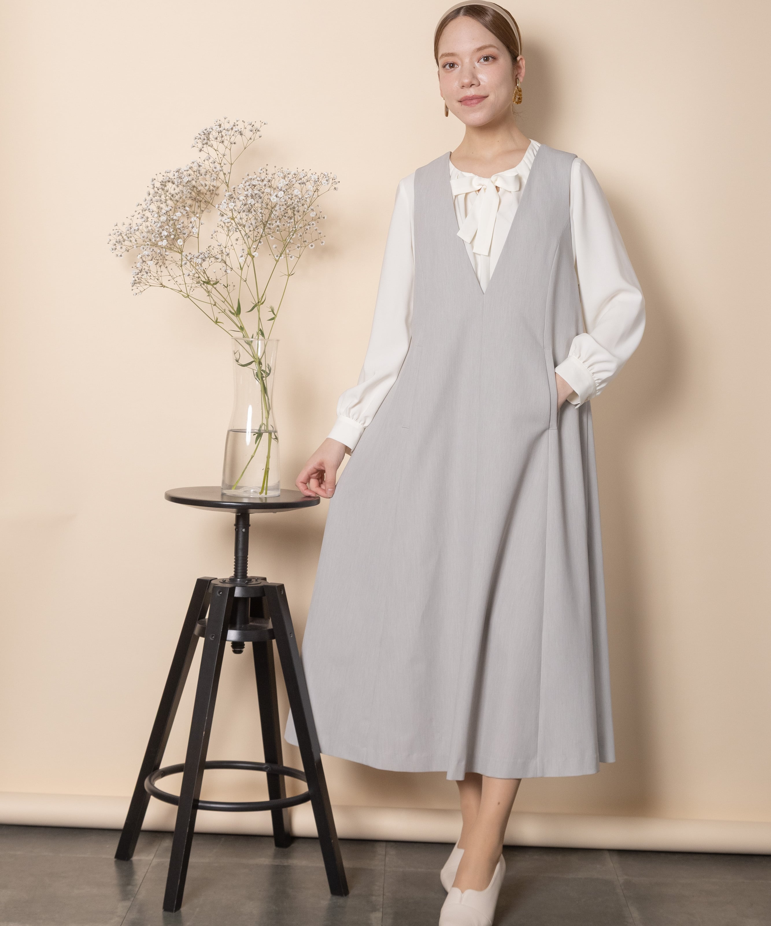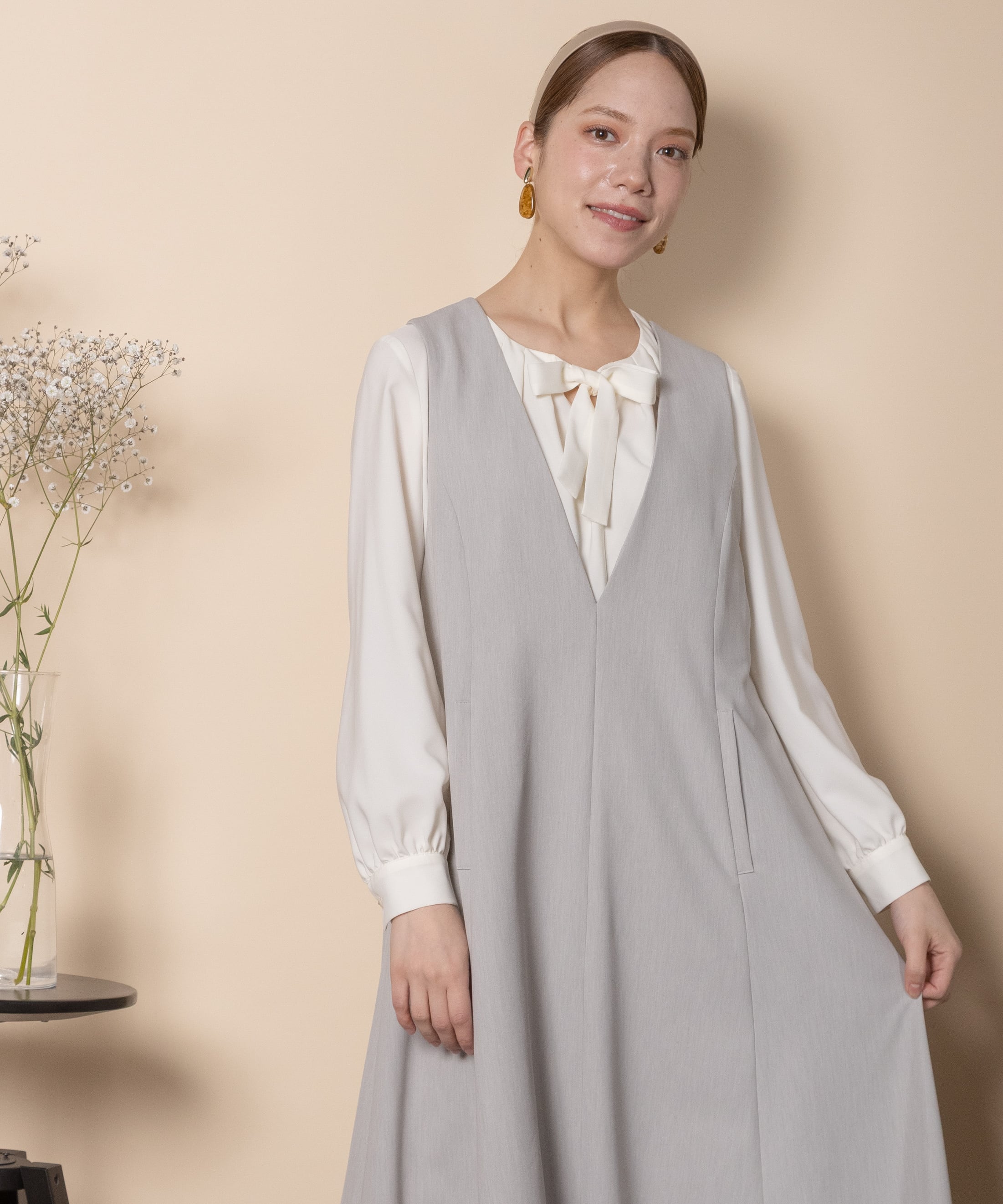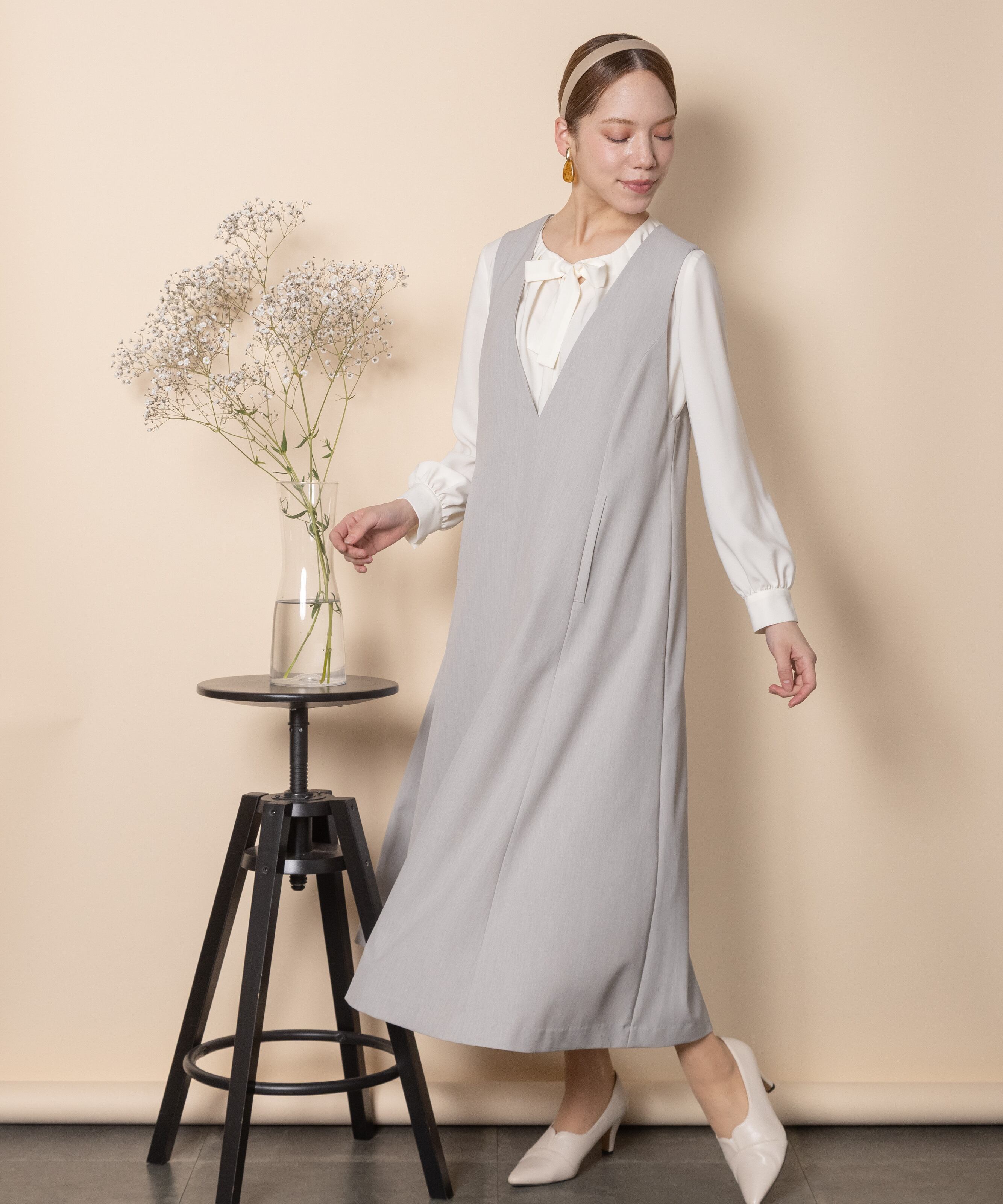 動く度に優雅に揺れるエレガントなフレアシルエット。深めのVネックでインナーとのレイヤードが映えるデザイン。両サイドにはシームポケット付きが嬉しいポイント。