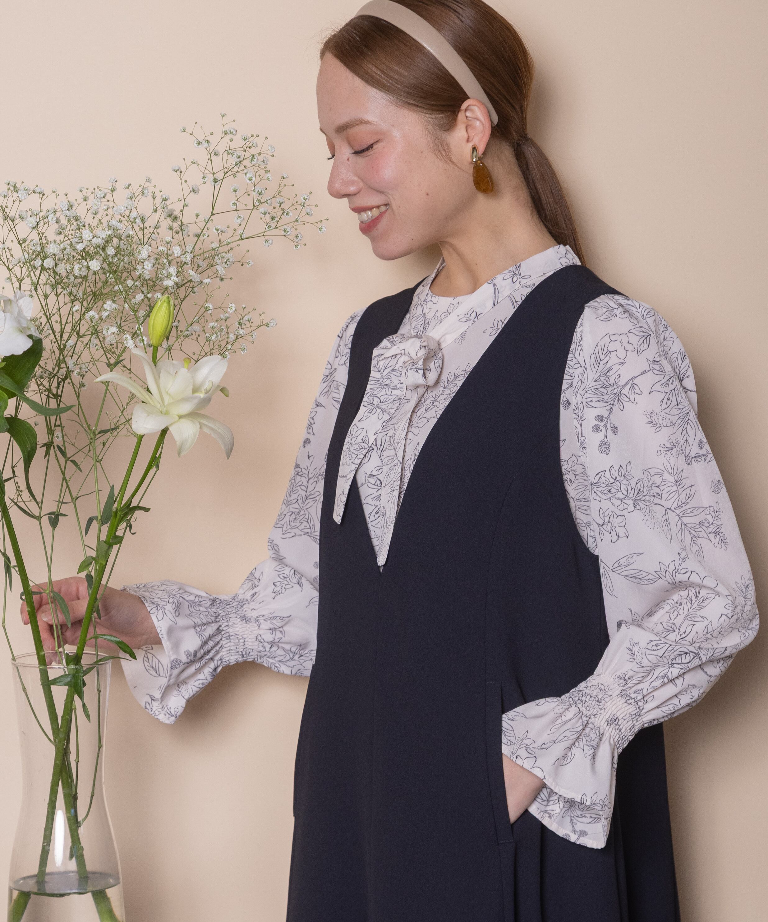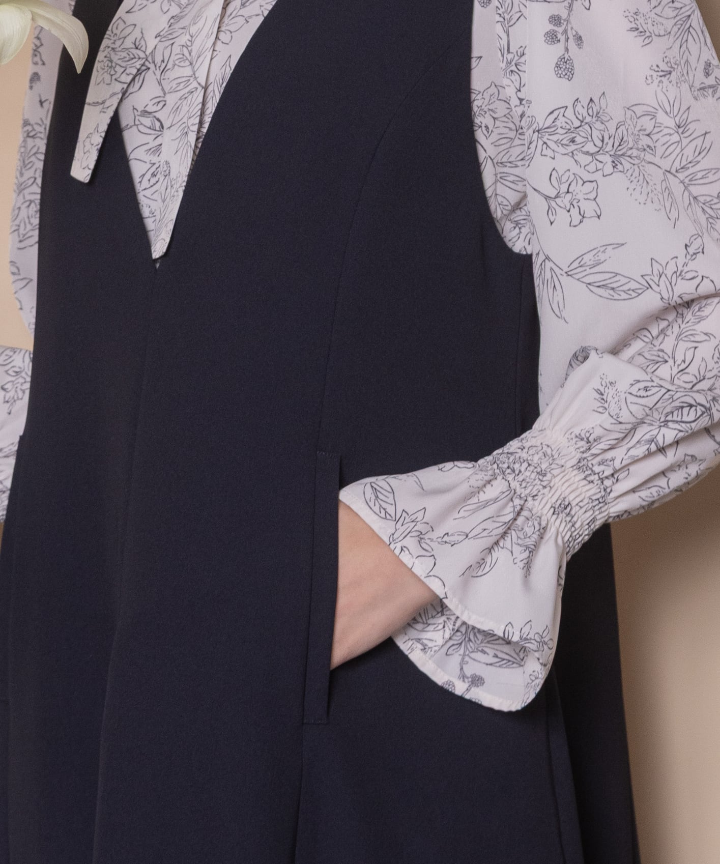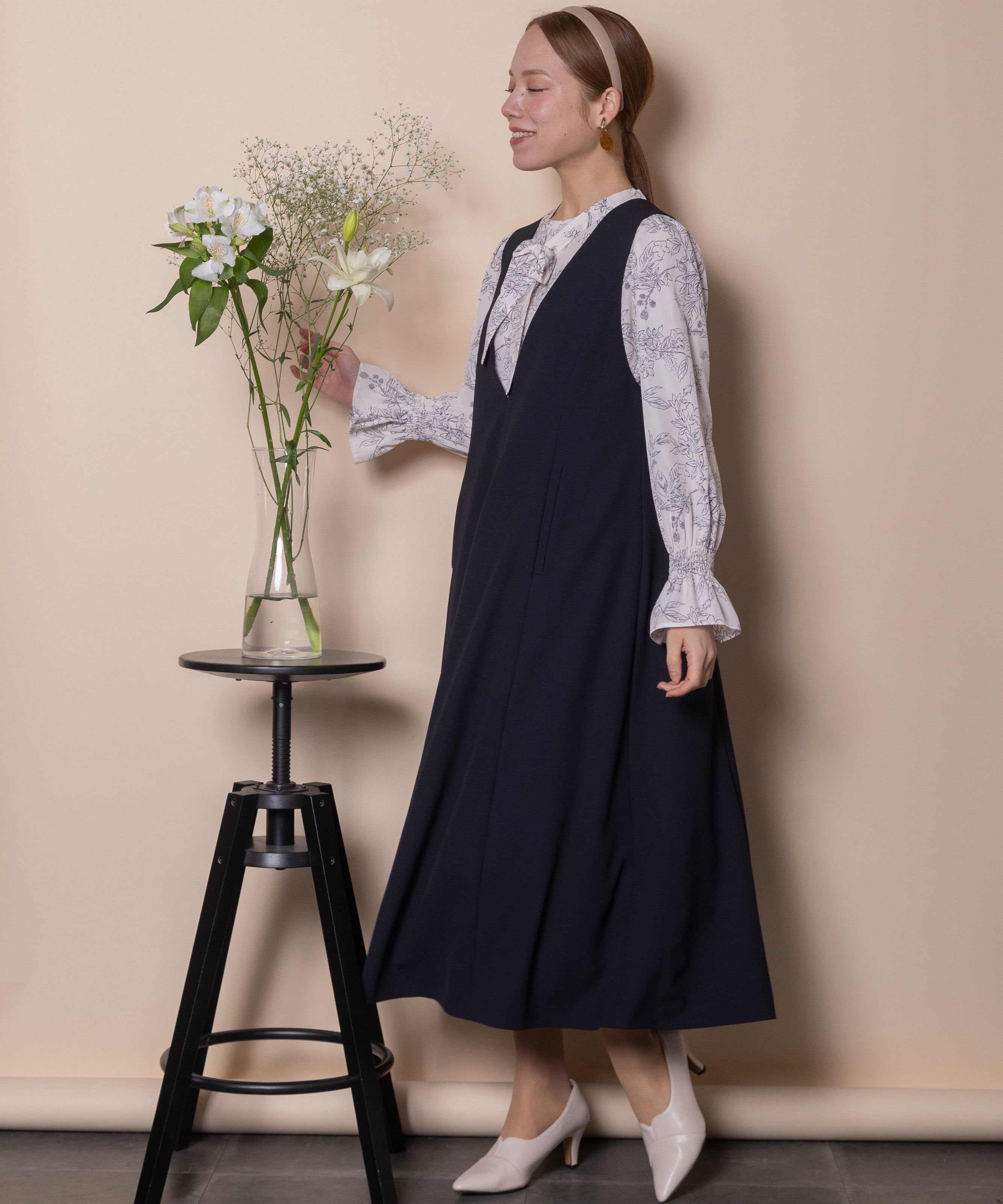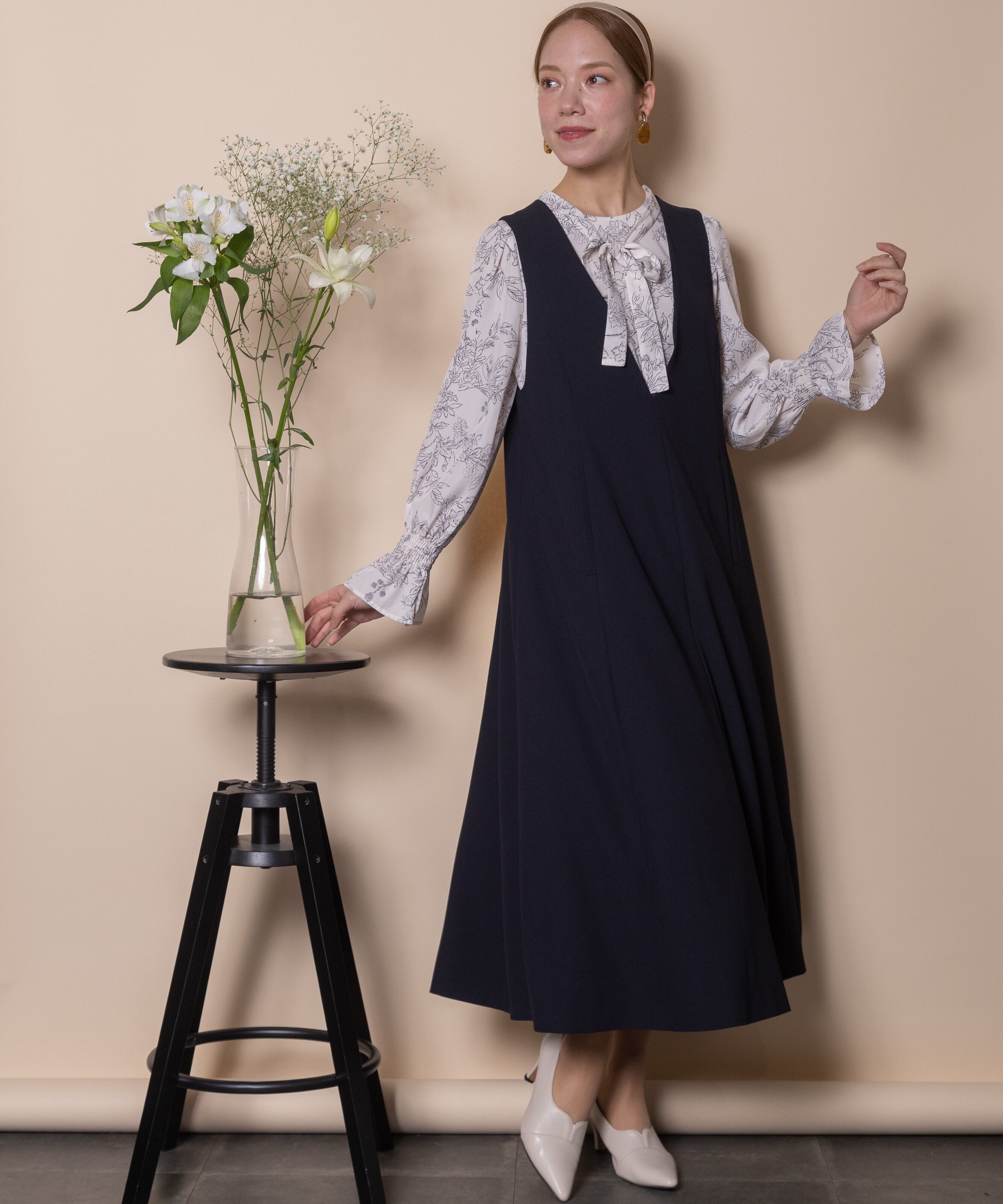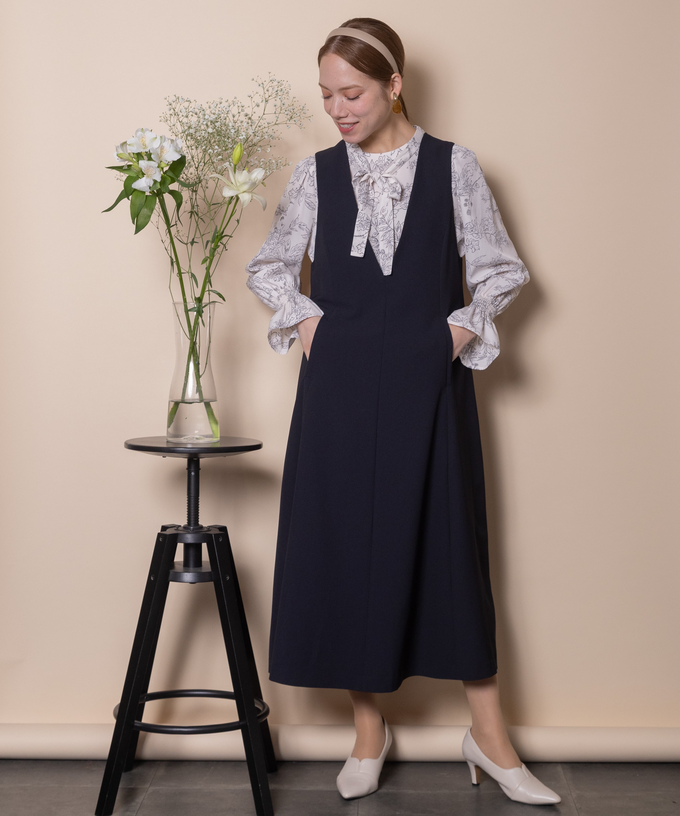 動く度に優雅に揺れるエレガントなフレアシルエット。深めのVネックでインナーとのレイヤードが映えるデザイン。両サイドにはシームポケット付きが嬉しいポイント。