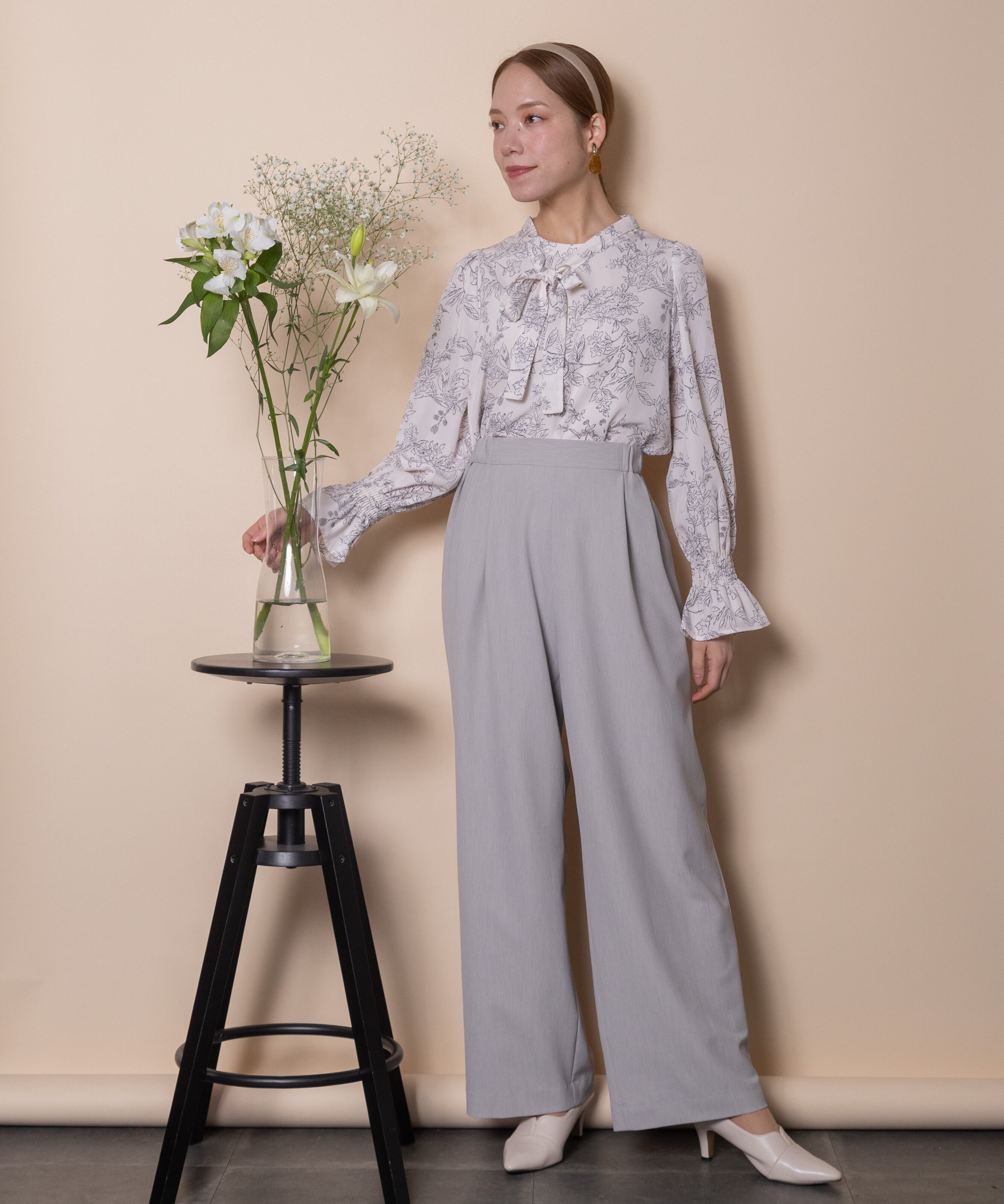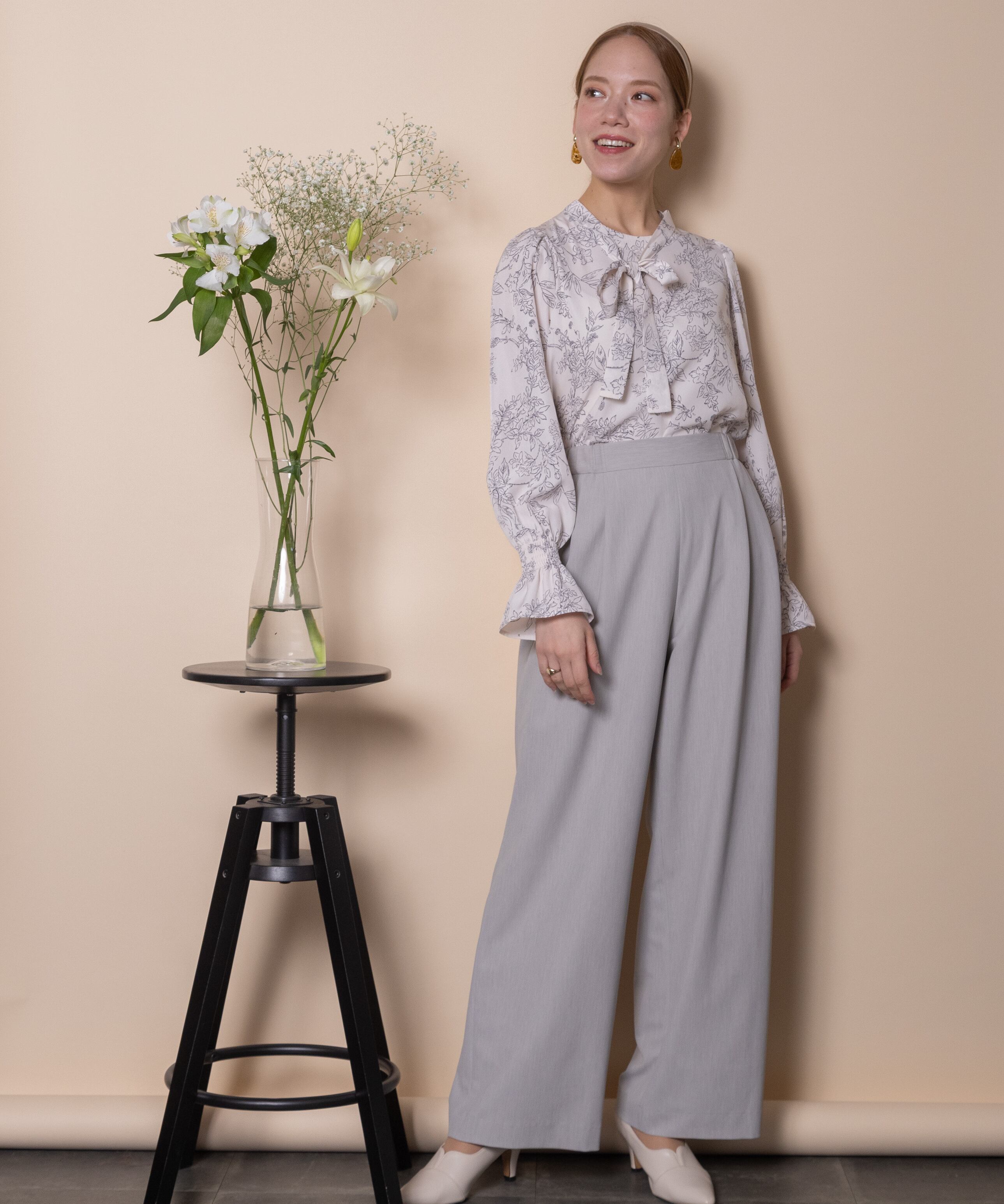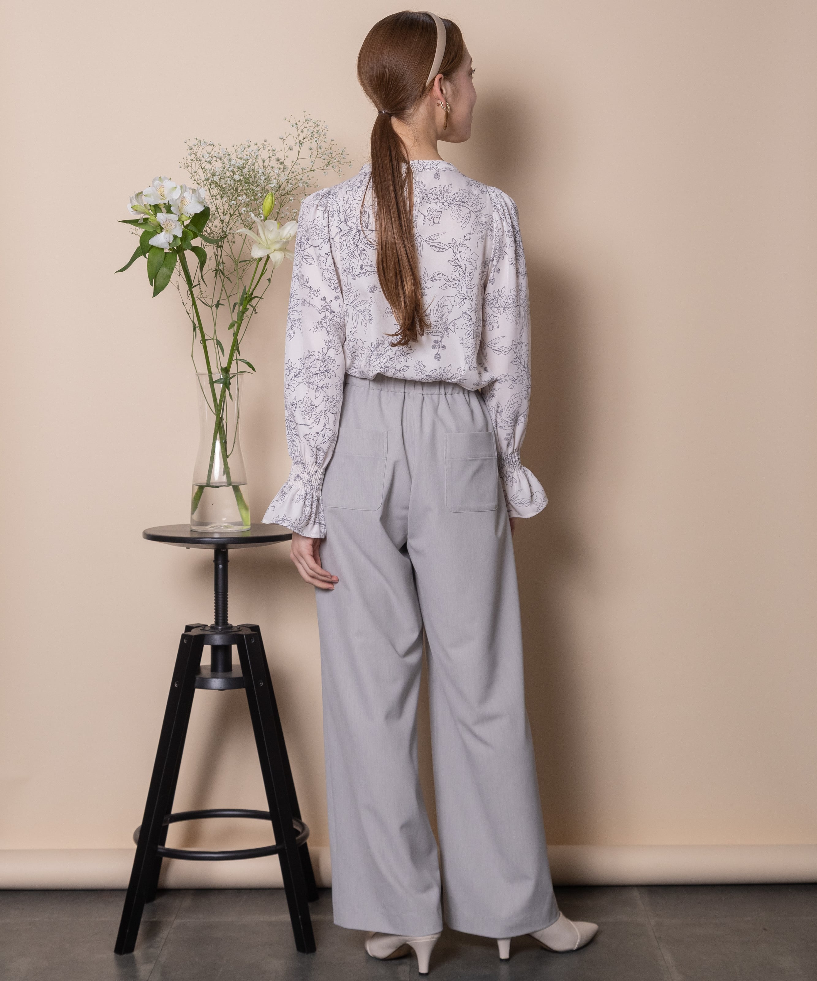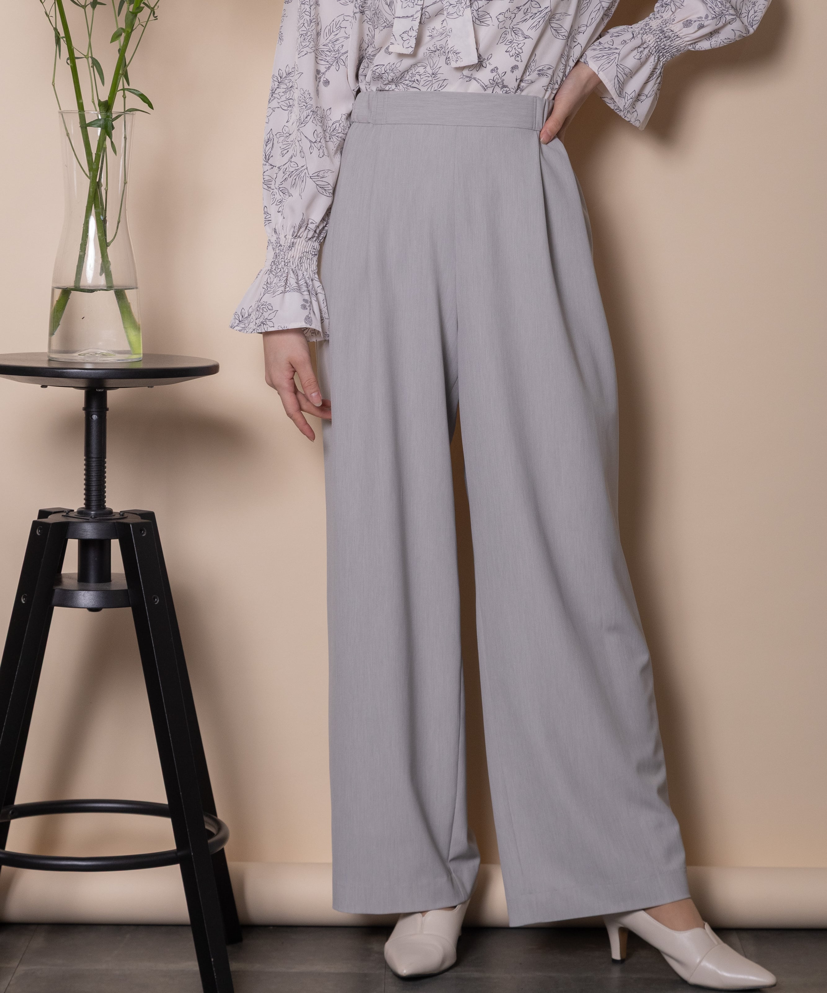 キレイめボトムの定番ワイドイージーパンツ。一枚あると重宝するキレイめのワイドイージーパンツ。ウエストはバックゴム仕様でリラックス感のあるワイドフレアシルエット。マニッシュにクールに決まります。