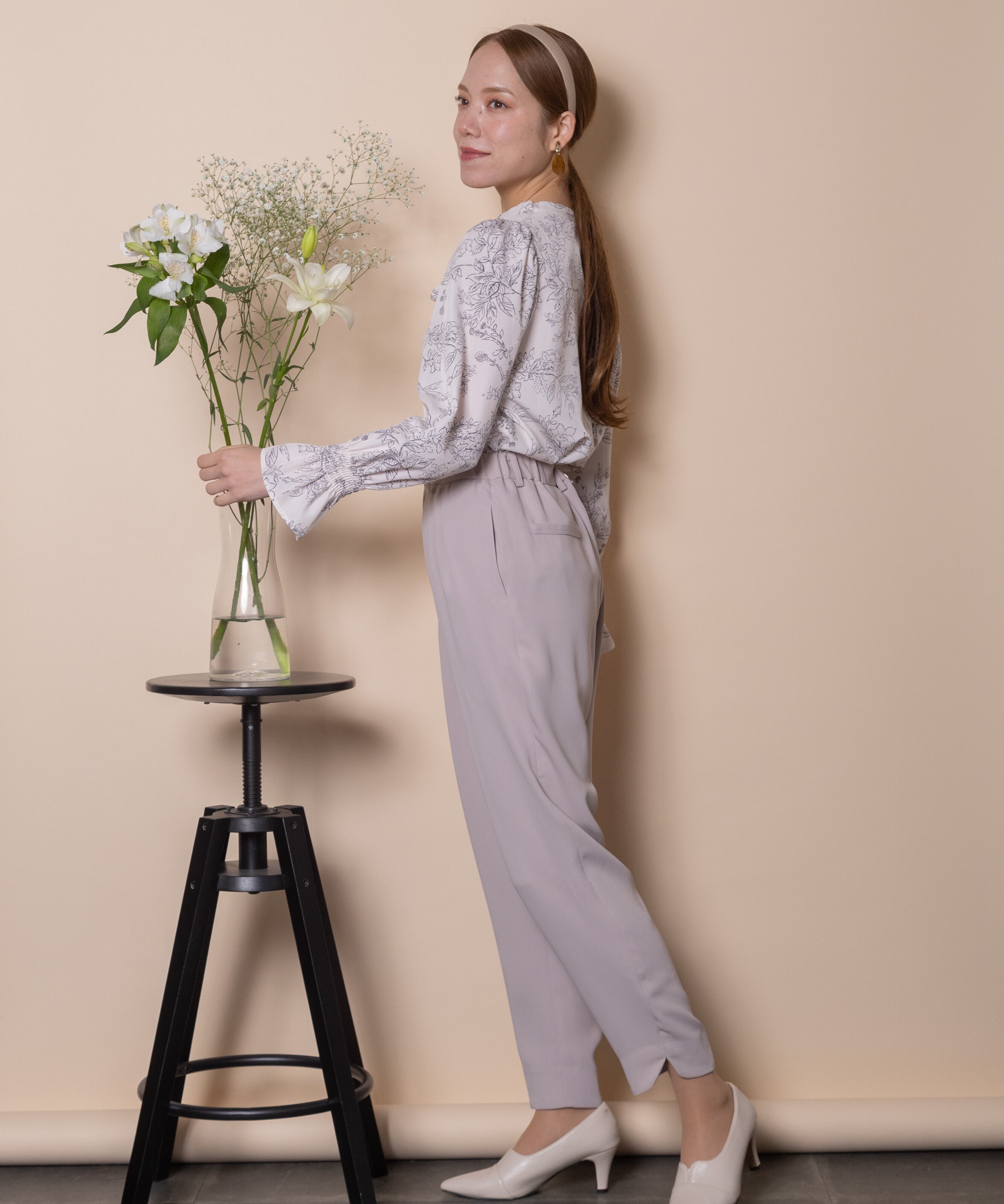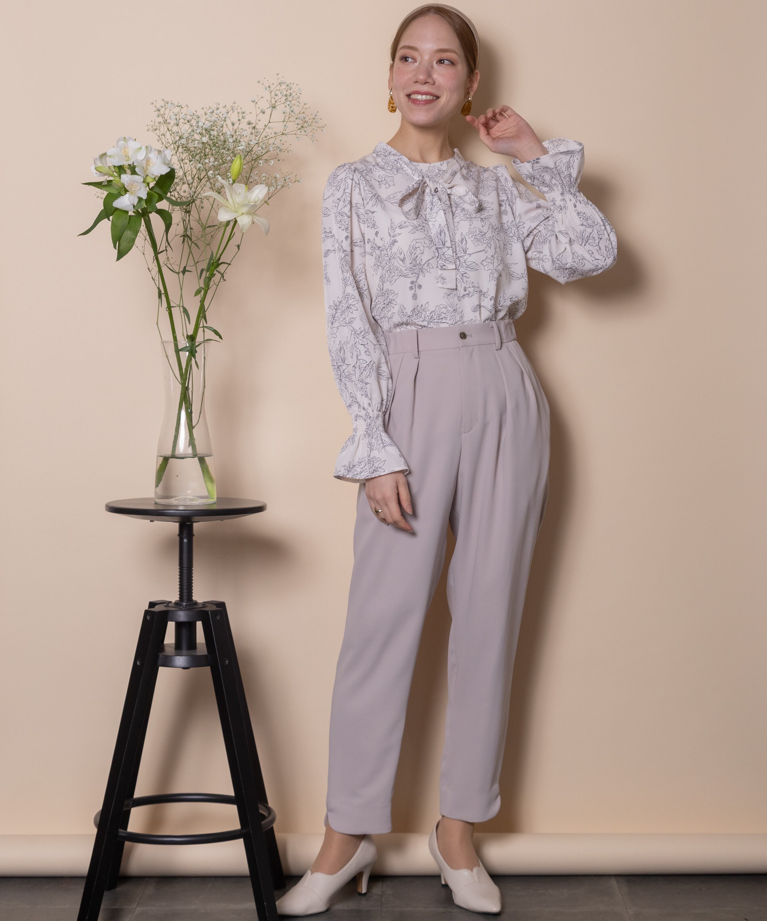 オフィスシーンやセレモニーシーンなどきちんとしたシーンで大活躍するパンツ。キレイめブラウスとの相性抜群です。