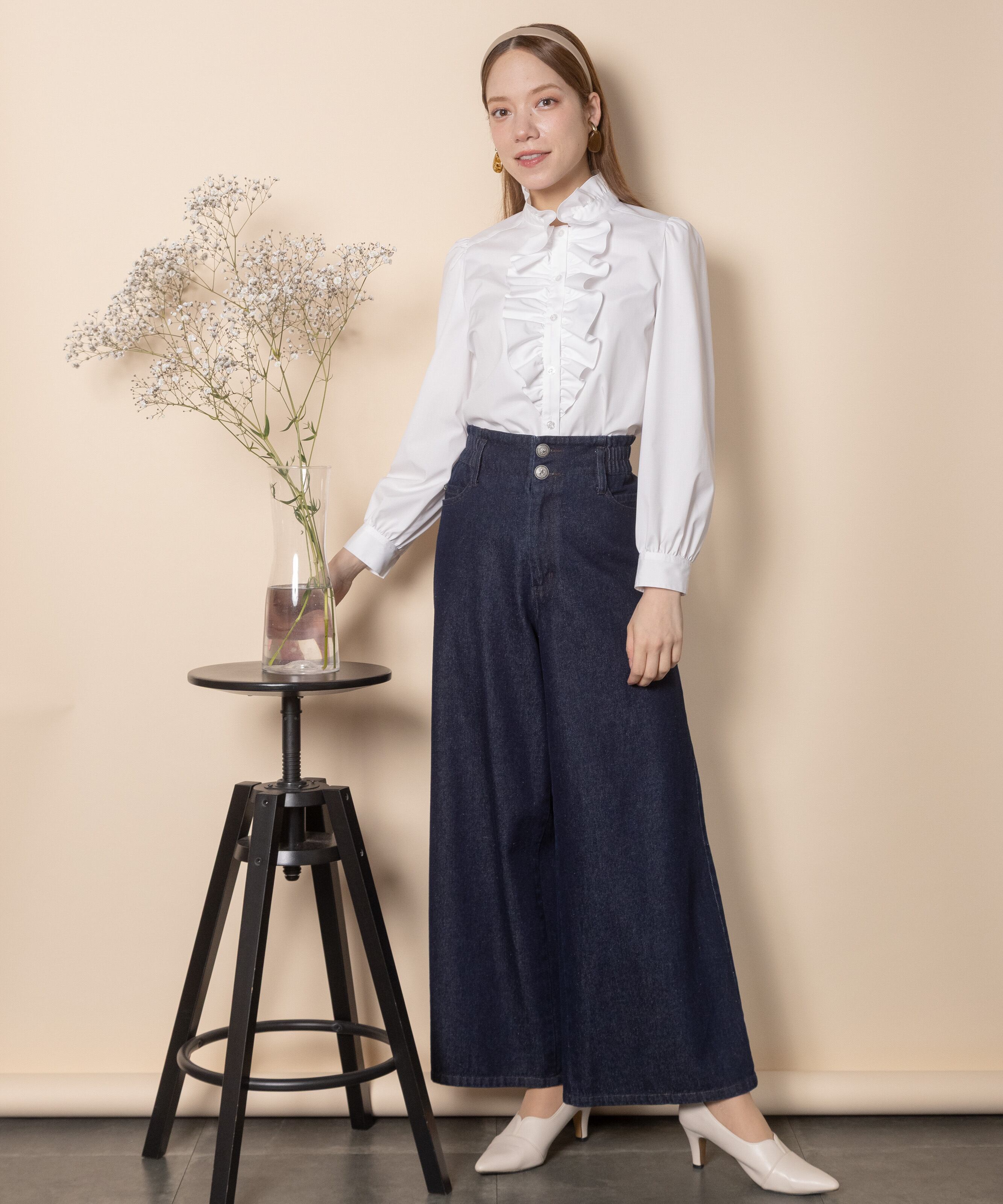 ゴージャスなフリルが魅力のコットンシャツブラウス