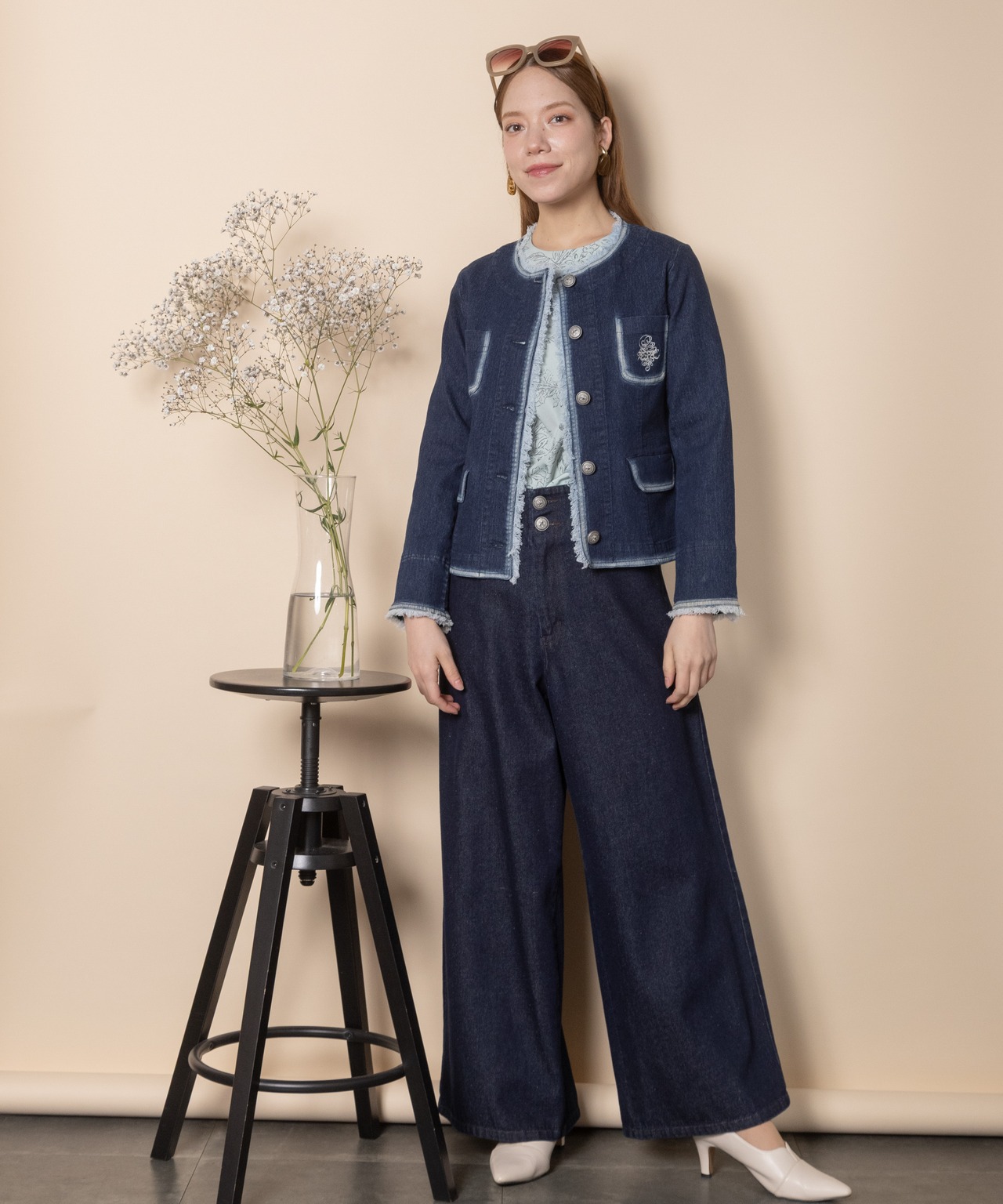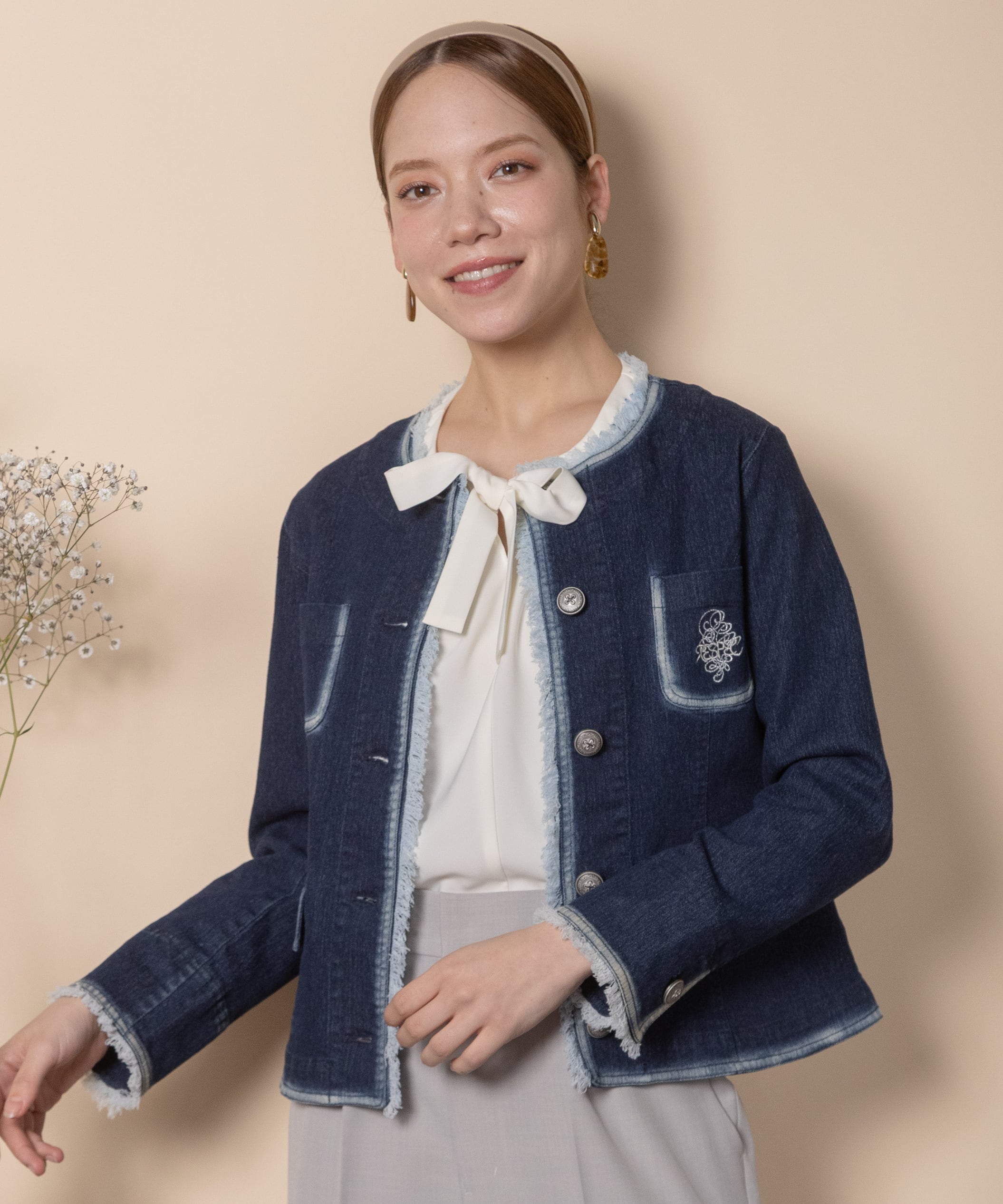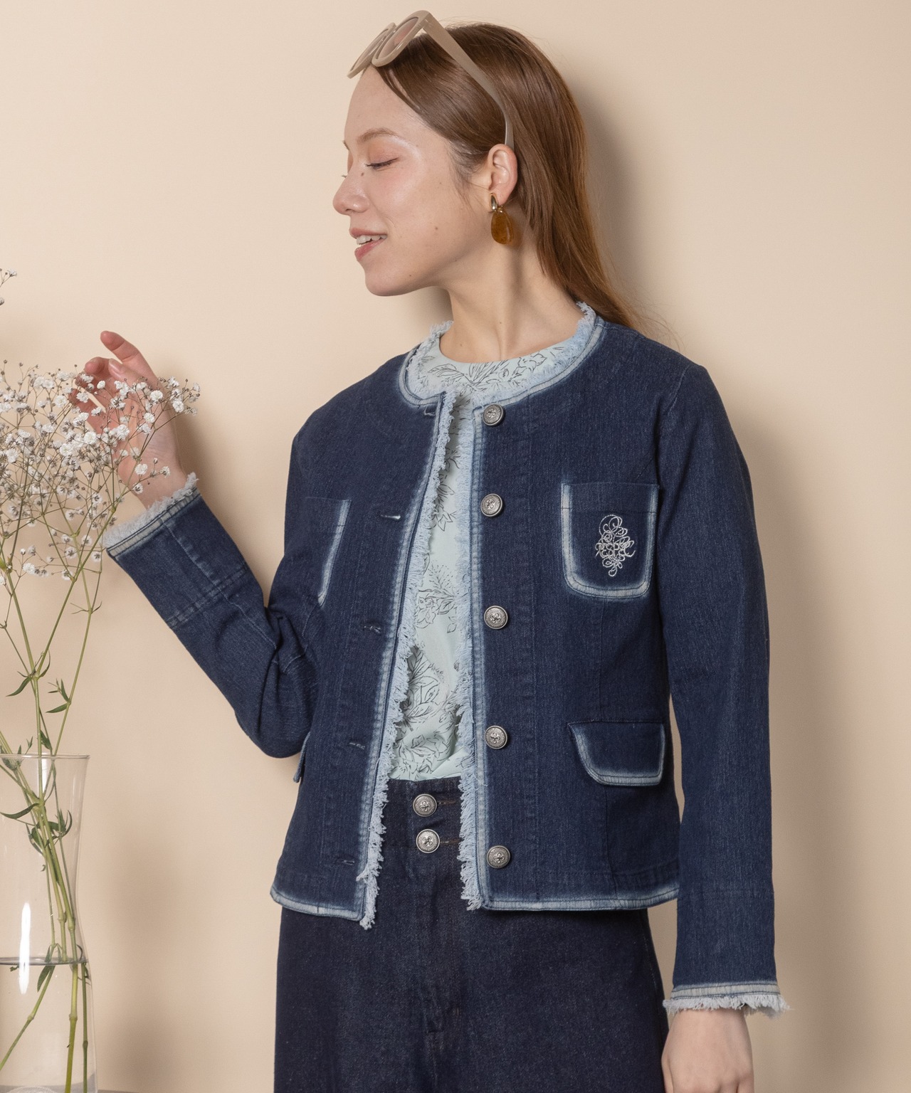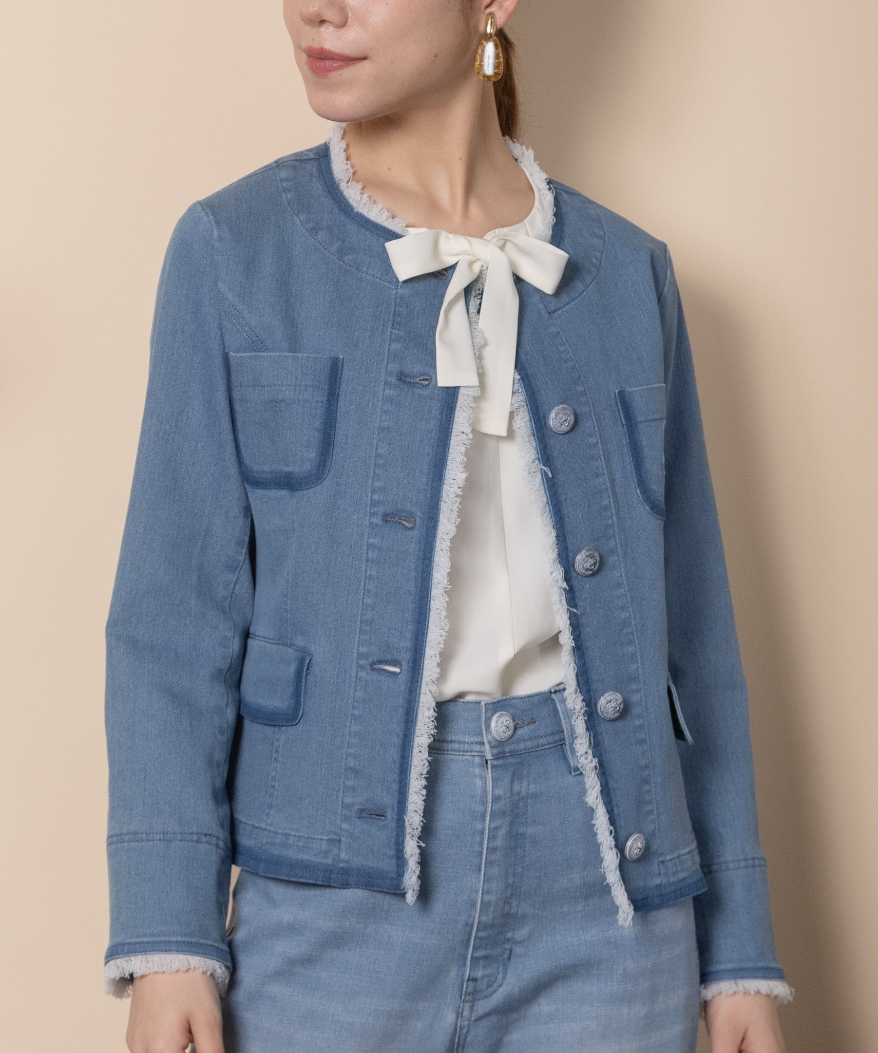 ノーカラーデニムジャケット【8263001】