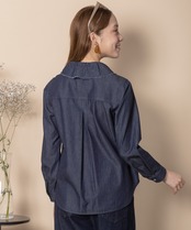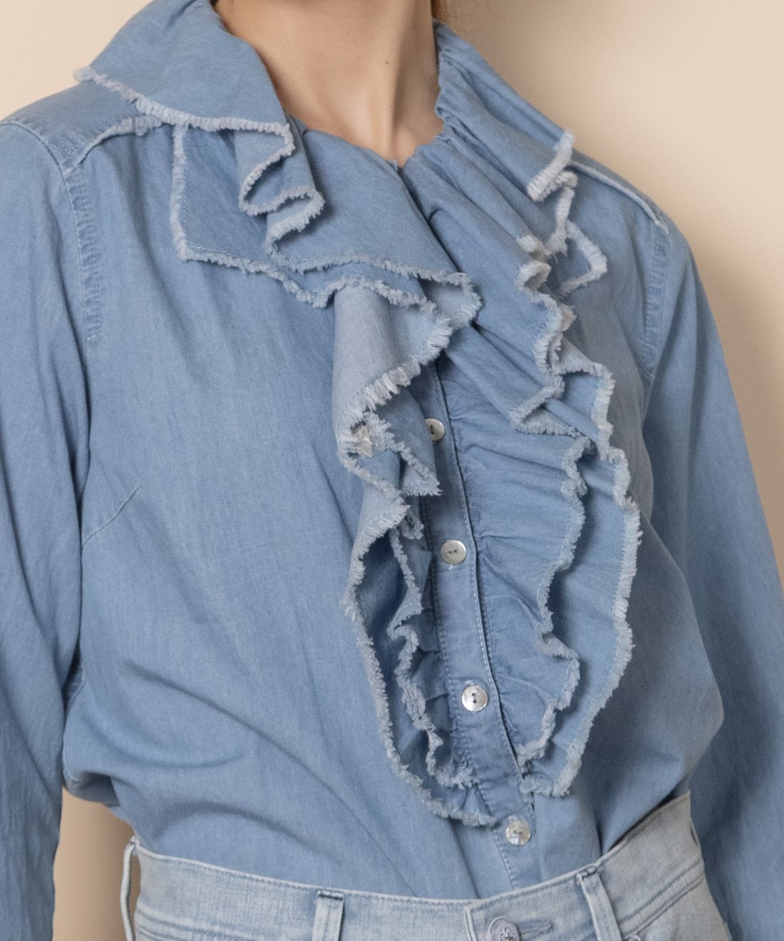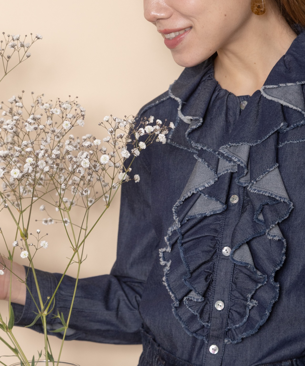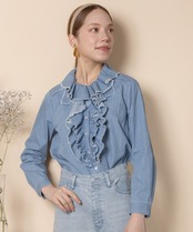 ヴィンテージ風ラッフルフリルのデニムシャツ