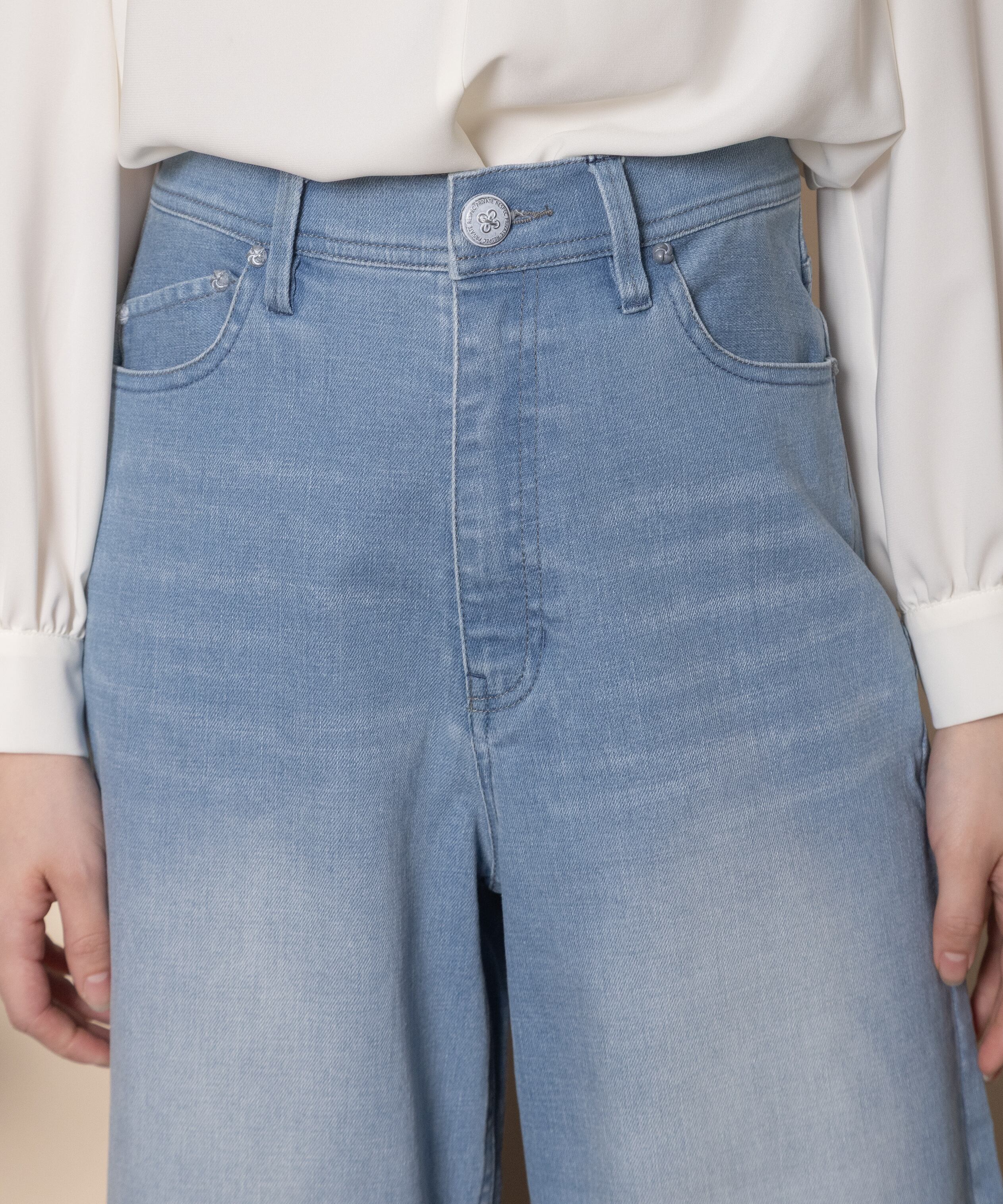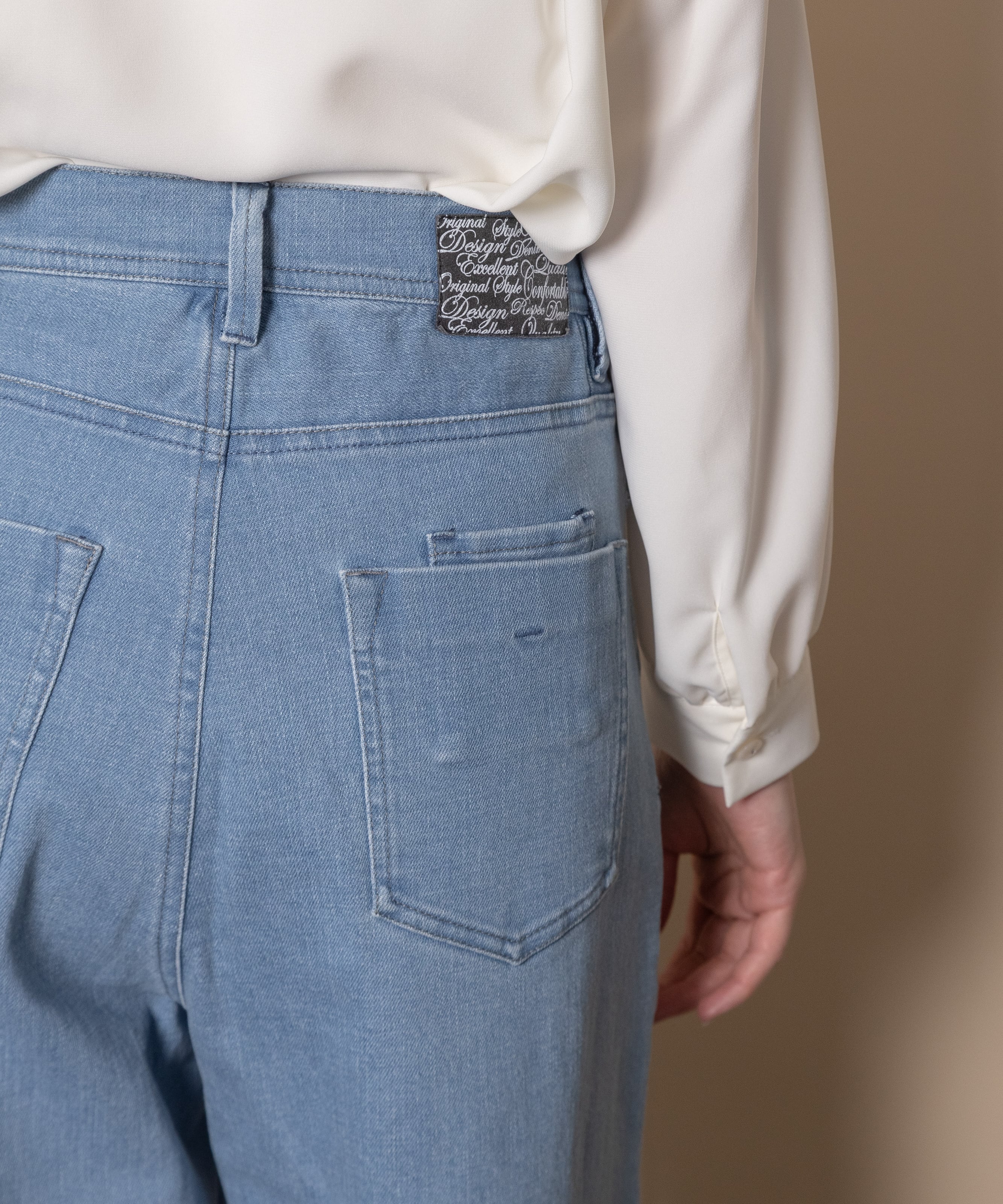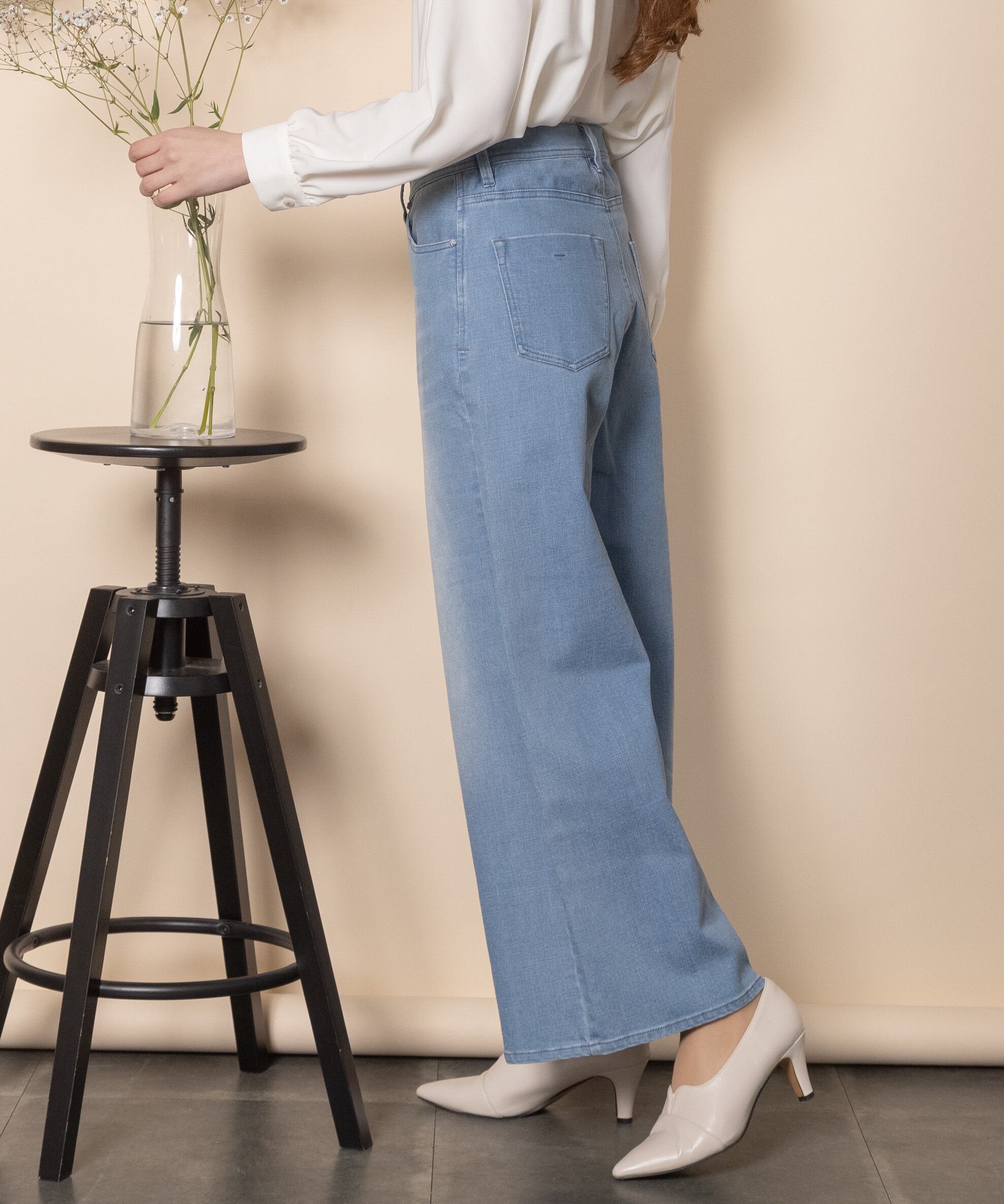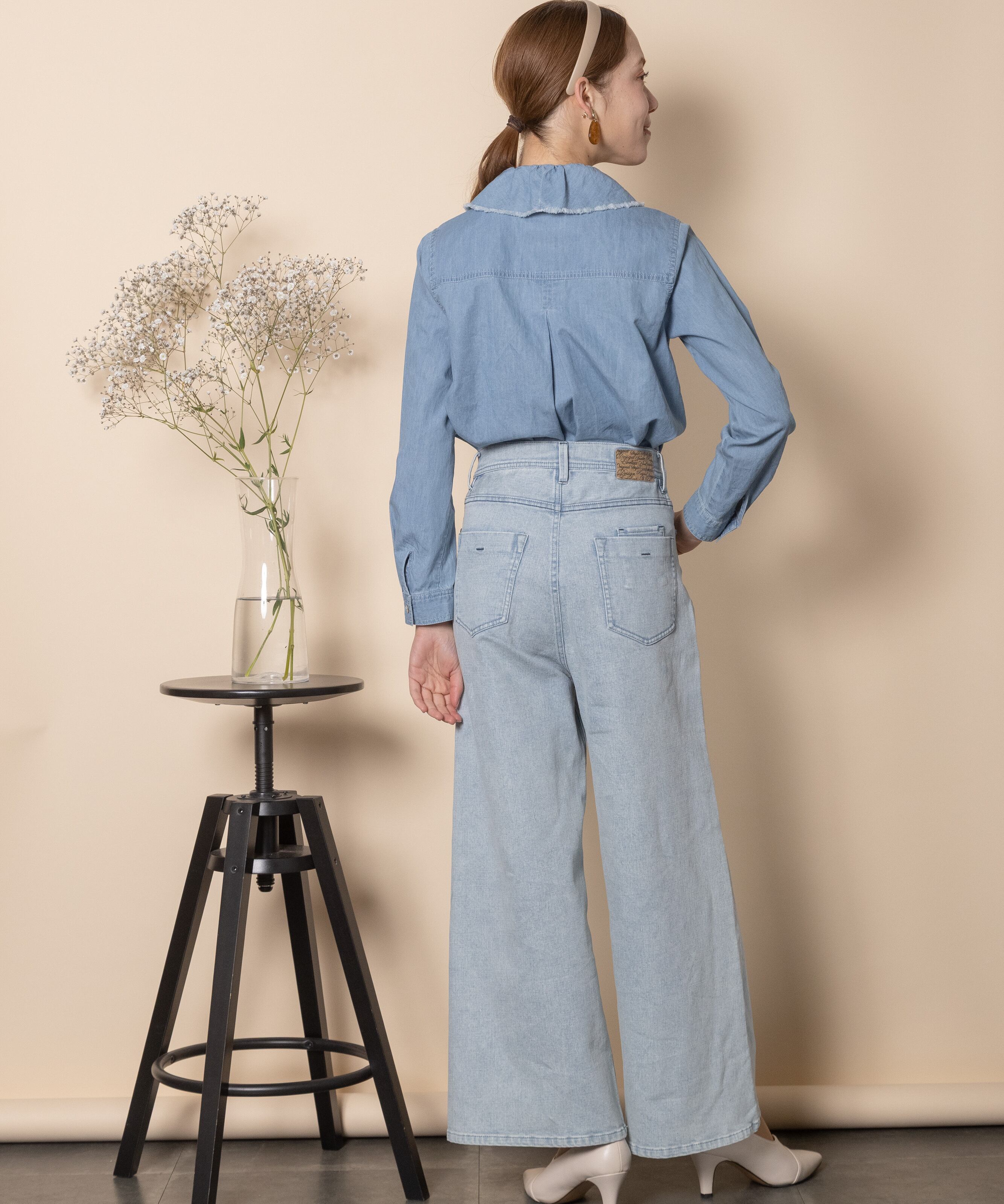 9オンスの定番ワイドフレアシルエット。通常のウエスト位置、程よい太さのワイドストレートタイプで脚長効果を叶えるデニムパンツ。