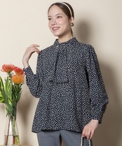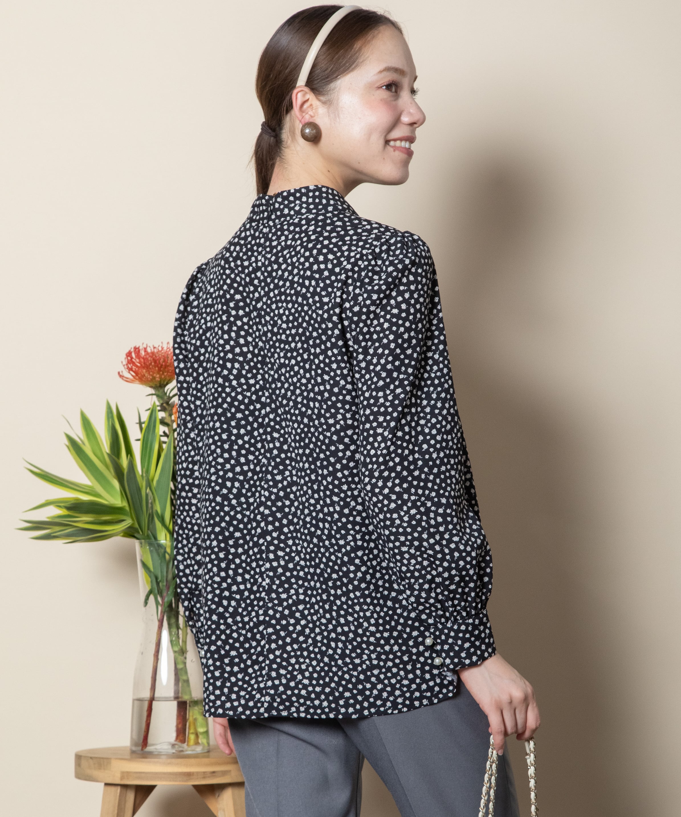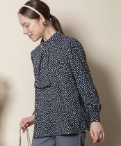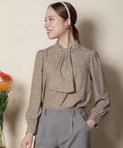 パールピン付き 小花PT ボウタイブラウス【5654601】