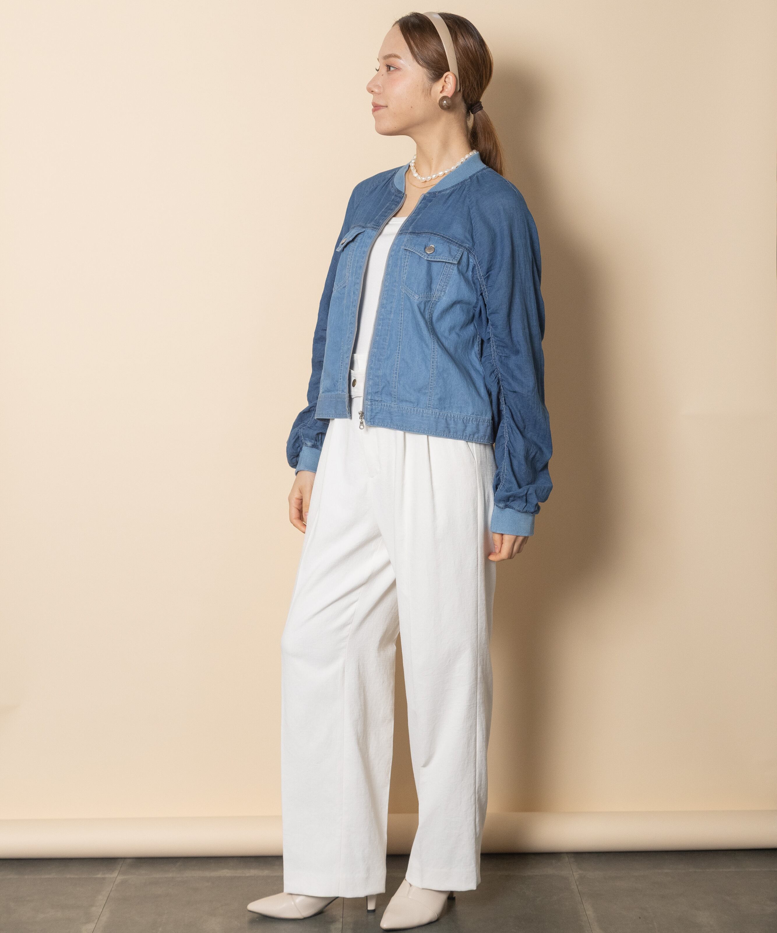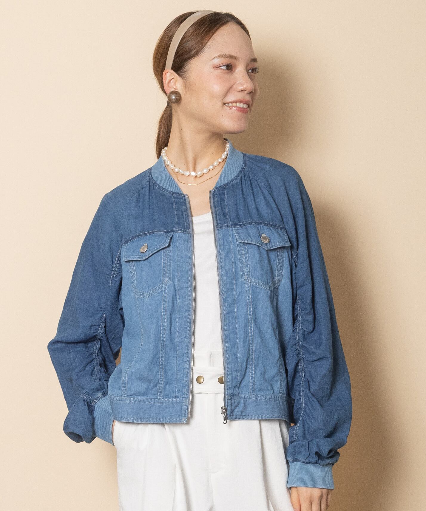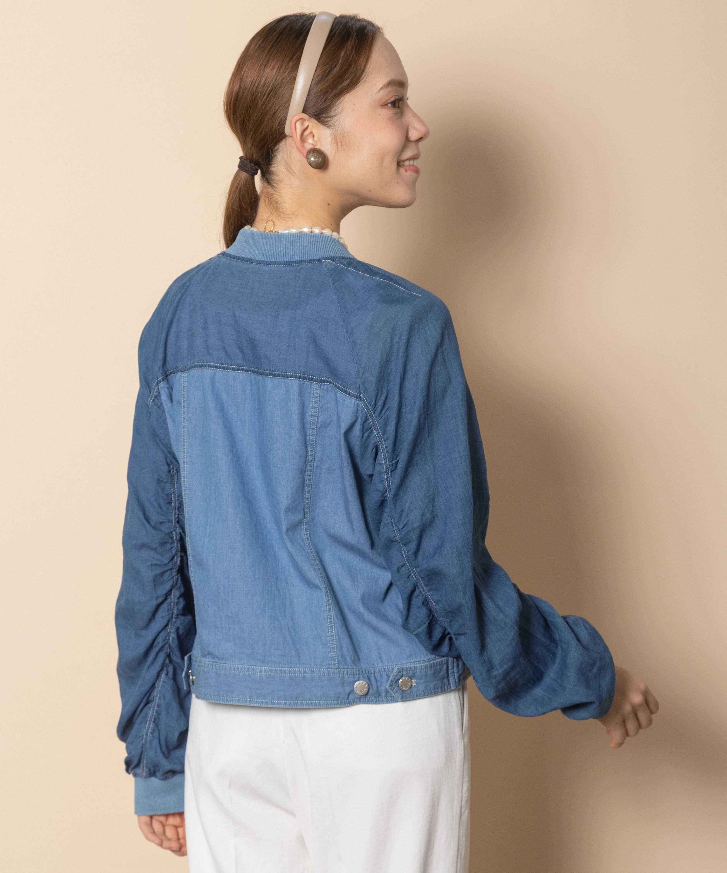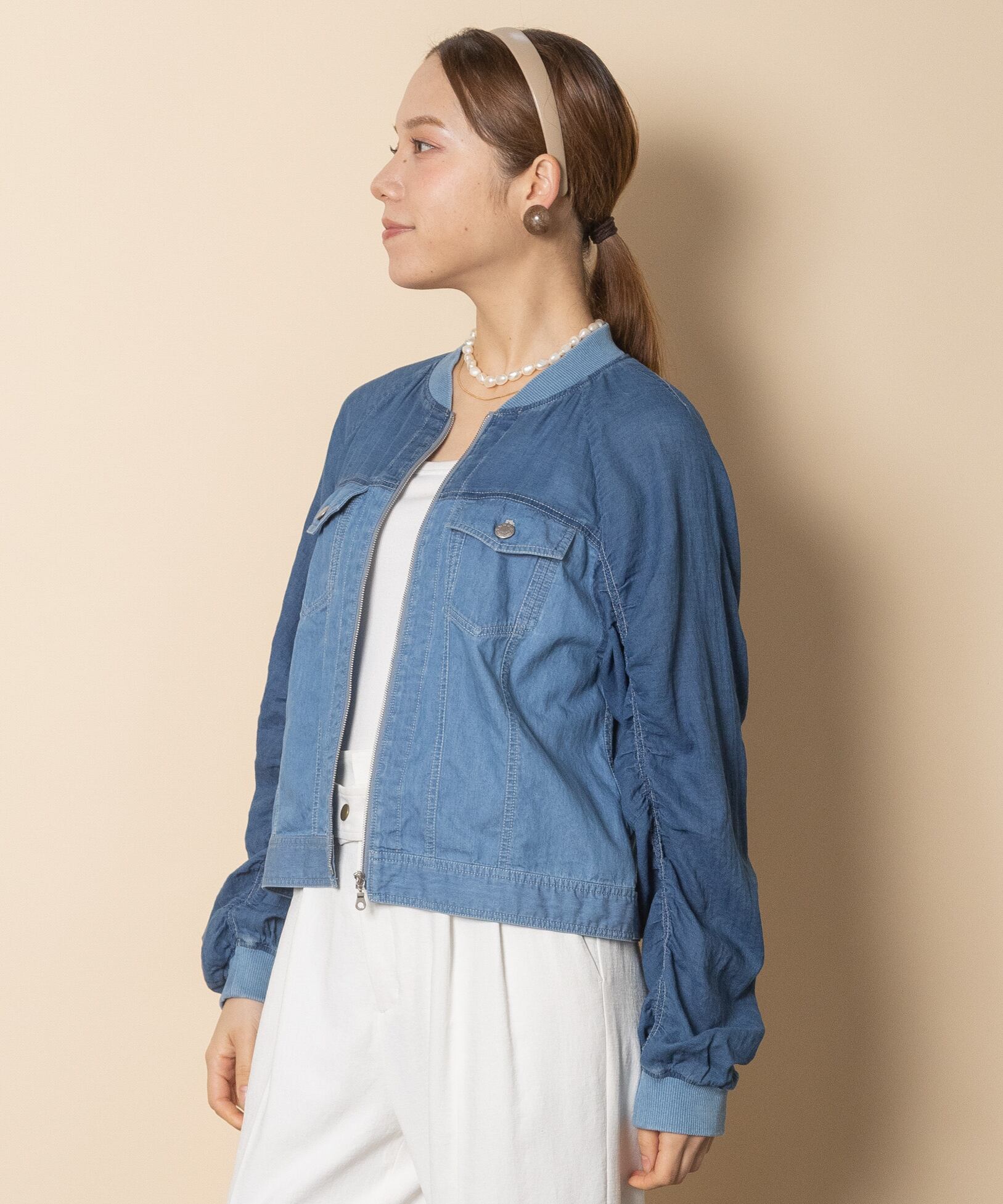 身頃は薄手の軽量デニムと袖はシアーデニムのコンビ。襟元と袖口はリブ仕様。