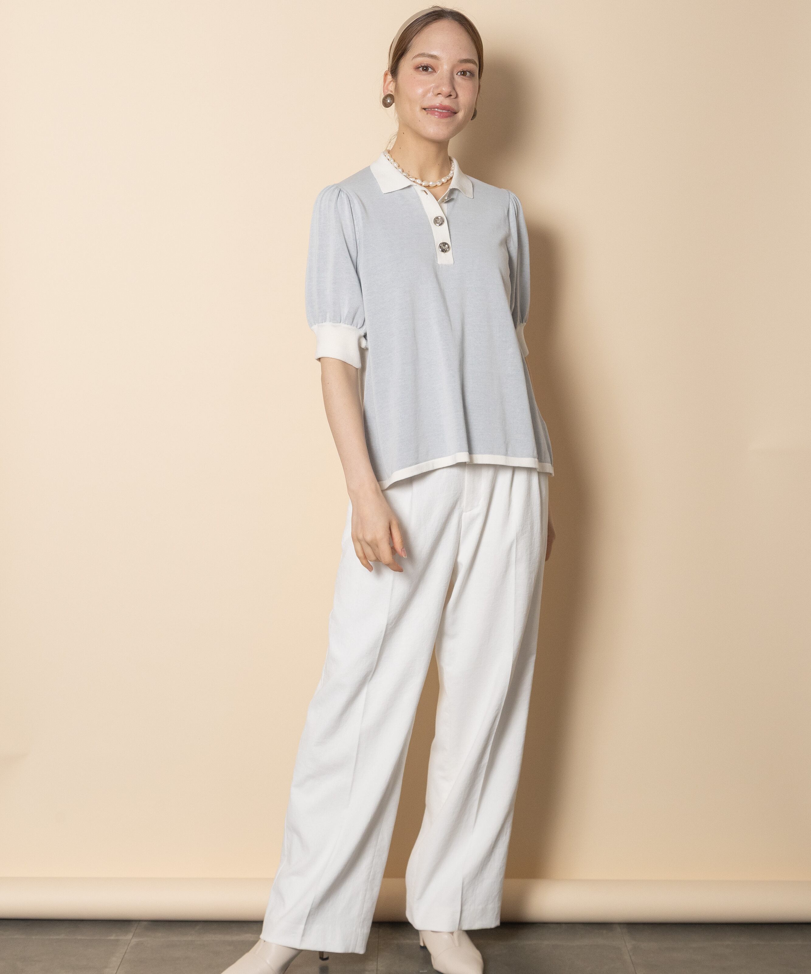 今人気のポロニットが半袖で登場。襟元と袖口が配色になった映え感あるスポーティでクラシカルなアイテム。オフボディでノンストレスな緩めの編み地のニット。