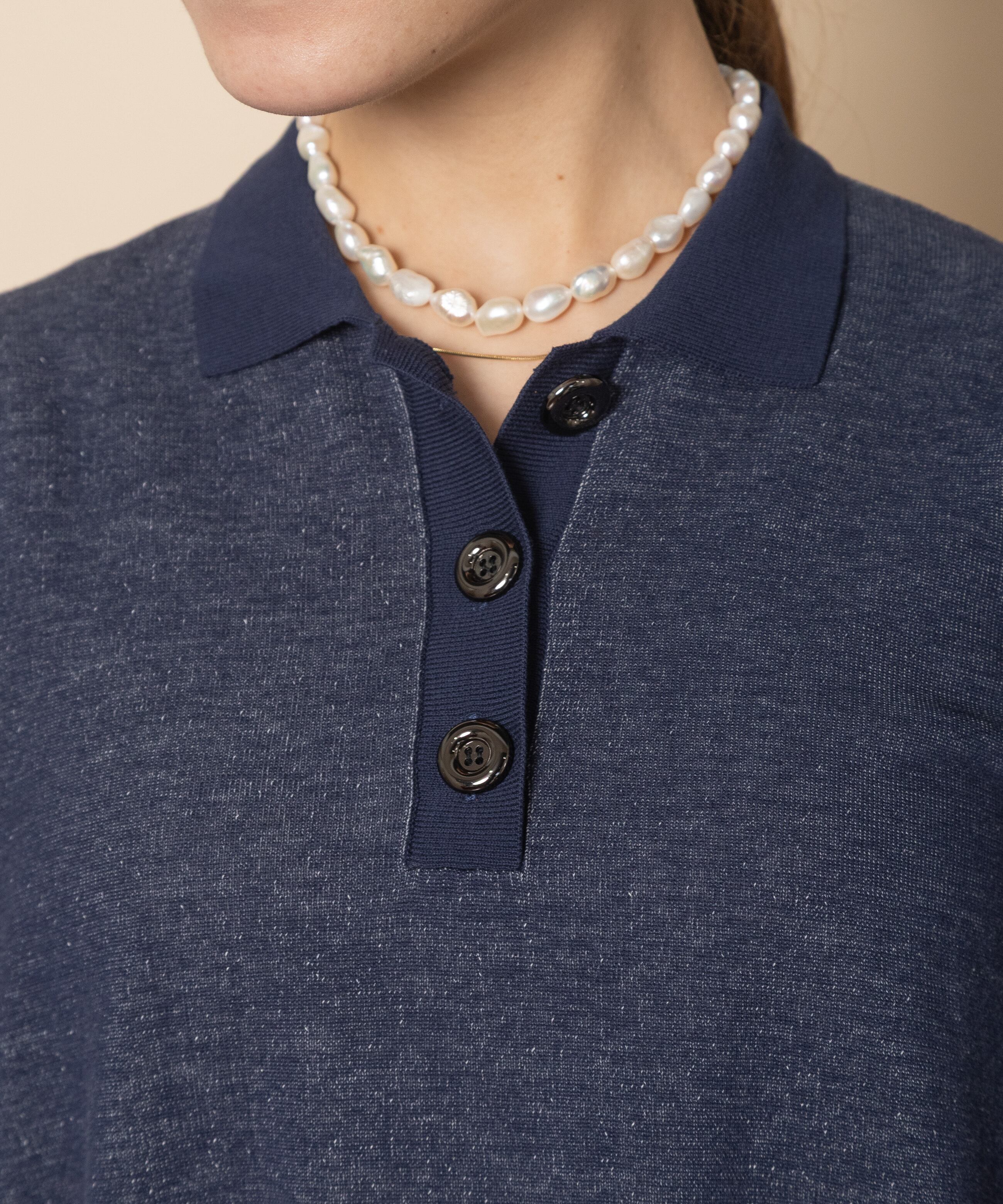 今人気のポロニットが半袖で登場。襟元と袖口が配色になった映え感あるスポーティでクラシカルなアイテム。オフボディでノンストレスな緩めの編み地のニット。